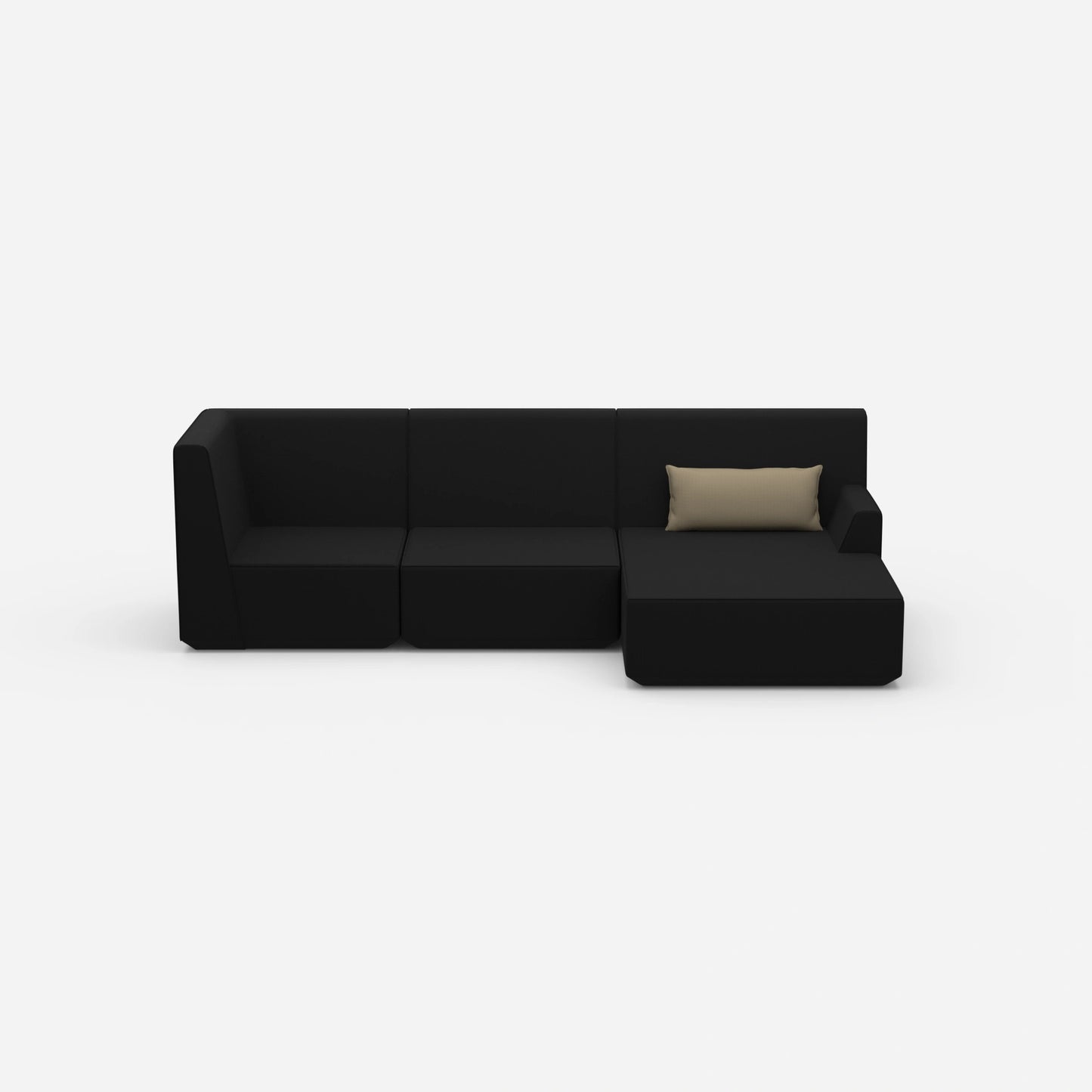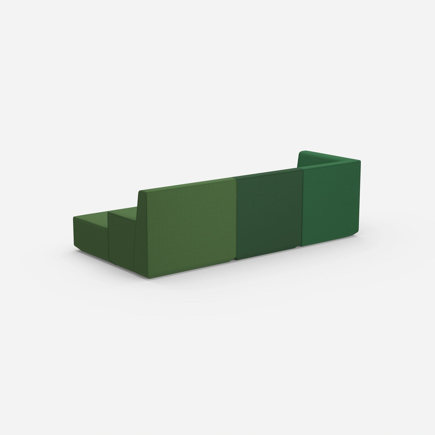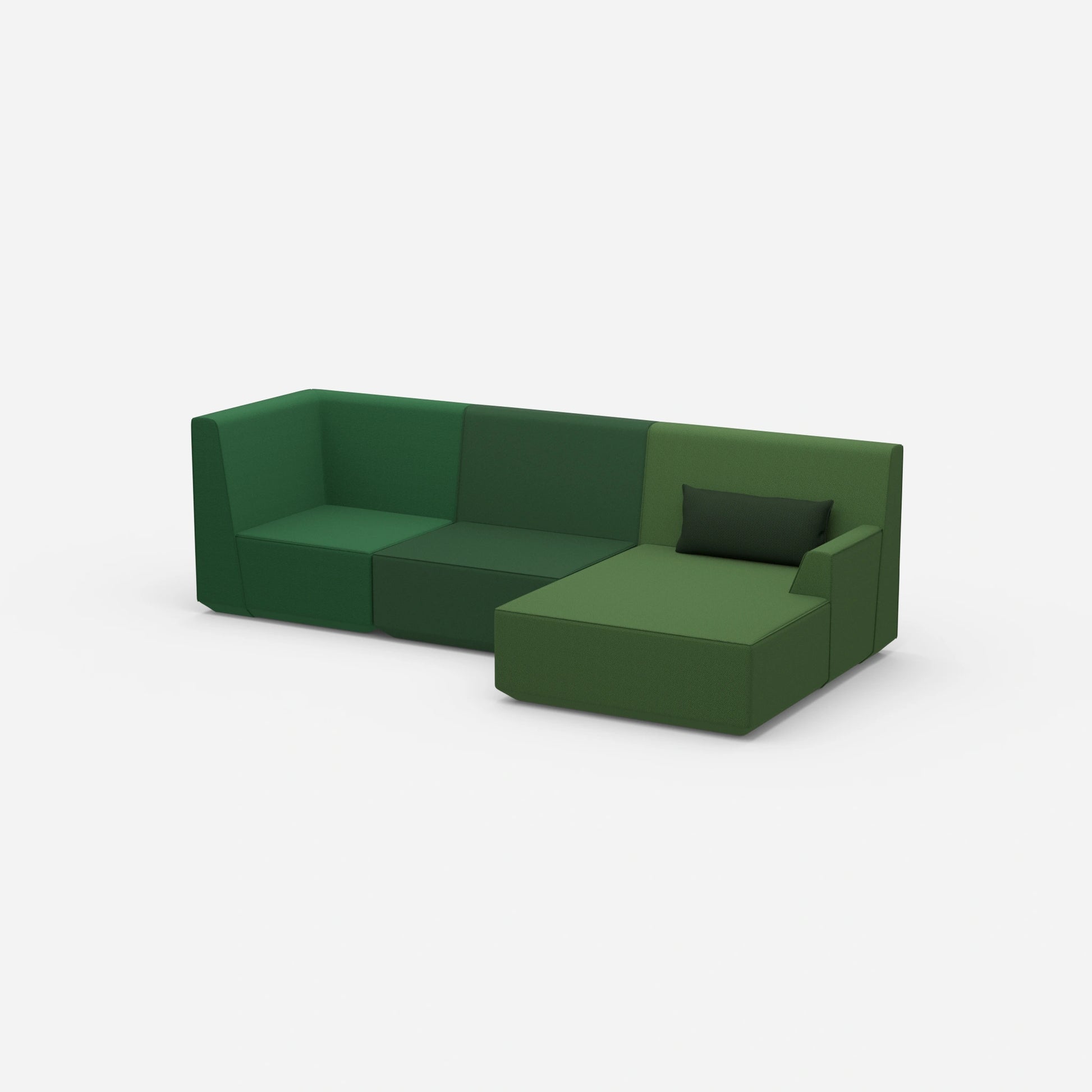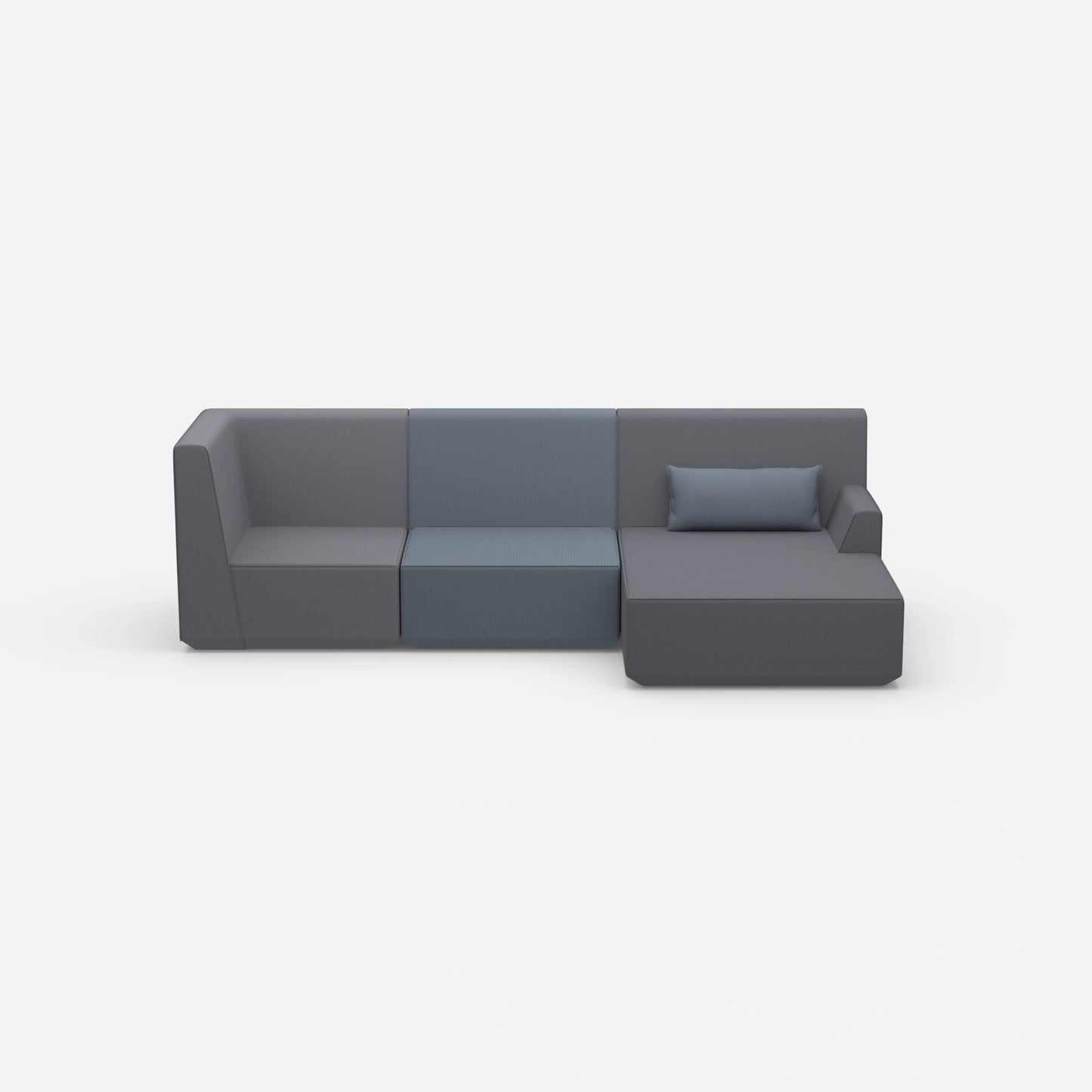 Differently configured Cubit sofa modules in a large, open space - shows the variety of possible combinations and colours
