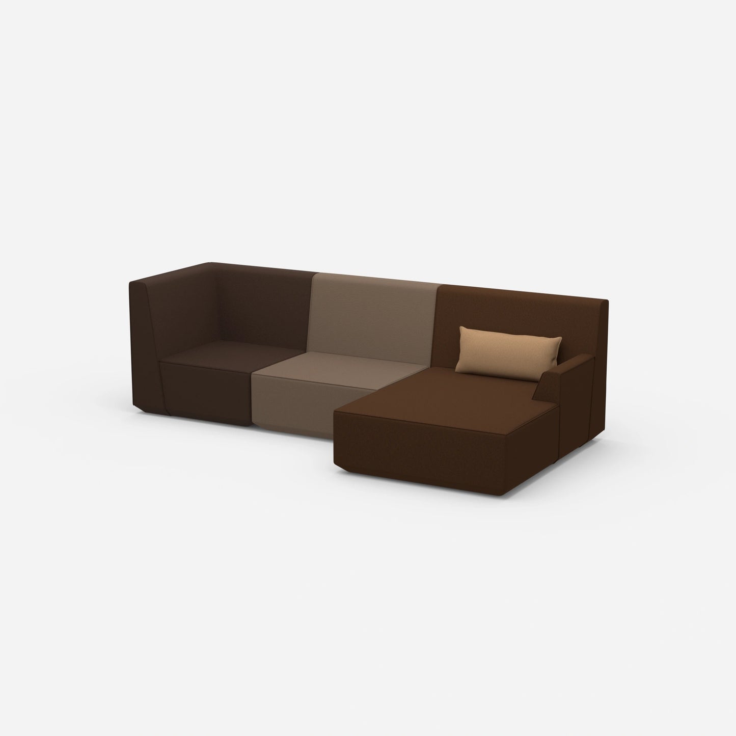 The modern wide Corner sofa adds a special touch to any room. It belongs to the versatile world of Corner sofas. Three clever modules form this piece of furniture: a cushion, a backrest module and a chaise longue module on the right. A corner module on the left completes the structure. These modules create an open and compact atmosphere.