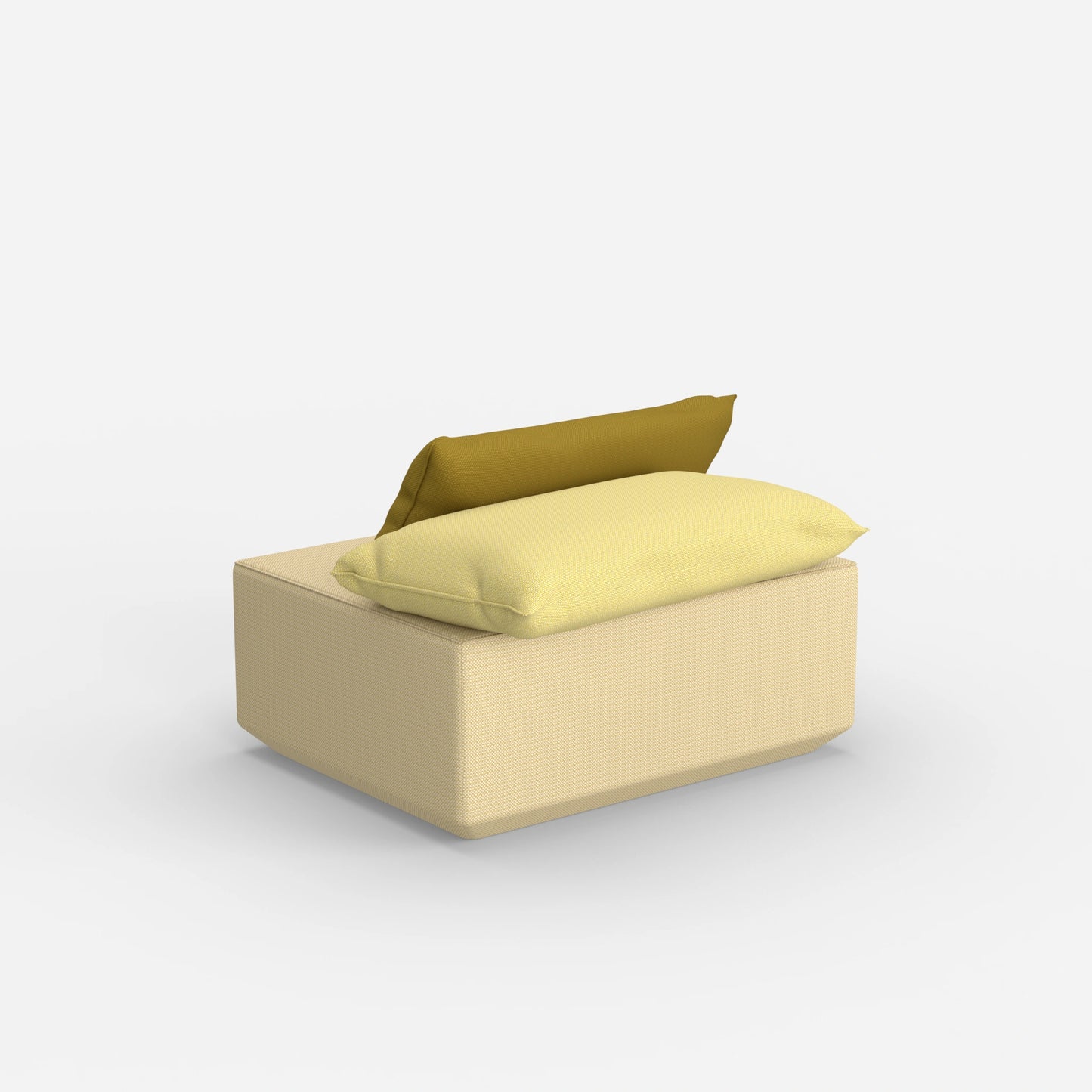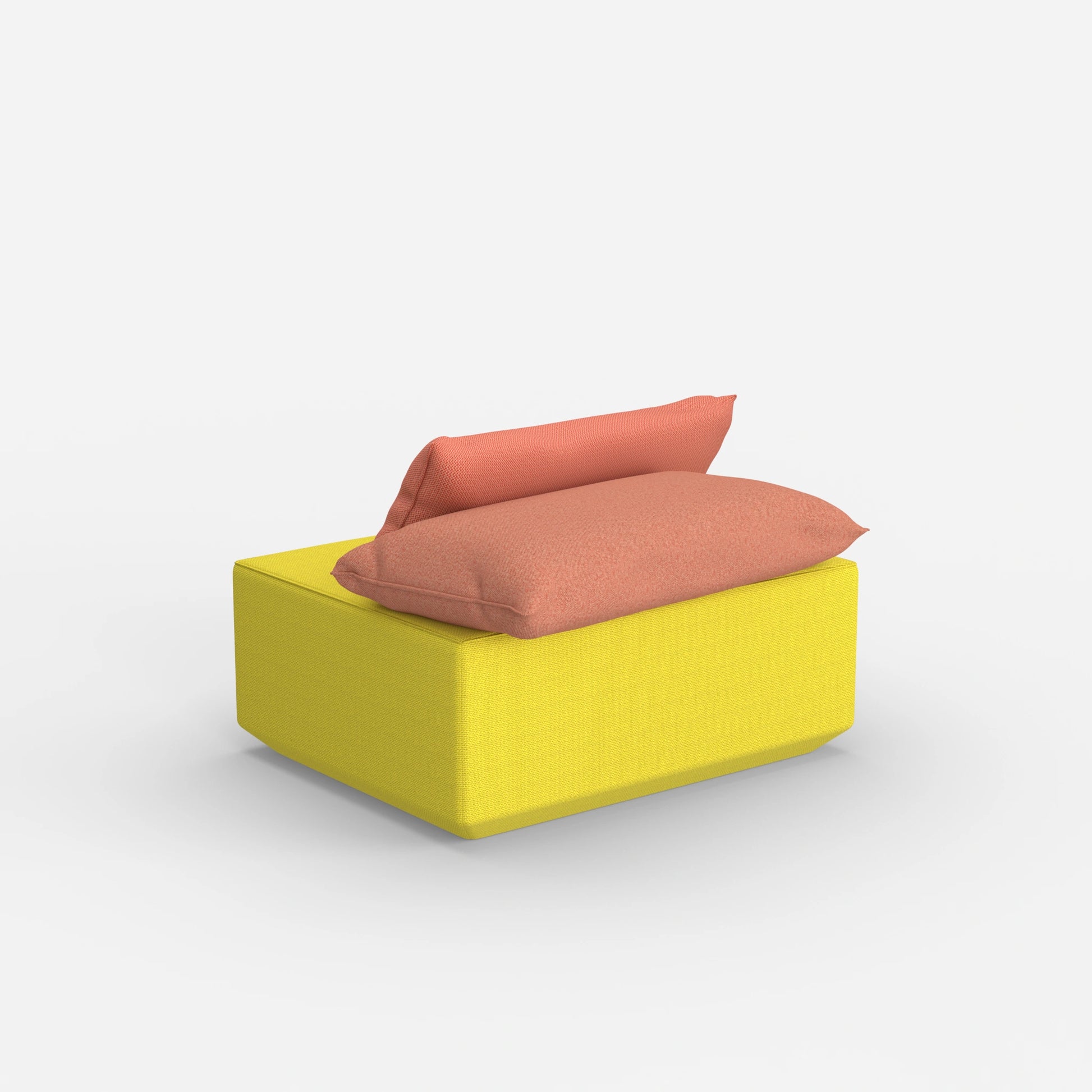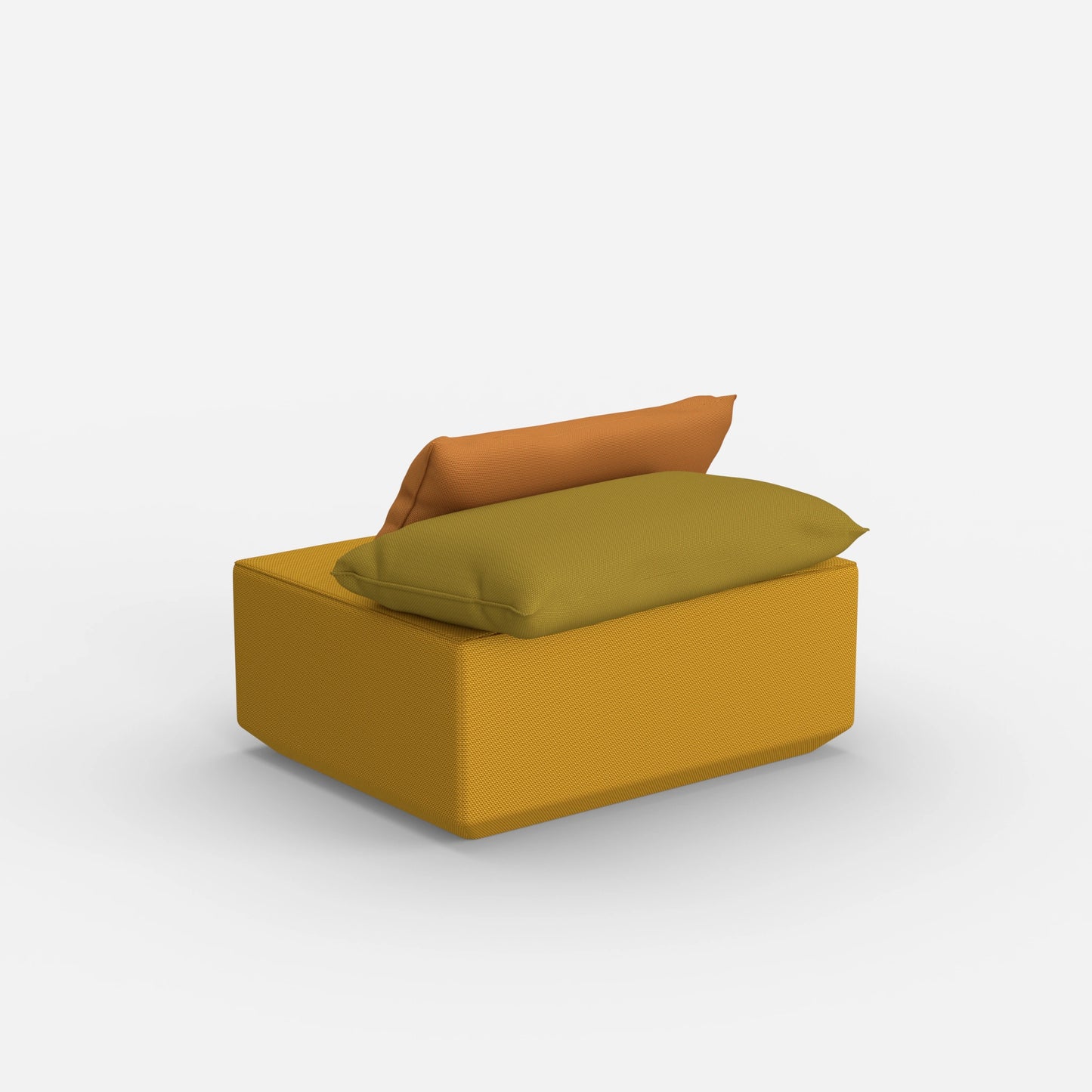 The modern yellow pouf is a versatile piece of furniture from the pouffes category. It consists of a single module that combines two cushions and a pouf module. This modular structure allows for flexible placement options. You can arrange it open or put it together compactly.