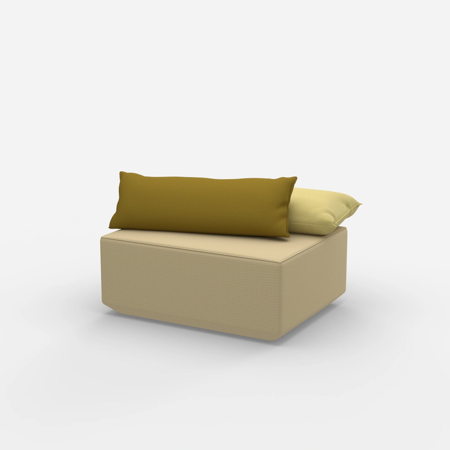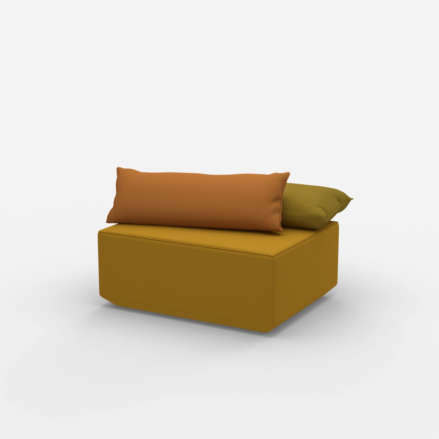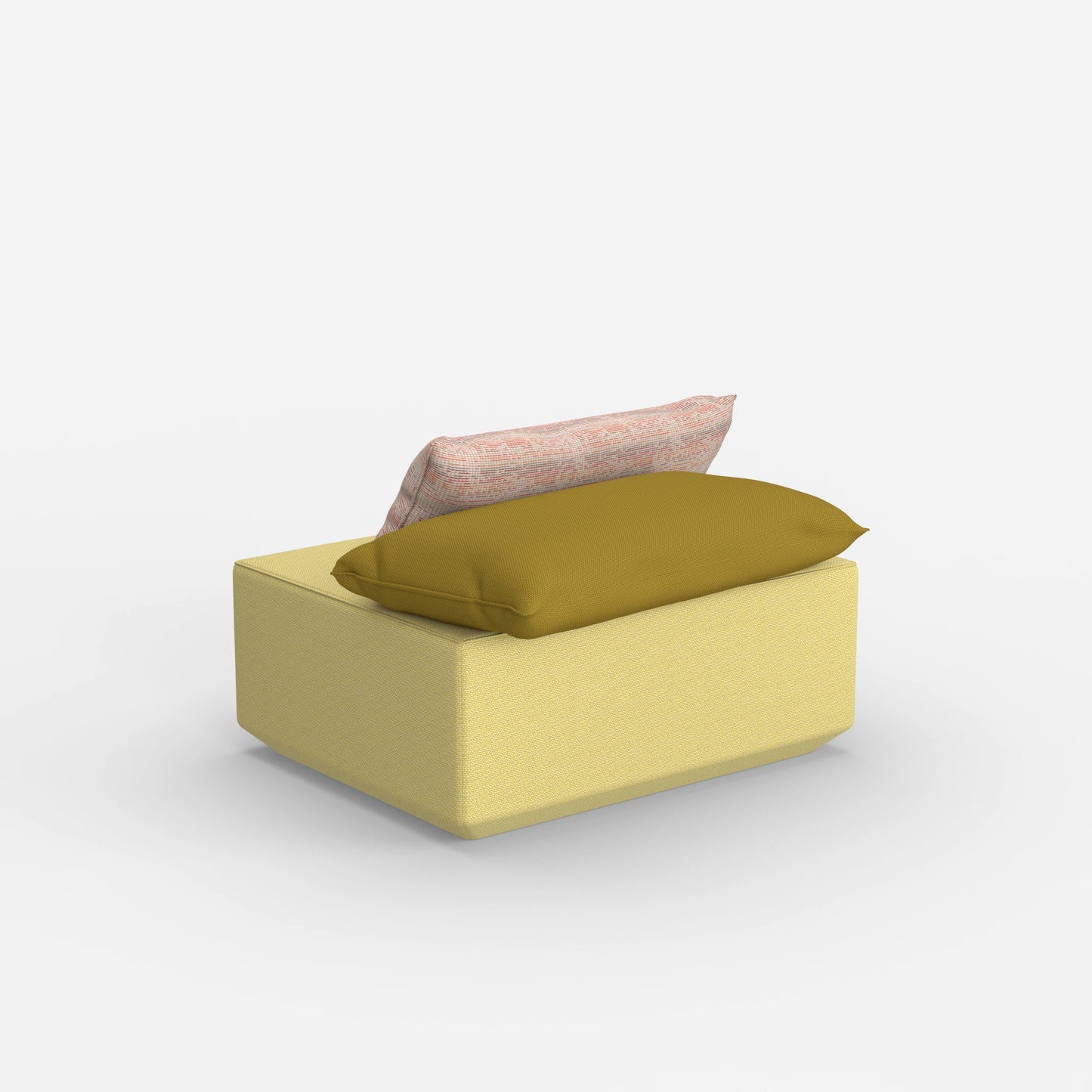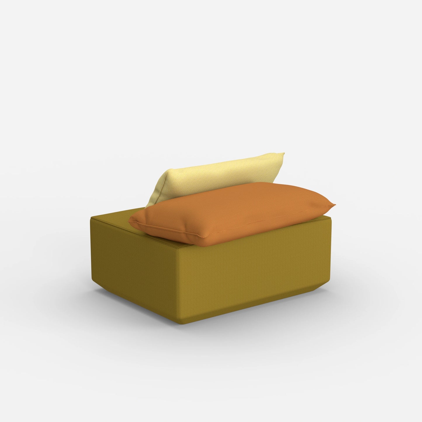 The modern yellow pouf is a versatile piece of furniture from the pouffes category. It consists of a single module that combines two cushions and a pouf module. This modular structure allows for flexible placement options. You can arrange it open or put it together compactly.