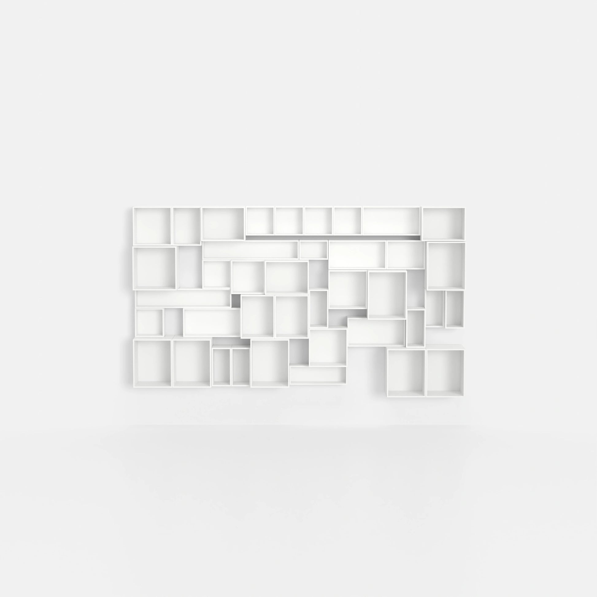 The Bookshelf RK1138 optimizes every room. At 172 cm wide, 156 cm high and 33 cm deep, it fits perfectly. 39 modular units offer you endless storage options. Books and decorations find their place.