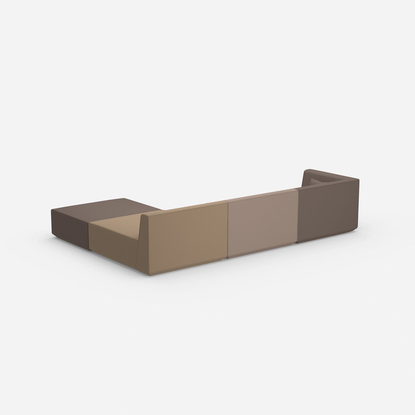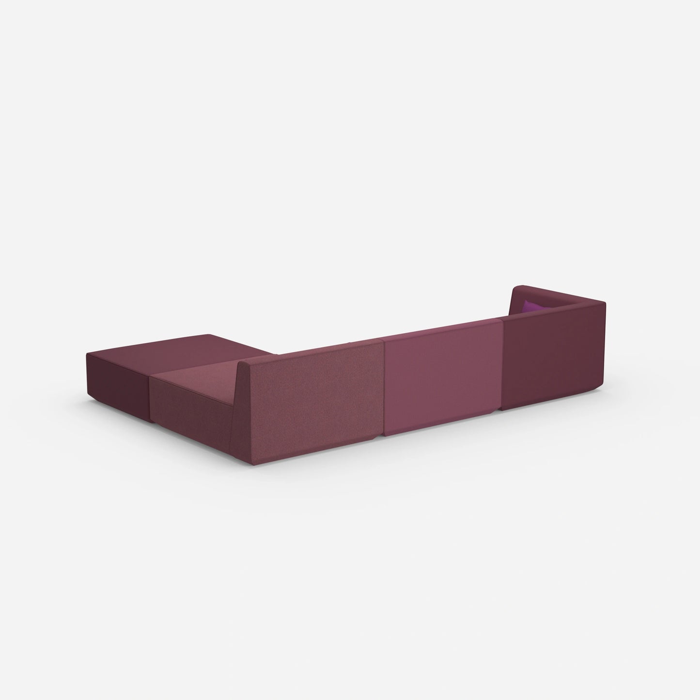 Differently configured Cubit sofa modules in a large, open space - shows the variety of possible combinations and colours