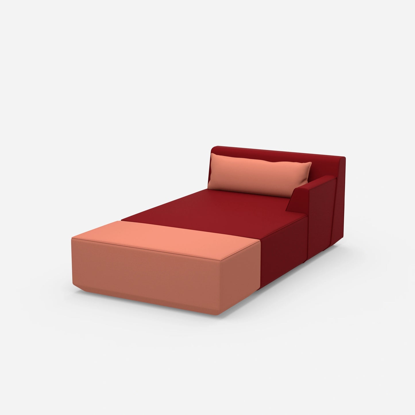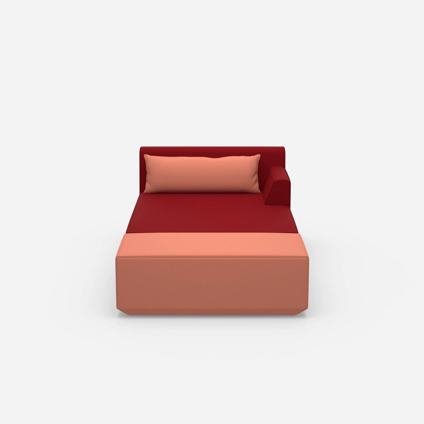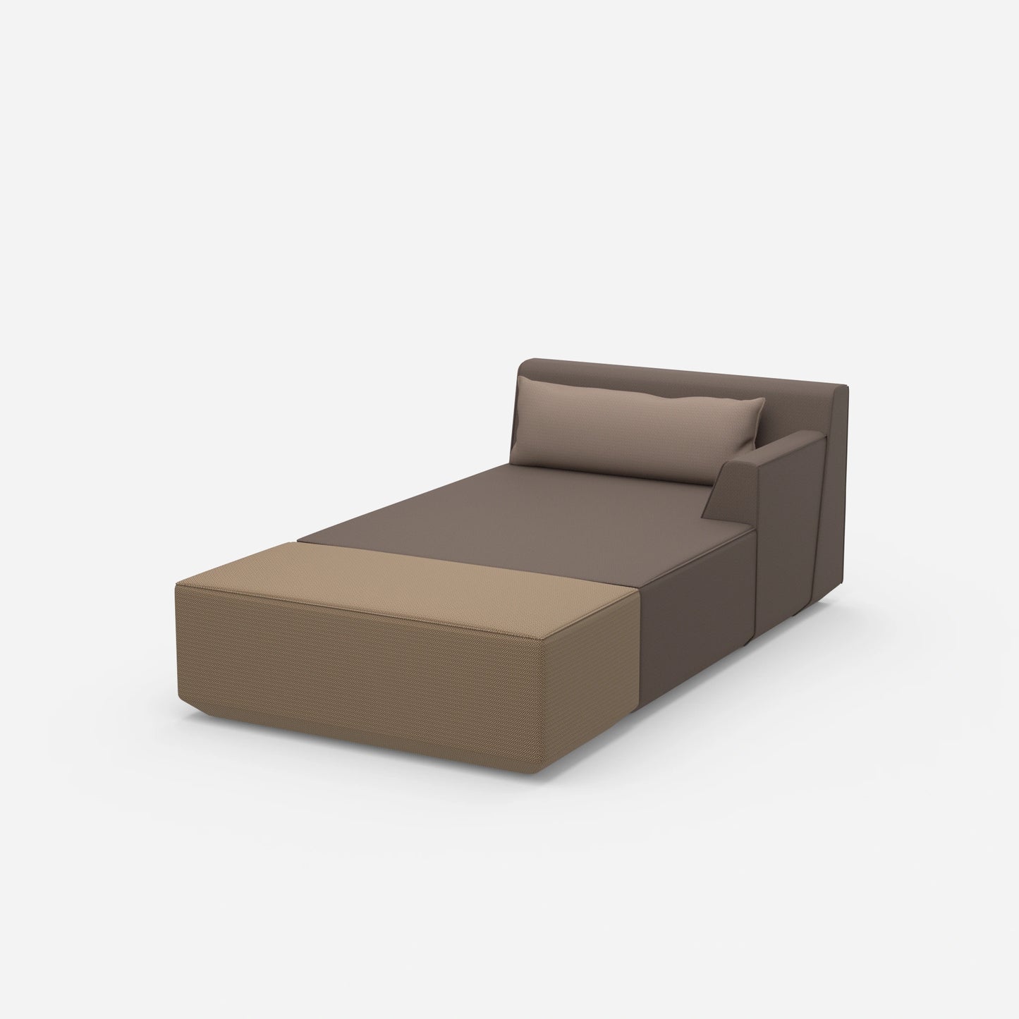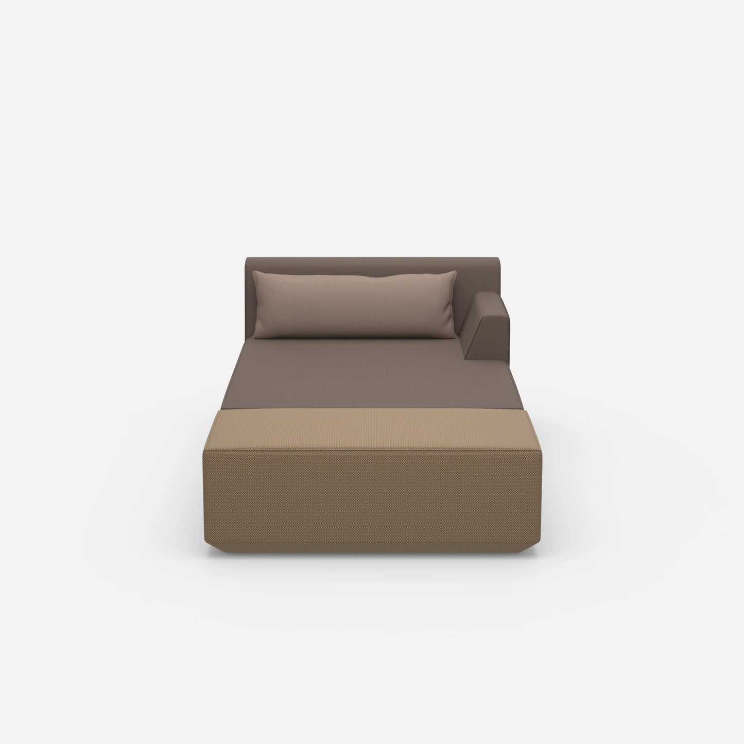 The modular chaise longue for sleeping is a flexible highlight in the world of sofas. This piece of furniture combines a chaise longue module on the right-hand side with a versatile pouf and a comfortable cushion. Together, these elements unfold their full effect and adapt to any room situation.