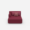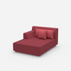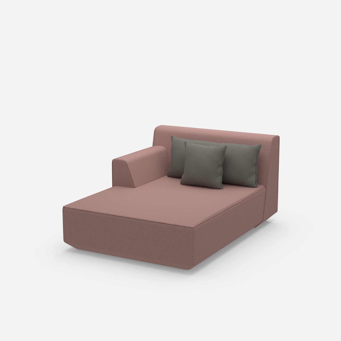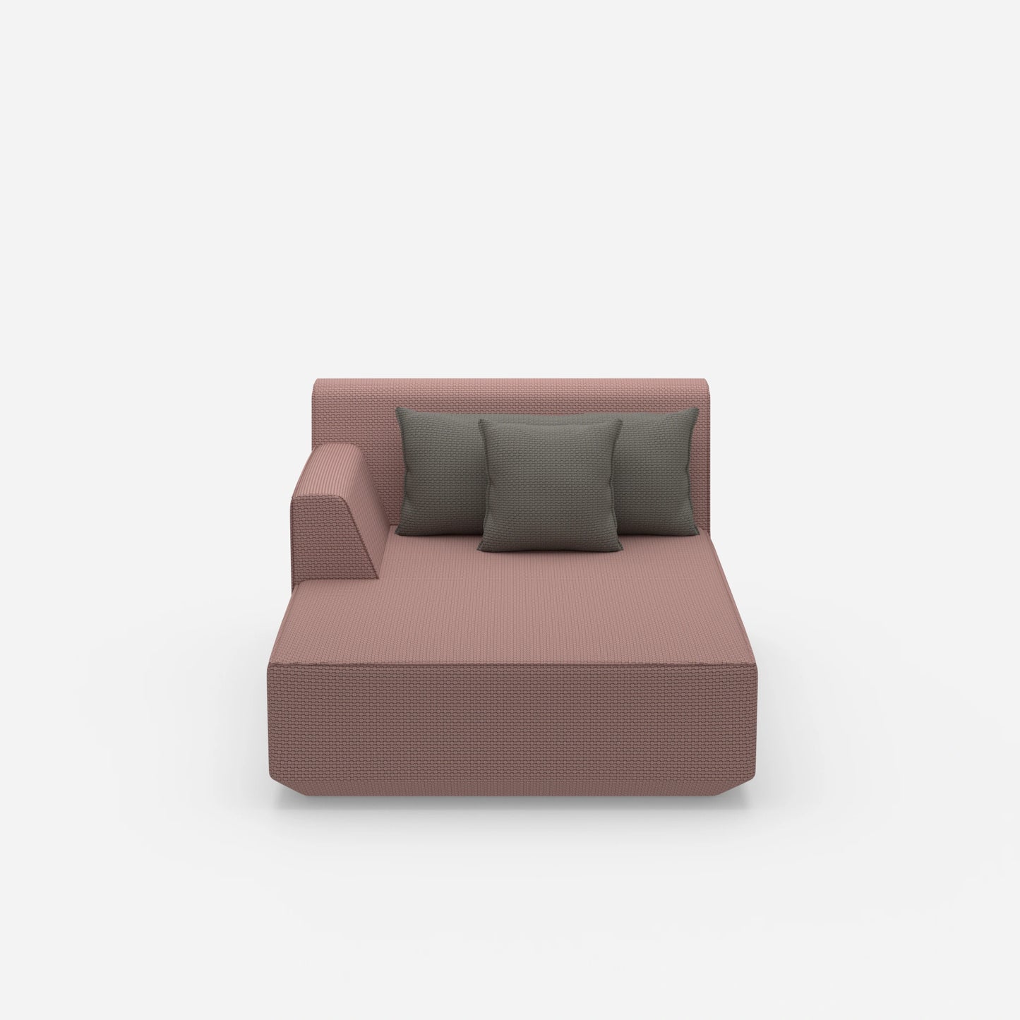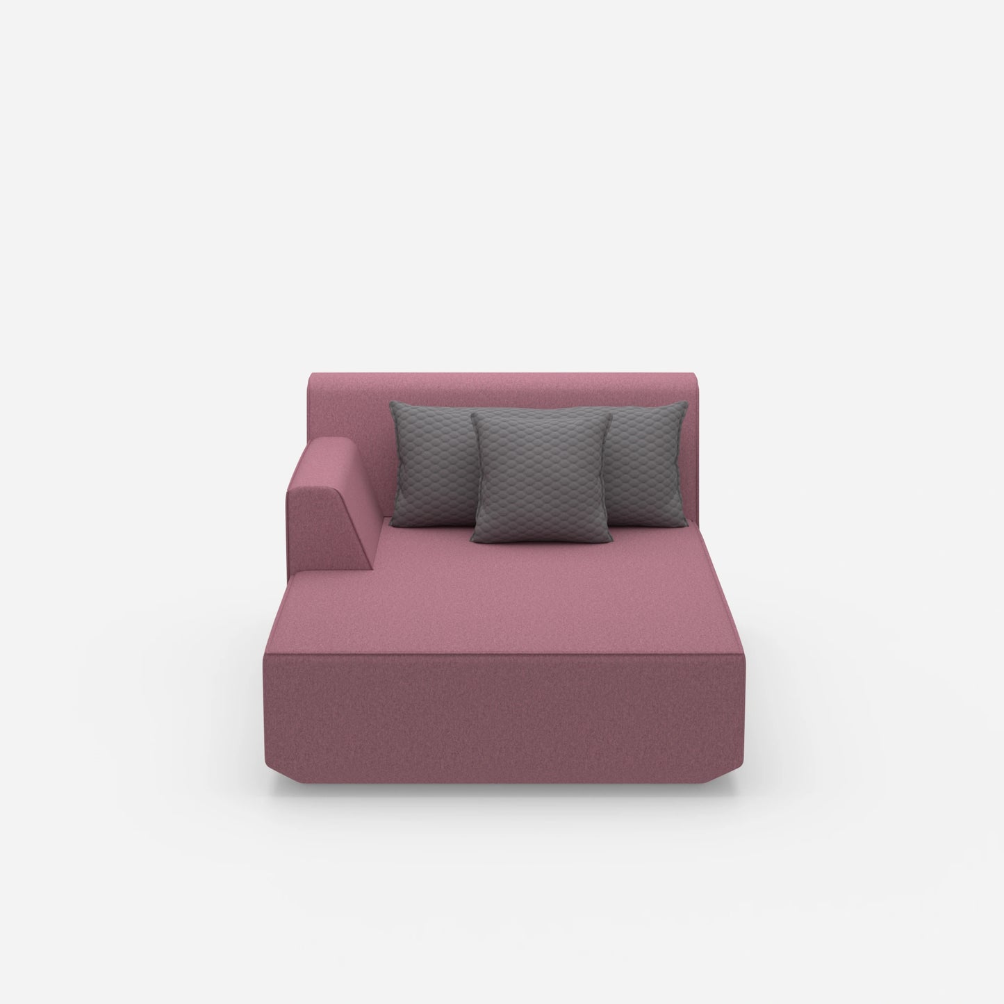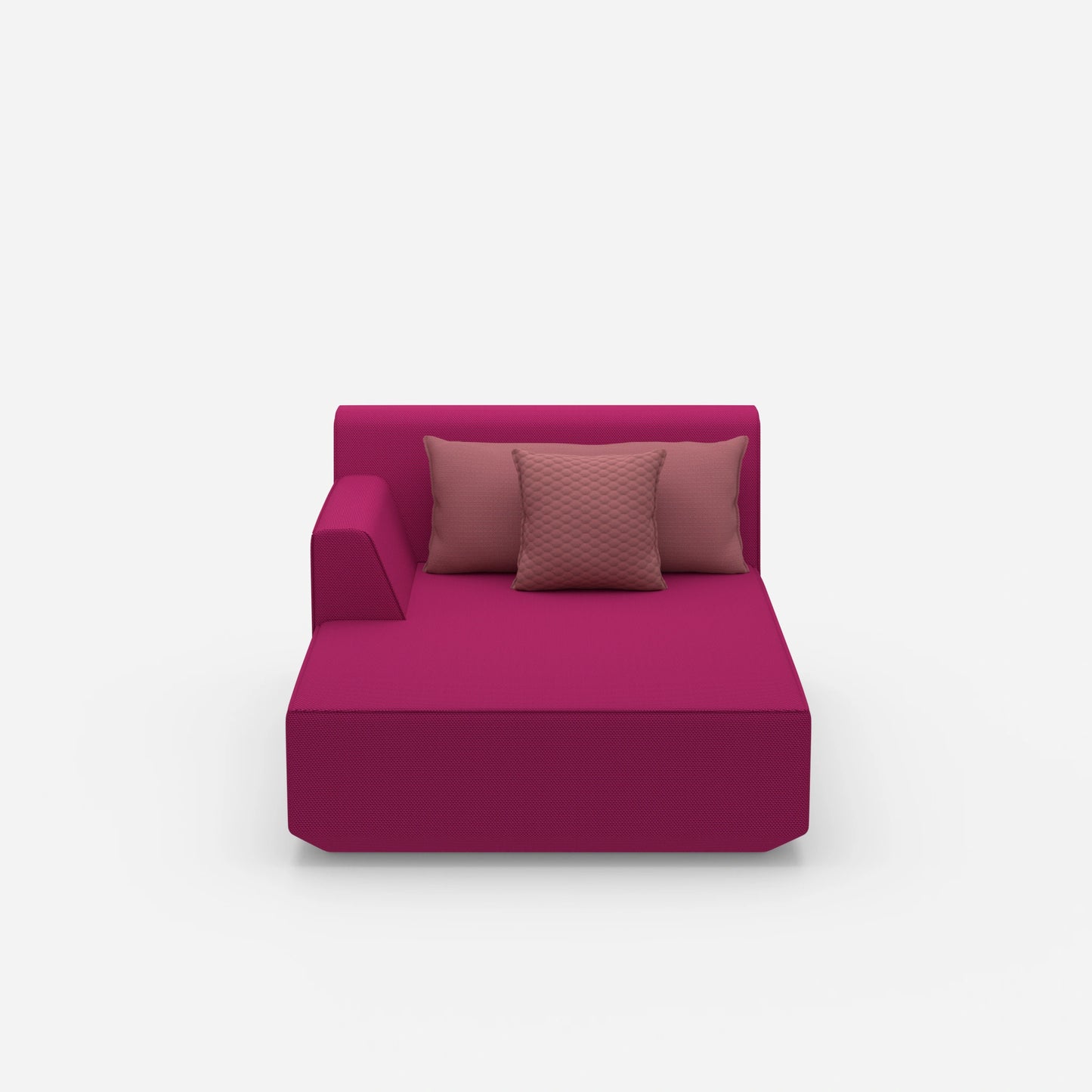 The colour palette includes delicate shades such as flamingo, fuchsia and pink. These harmonious colours add a lively touch to any room. The combination of different nuances allows the chaise longue to be used as a central element or to liven up the ambience. Other colour combinations are possible to underline your personal style.
