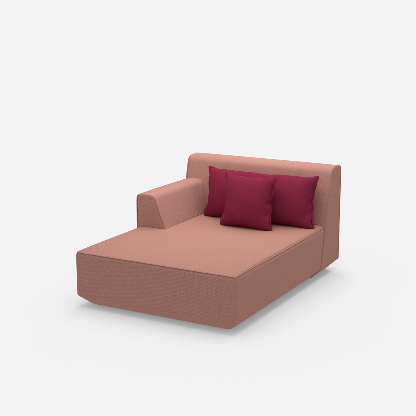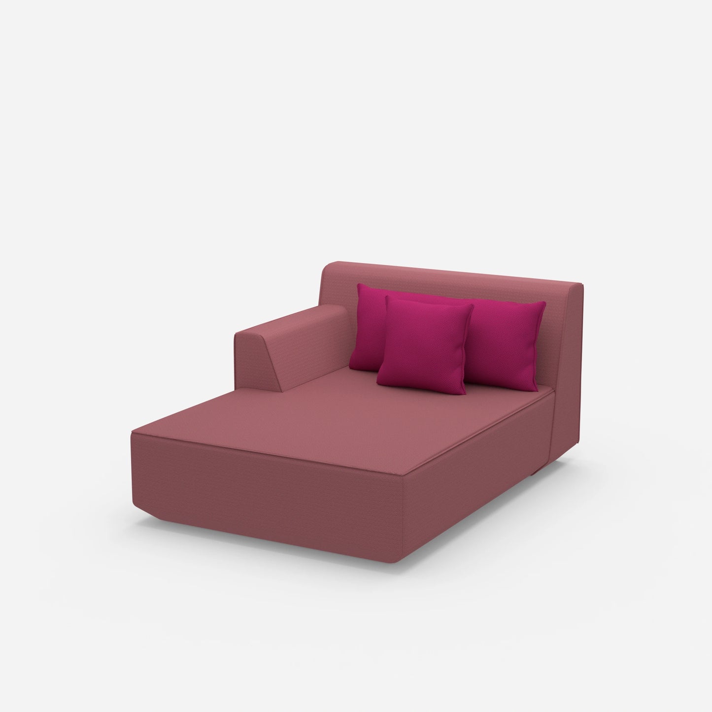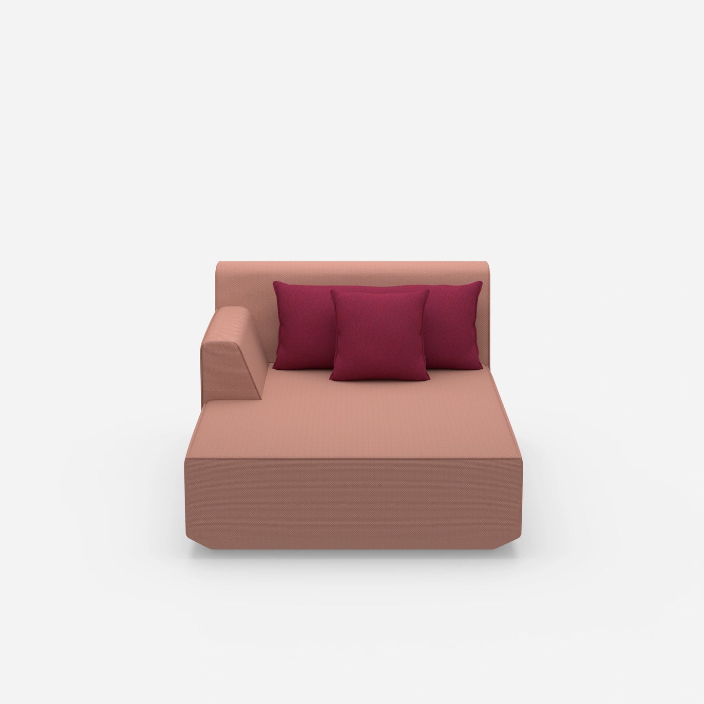 The modular chaise longue in pink brings a breath of fresh air to the world of sofa lounges. This convertible piece of furniture from the modular sofa category offers endless possibilities for individual design. A single module, consisting of a left chaise longue module and two inviting cushions, ensures comfort and flexibility. It invites you to relax and adapts effortlessly to any living situation.