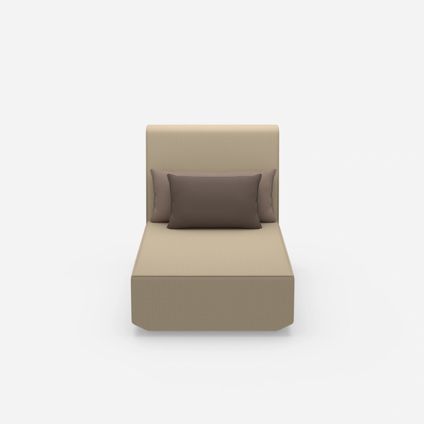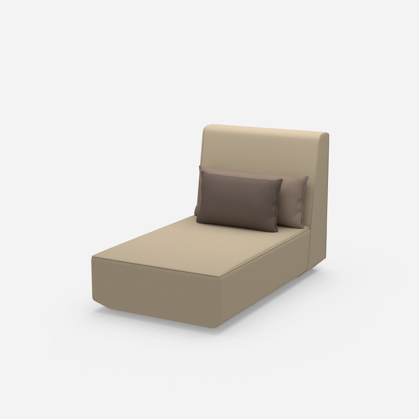 The modular chaise longue with high backrest is a highlight in the world of modular sofas. This single module combines a backrest module with two soft cushions. These elements merge to form a compact unit that is flexible and versatile.