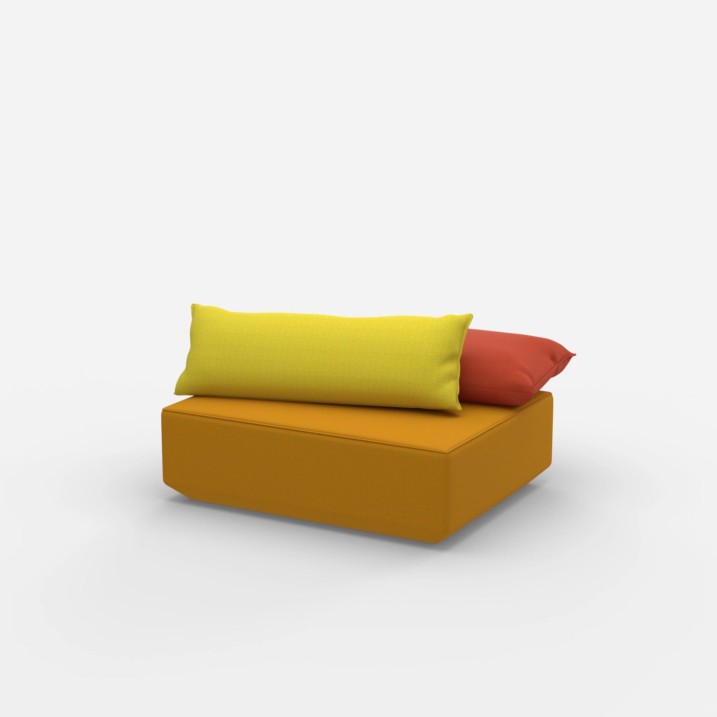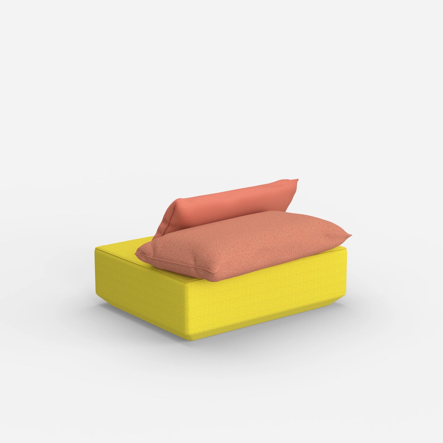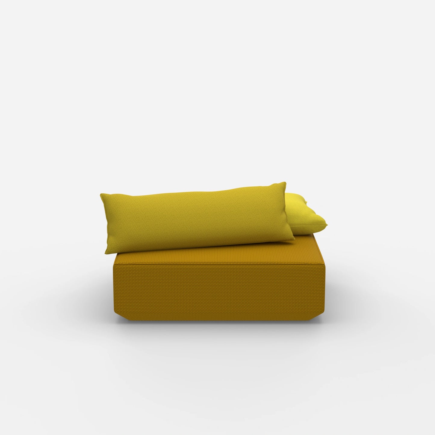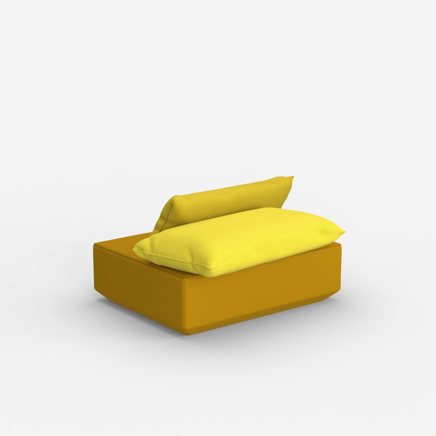 The modular pouf in yellow is revolutionising the world of modular sofas. This unique piece of furniture consists of a pouf module and two cushions. It offers a compact structure and yet remains open for creative design.