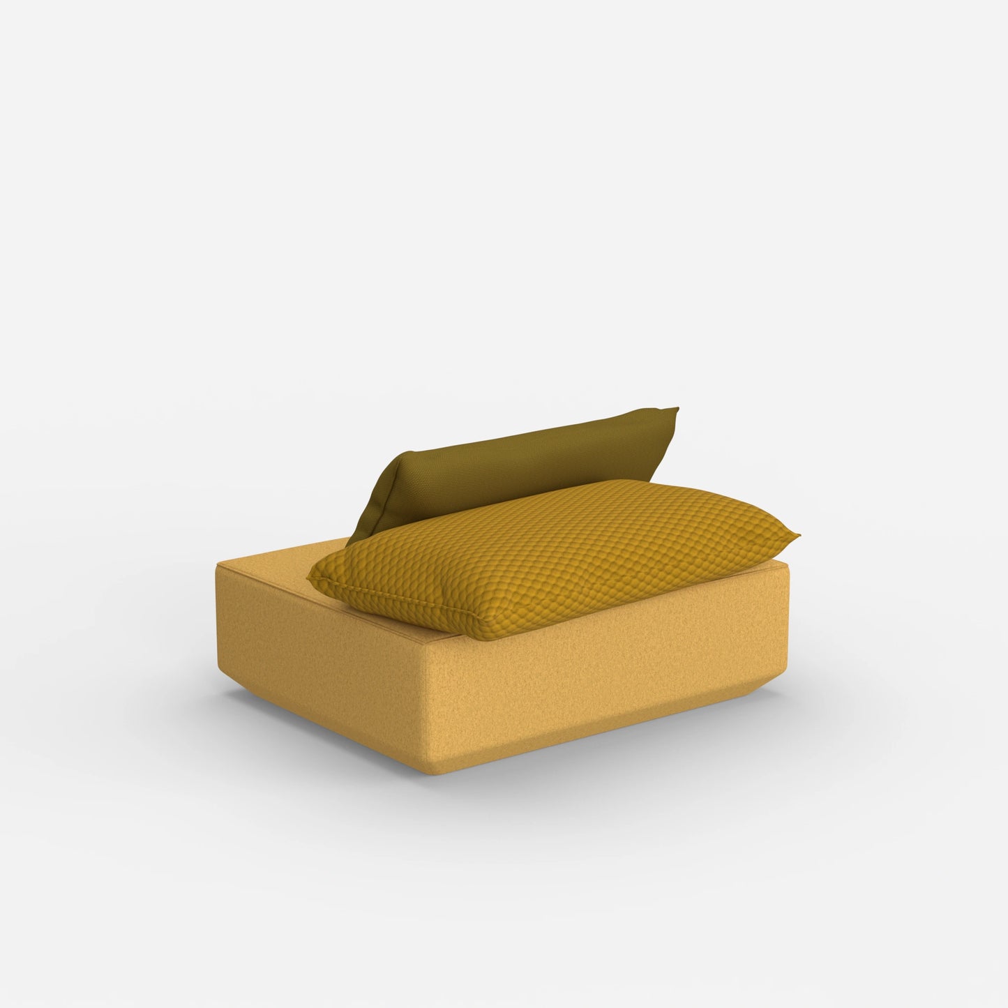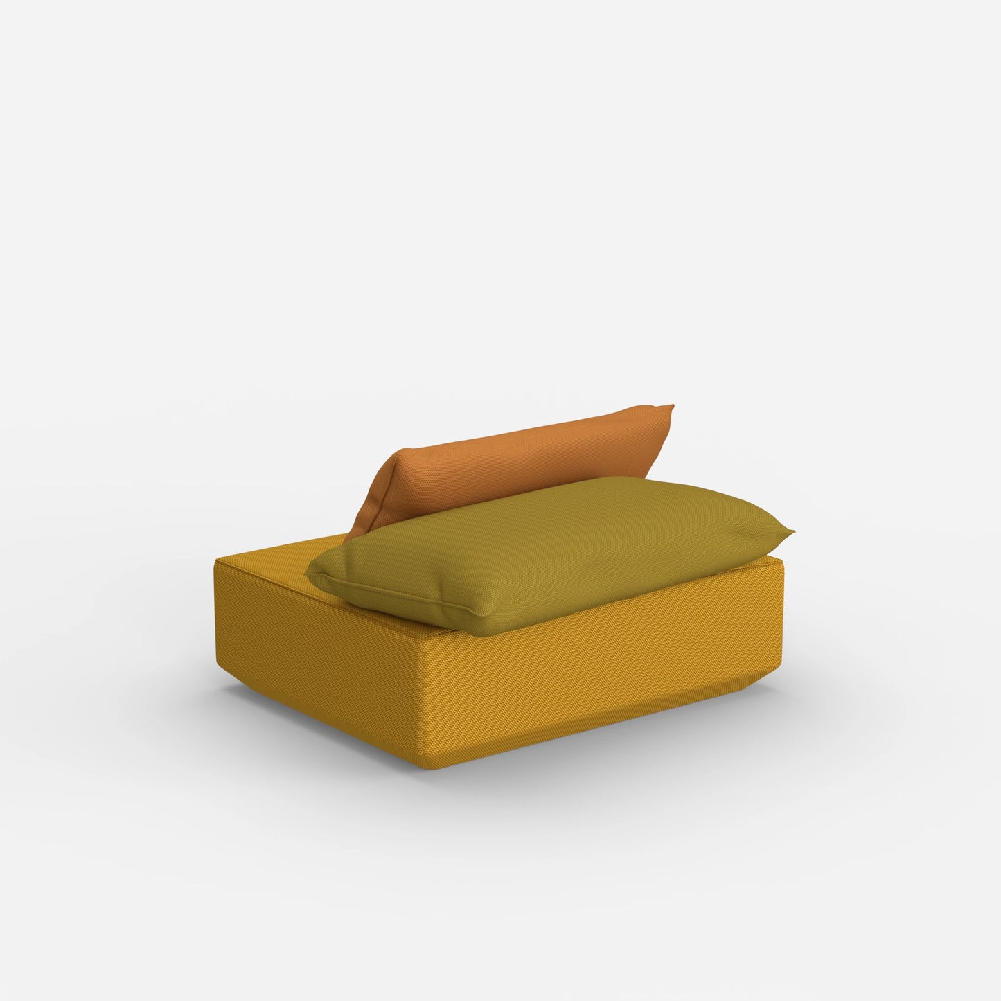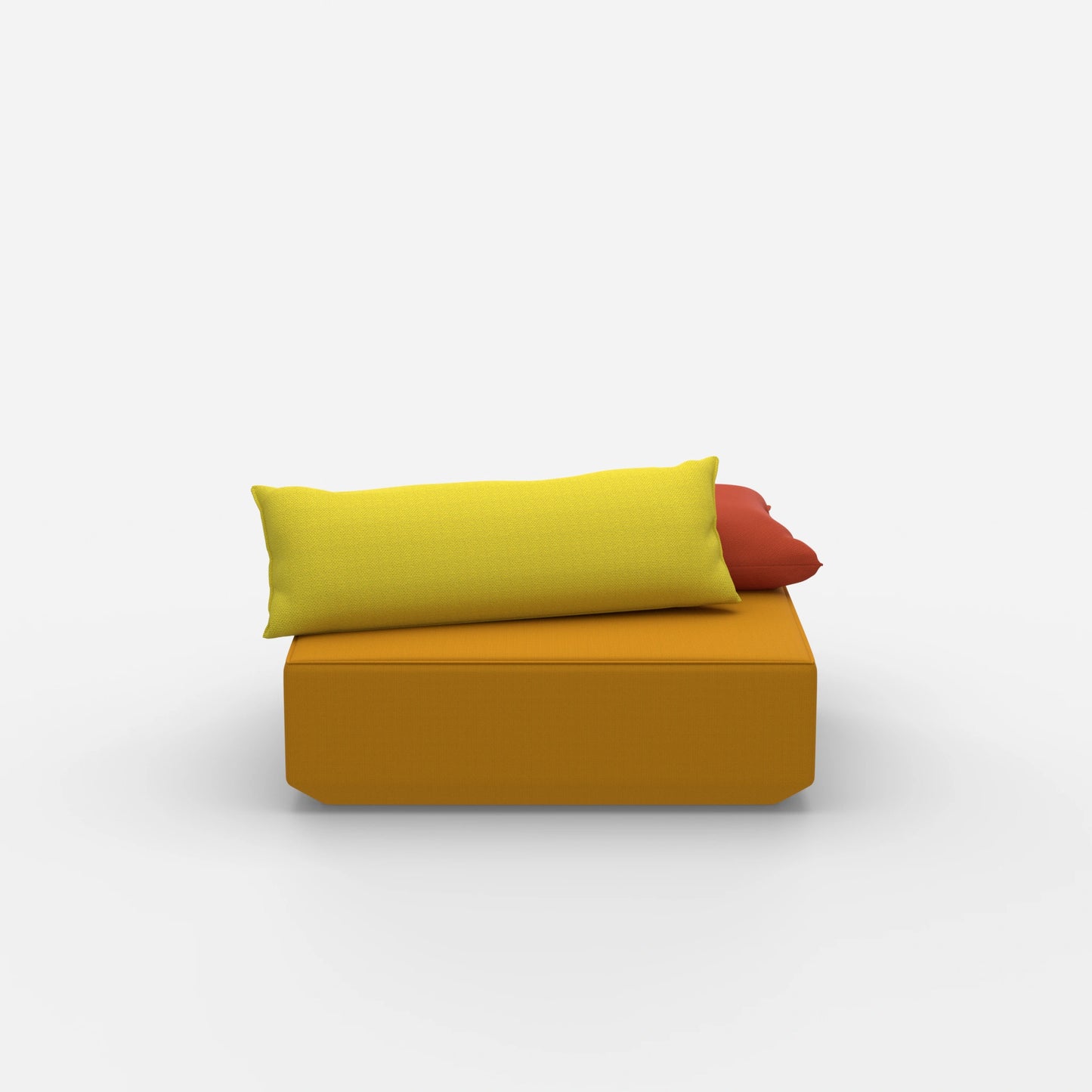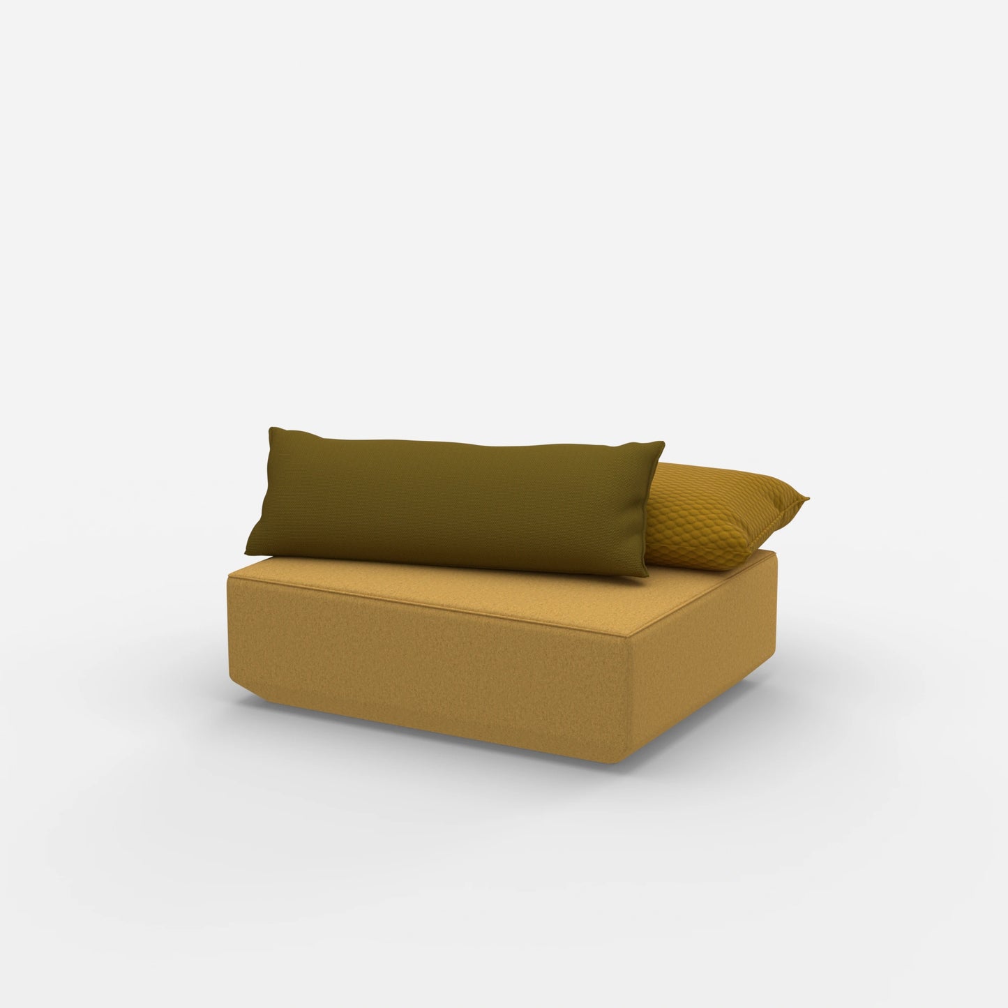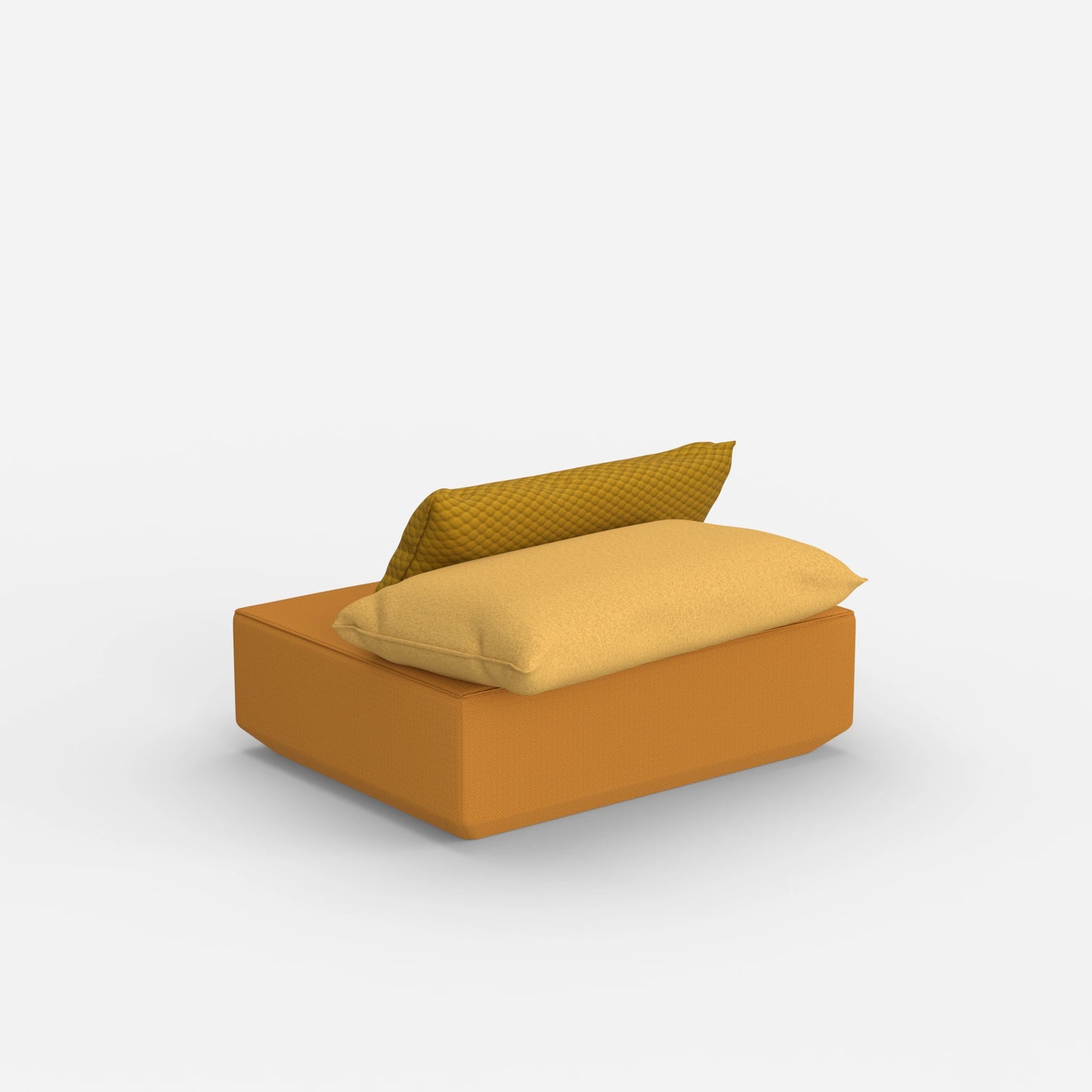 The modular pouf in yellow is revolutionising the world of modular sofas. This unique piece of furniture consists of a pouf module and two cushions. It offers a compact structure and yet remains open for creative design.