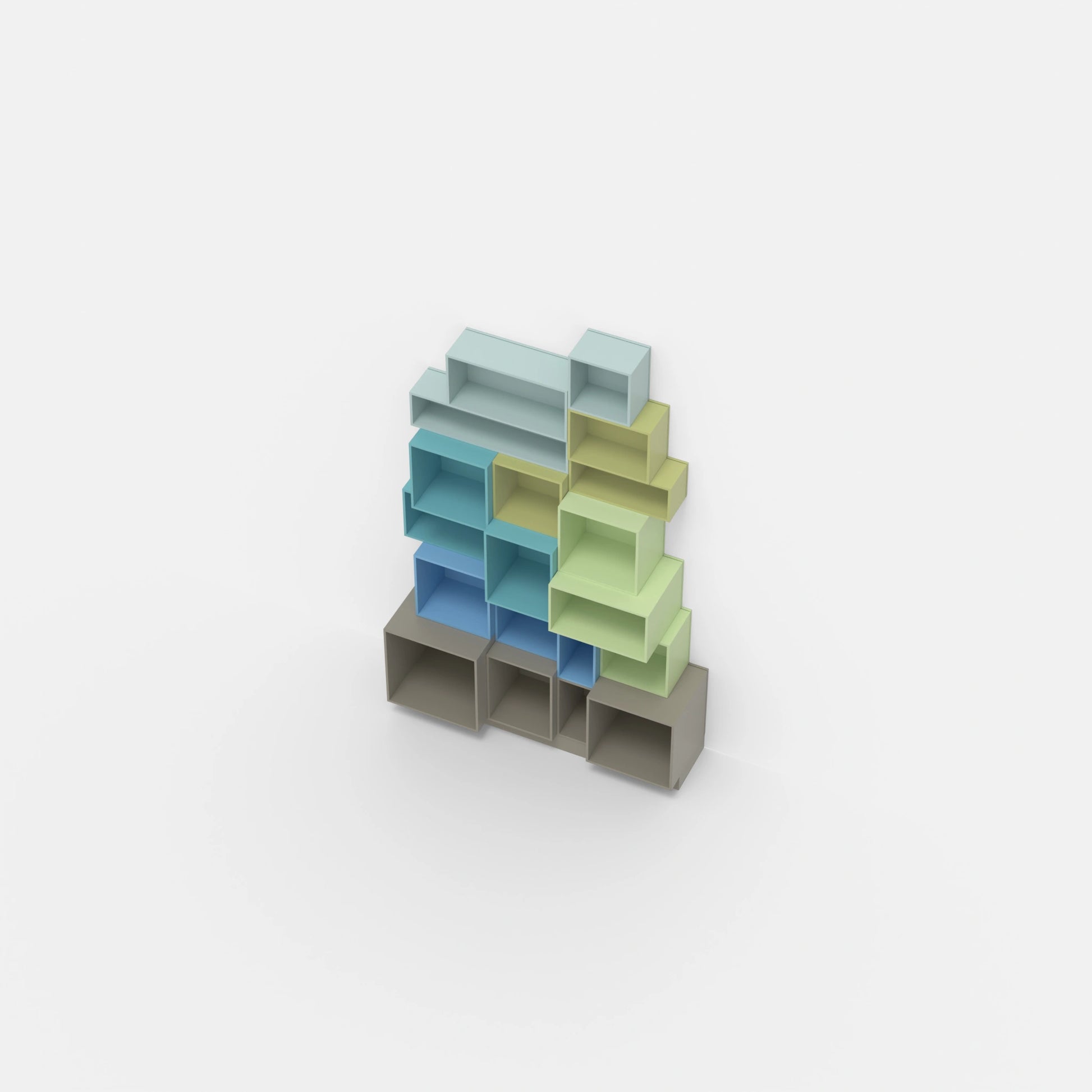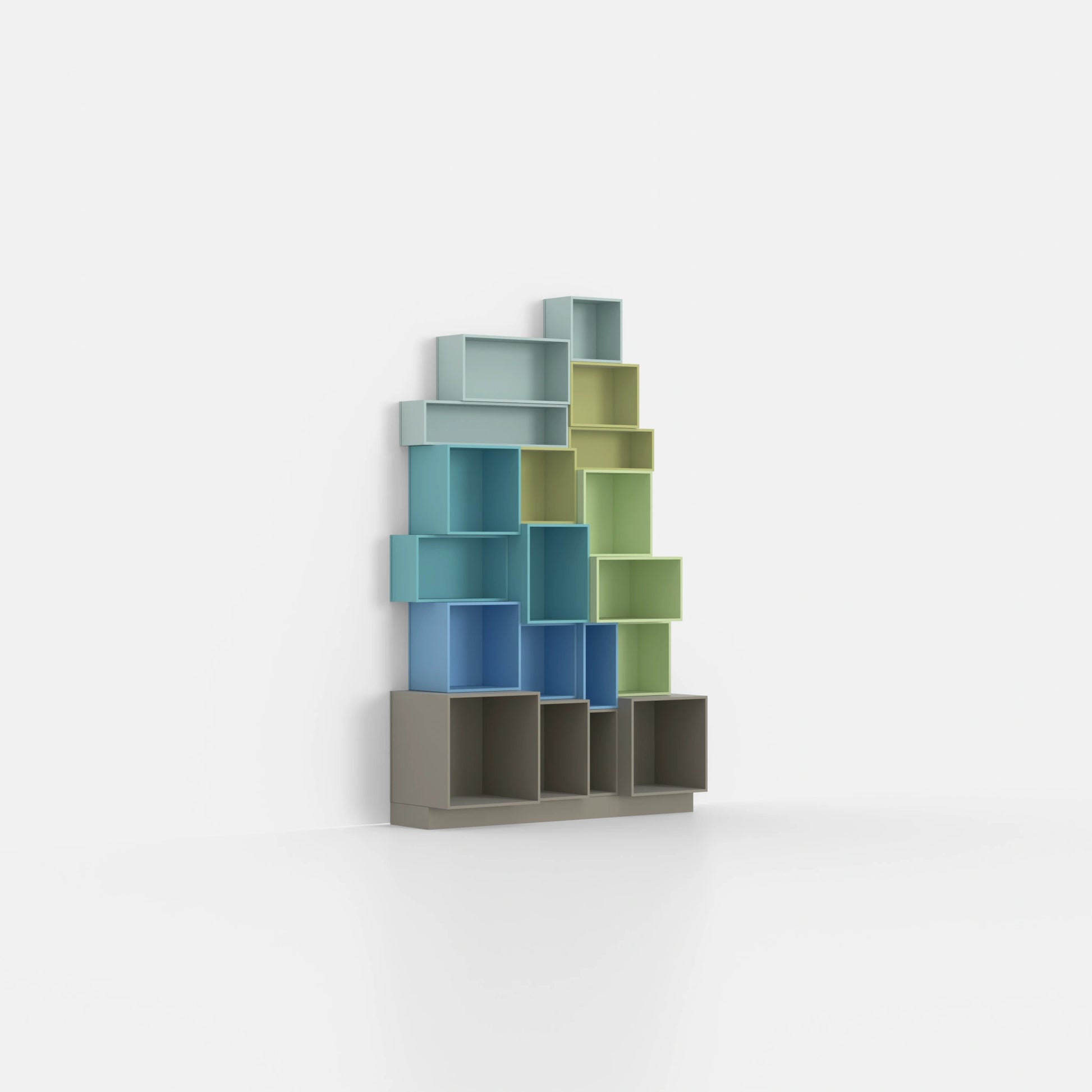 • 34 individual shelving modules in a total of 8 different depths