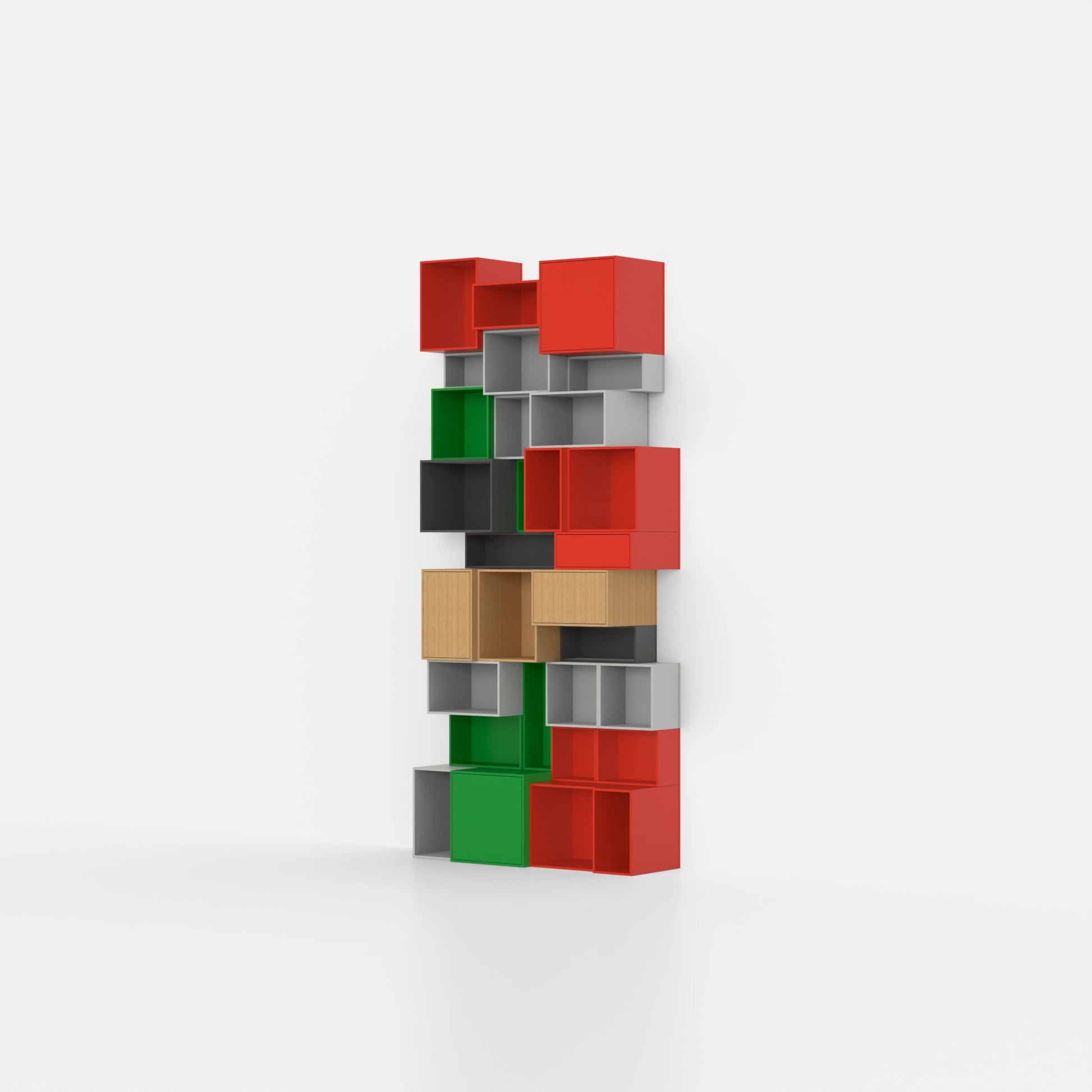 The RK1083 modular shelving unit offers a ground-breaking solution for modern storage needs. At 120 cm wide, 264 cm high and 37 cm deep, it has 30 customisable modules. These offer space for everything that is important to you.