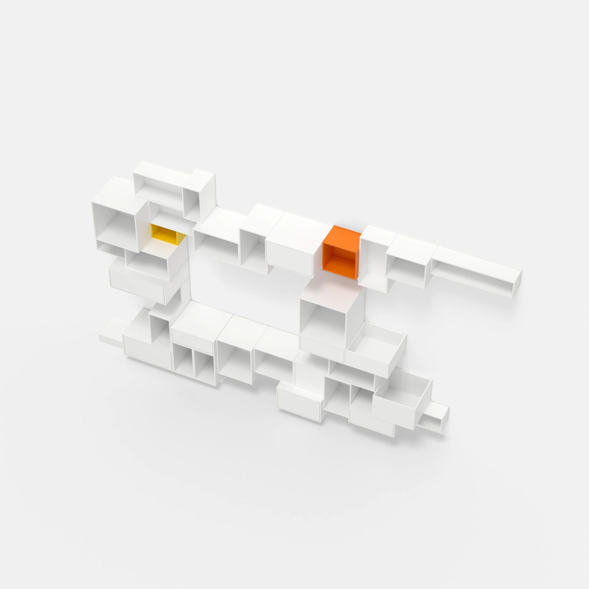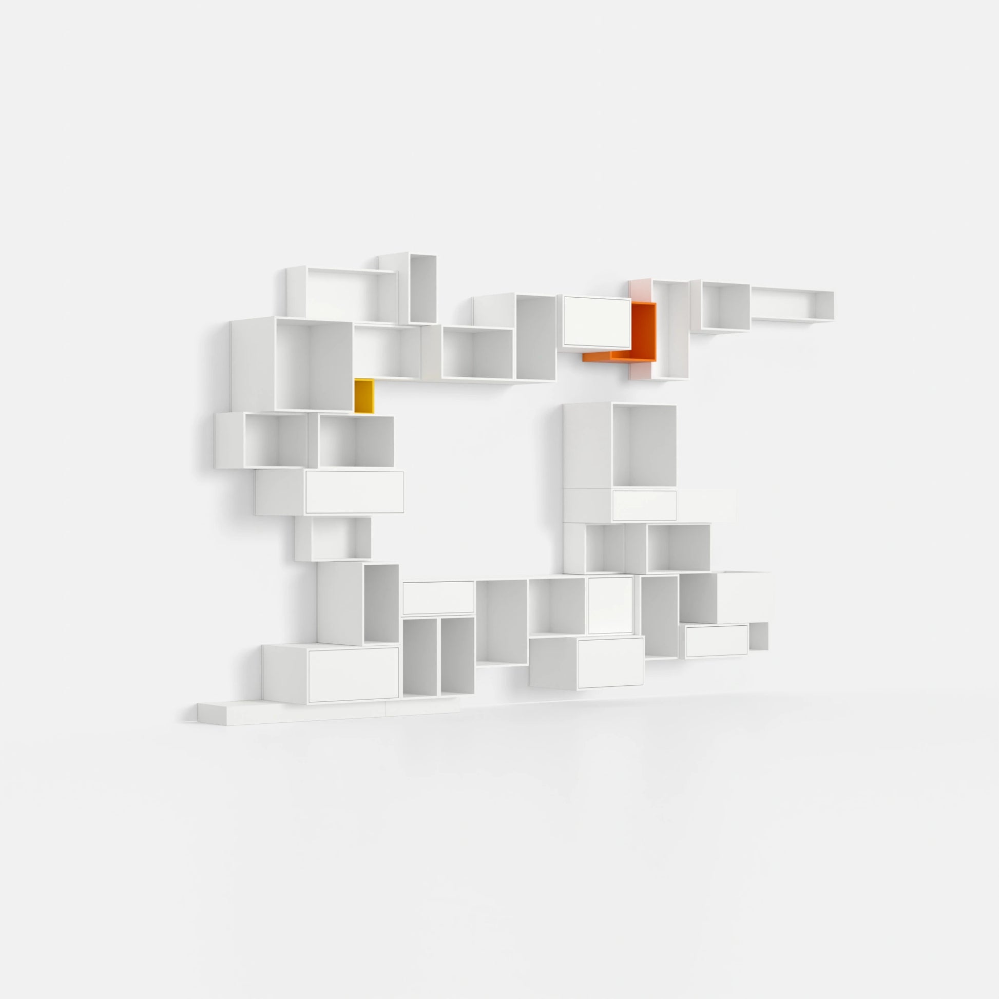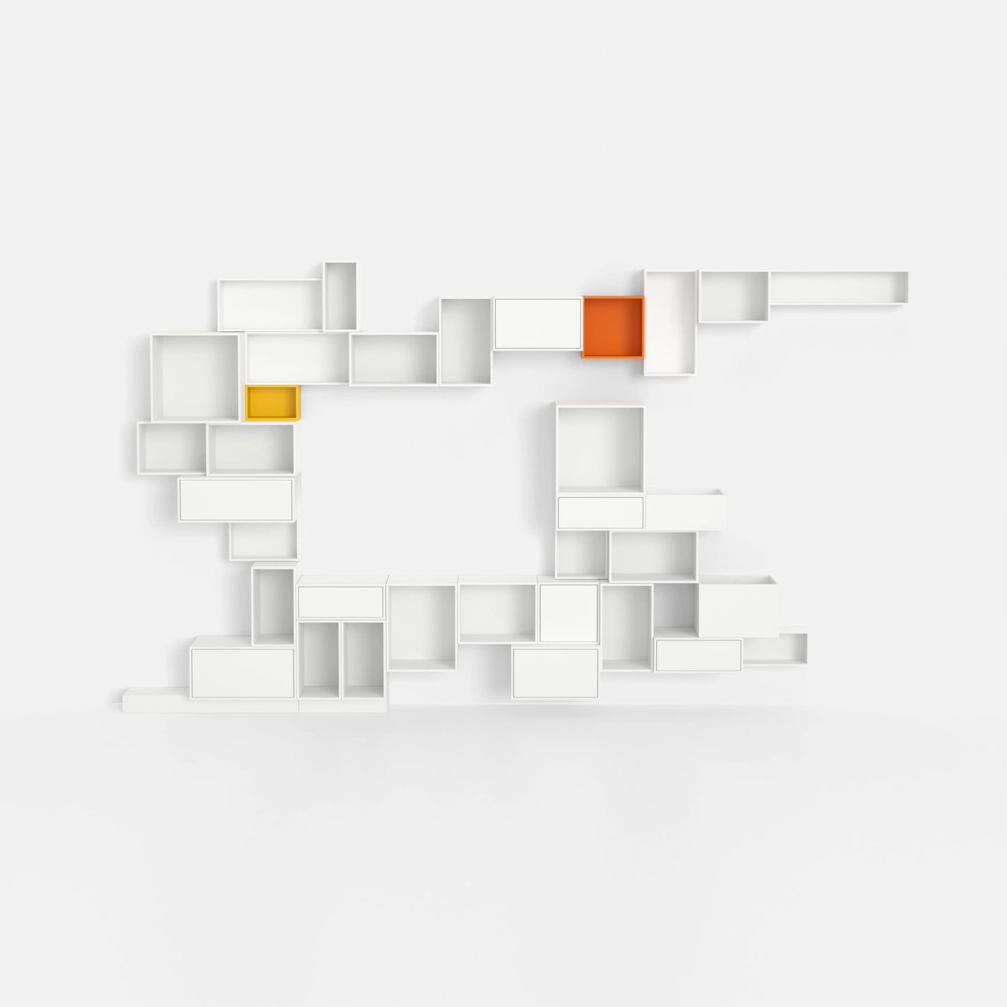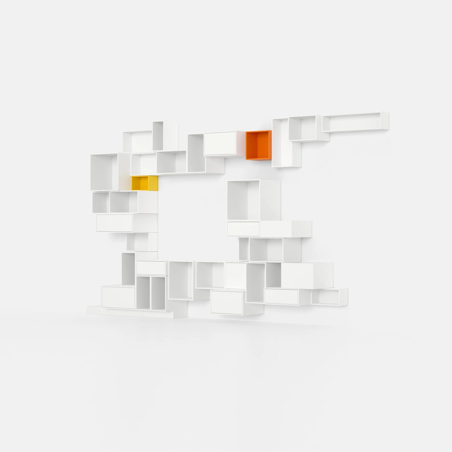 • 34 individual shelving modules in a total of 8 different depths
