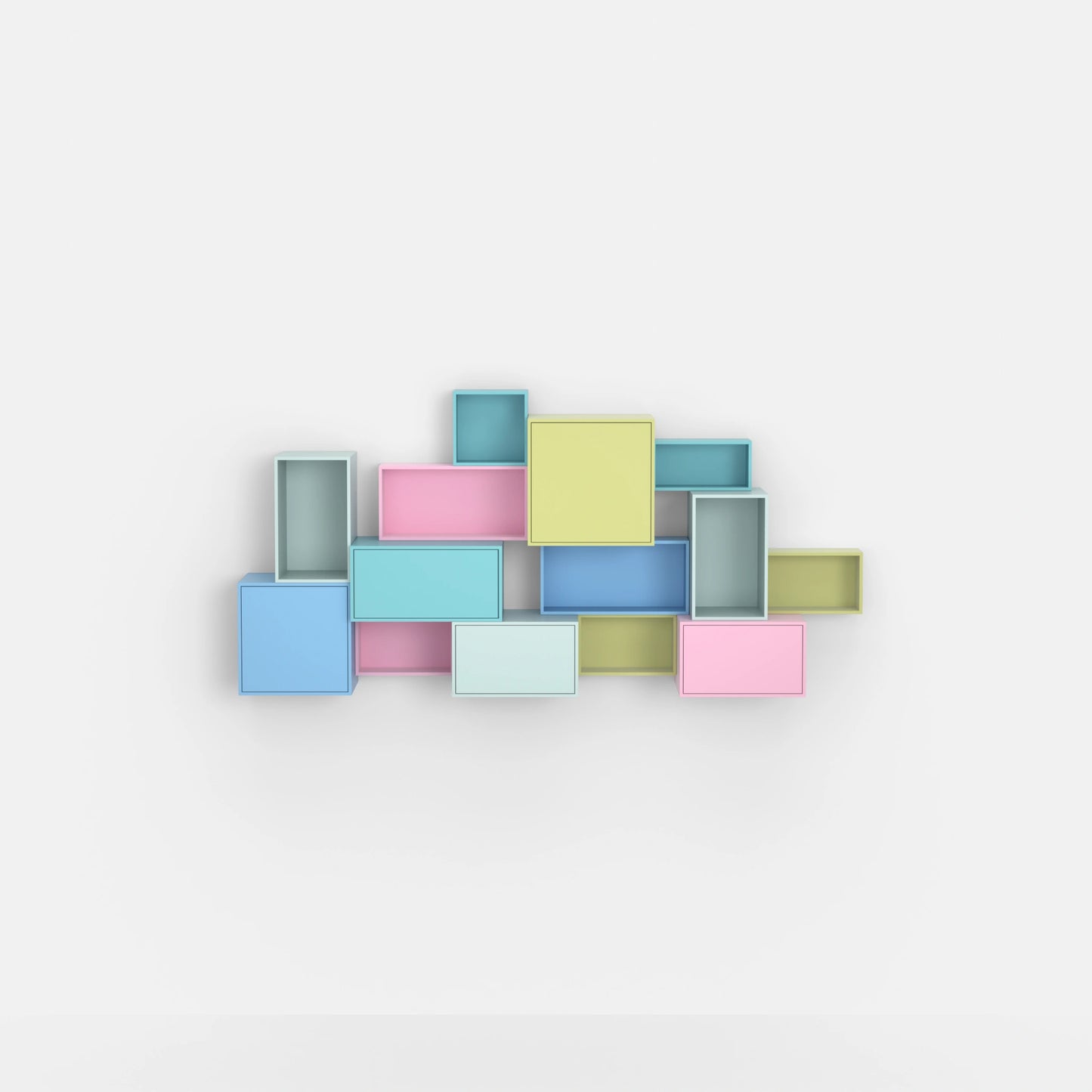 Each module combines modern aesthetics with high functionality. The harmonious colour palette allows for creative combinations: Pistachio and ice blue soothe, rose and lagoon set accents. This variety brings freshness and style to any room.