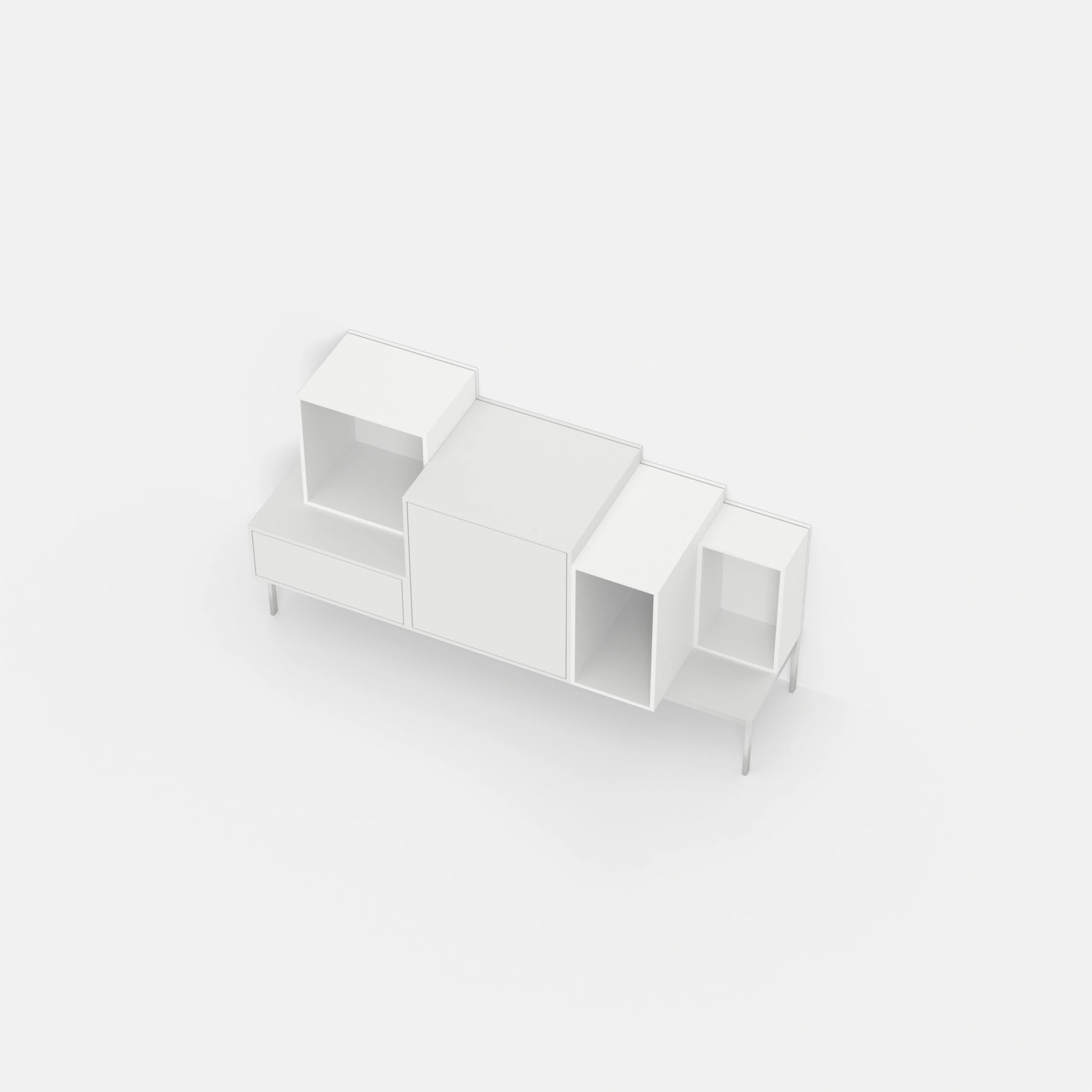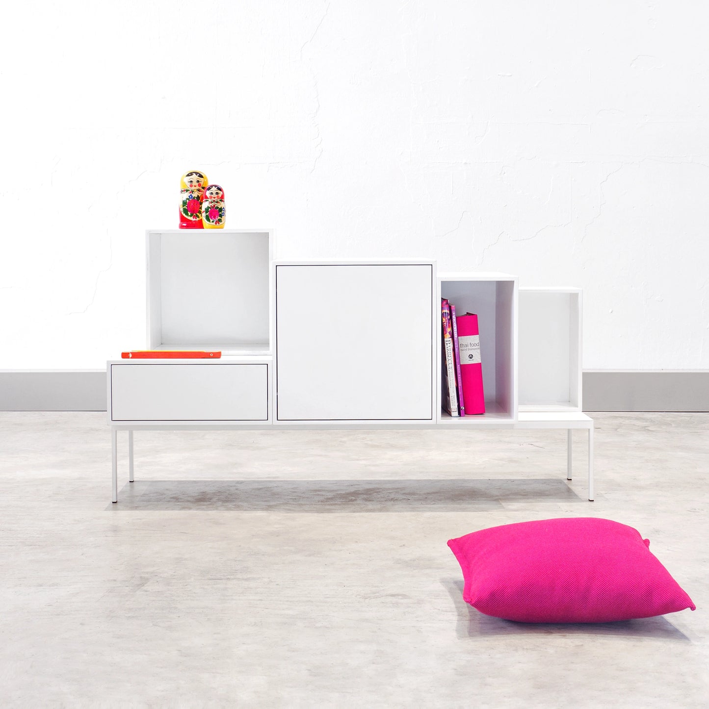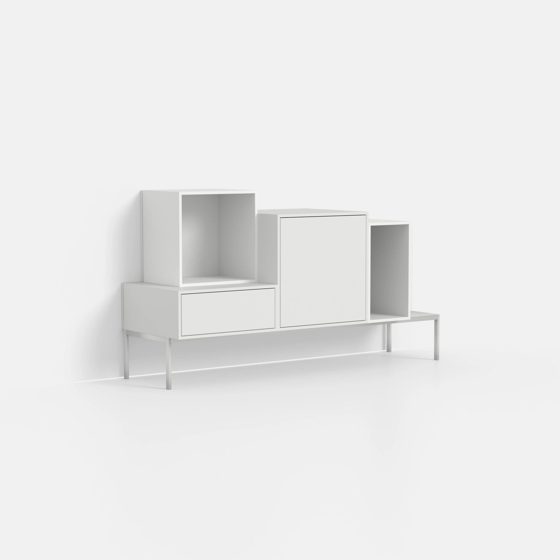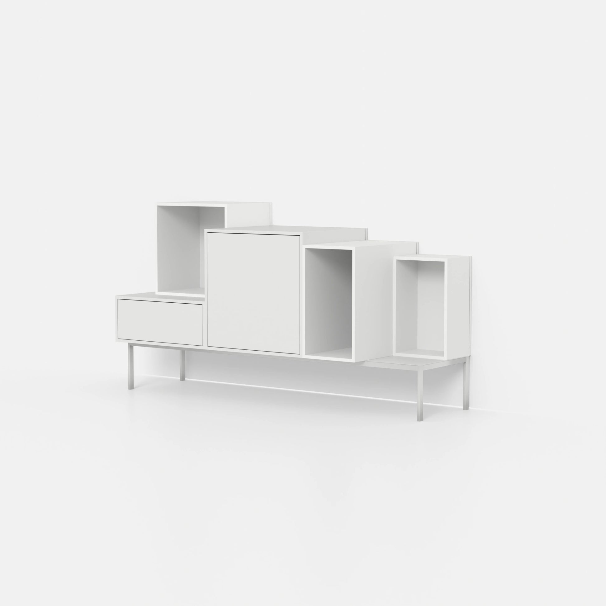Thanks to its neutral colour scheme, the Sideboard blends seamlessly into a wide variety of interior styles. Minimalist or Scandinavian, it adapts perfectly to your interior. Six spacious modules offer generous storage space for books, documents and decorations.