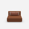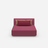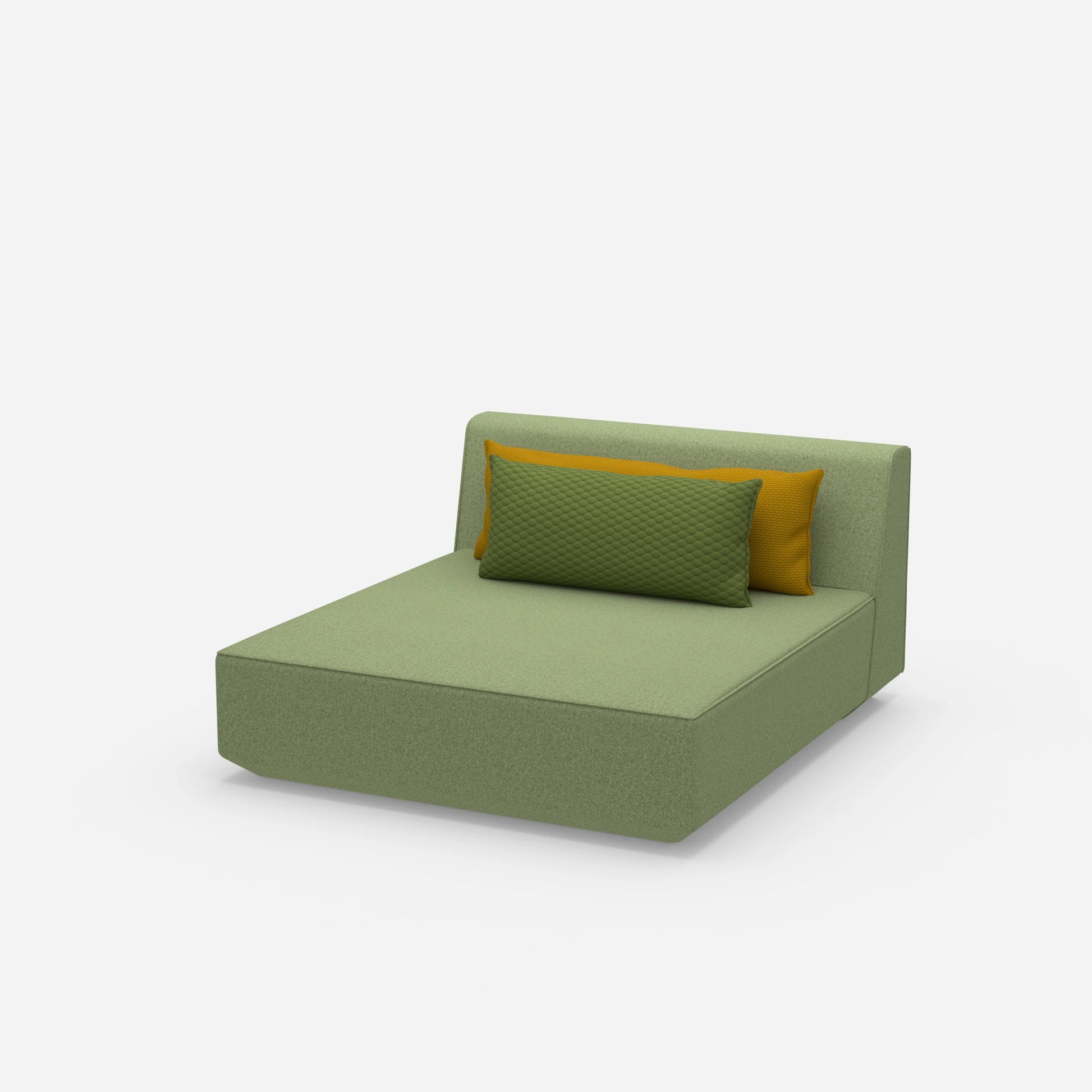 The modular wide chaise longue is a highlight in the modular sofa range. A backrest module and two cushions form the basis. This structure enables flexible arrangements. Designed to be open, it creates space. Compactly arranged, it offers comfort.