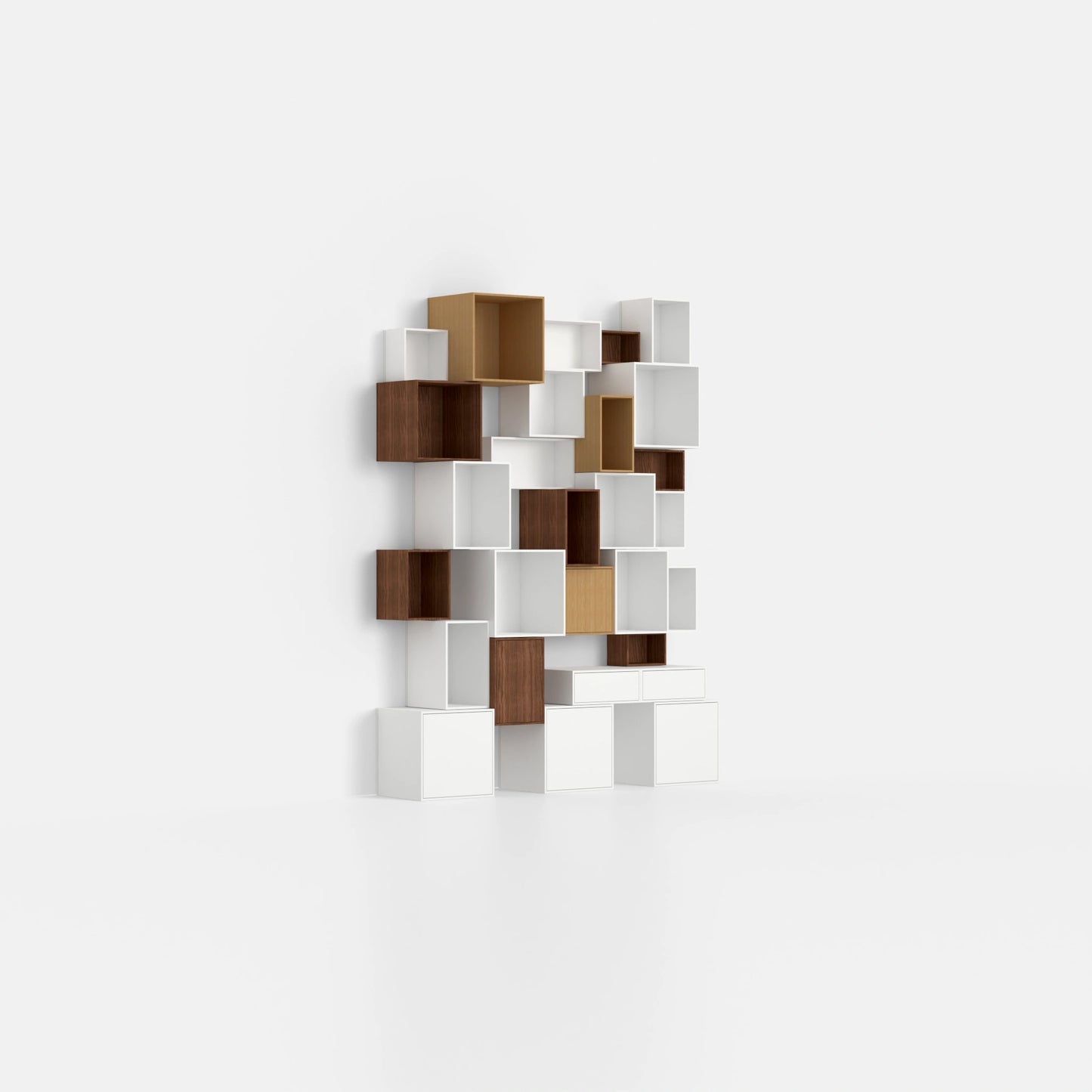• 34 individual shelving modules in a total of 8 different depths