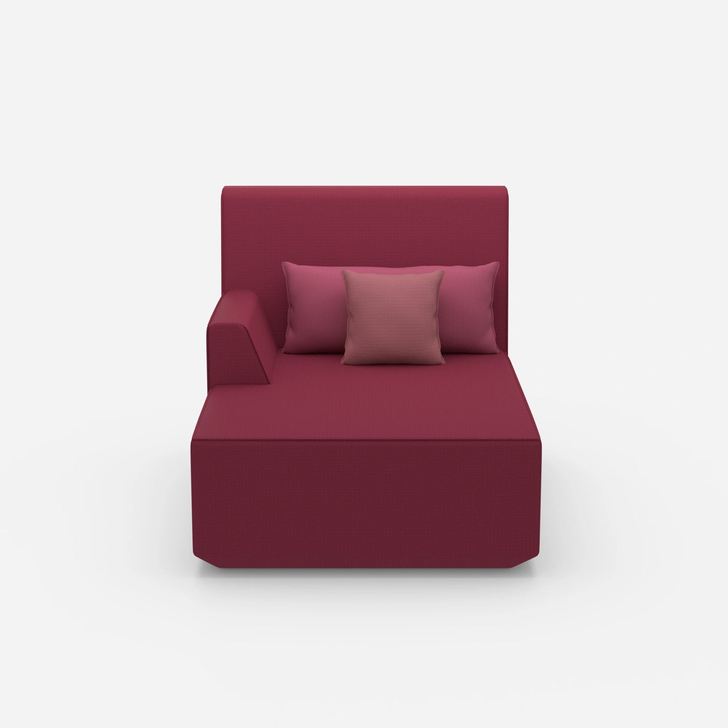 The 100 cm wide pink chaise longue is a highlight for stylish living rooms. This chaise longue combines a left-hand module with two cushions. This structure offers comfort and flexibility in a compact design.