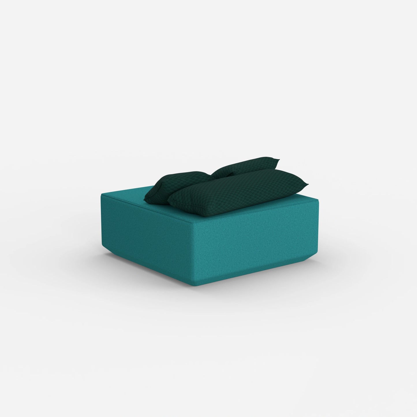 The petrol pouf brings a breath of fresh air into your home. It belongs to the fascinating world of Pouffes. Its versatility is remarkable. Three soft cushions and a pouf module offer flexible use. The combination is open and compact.