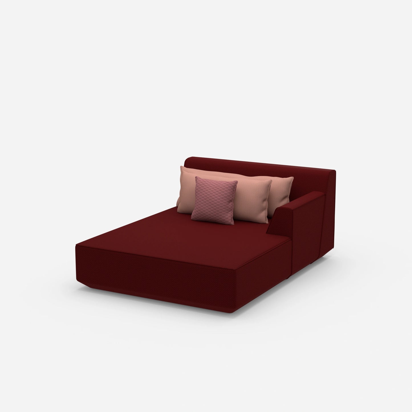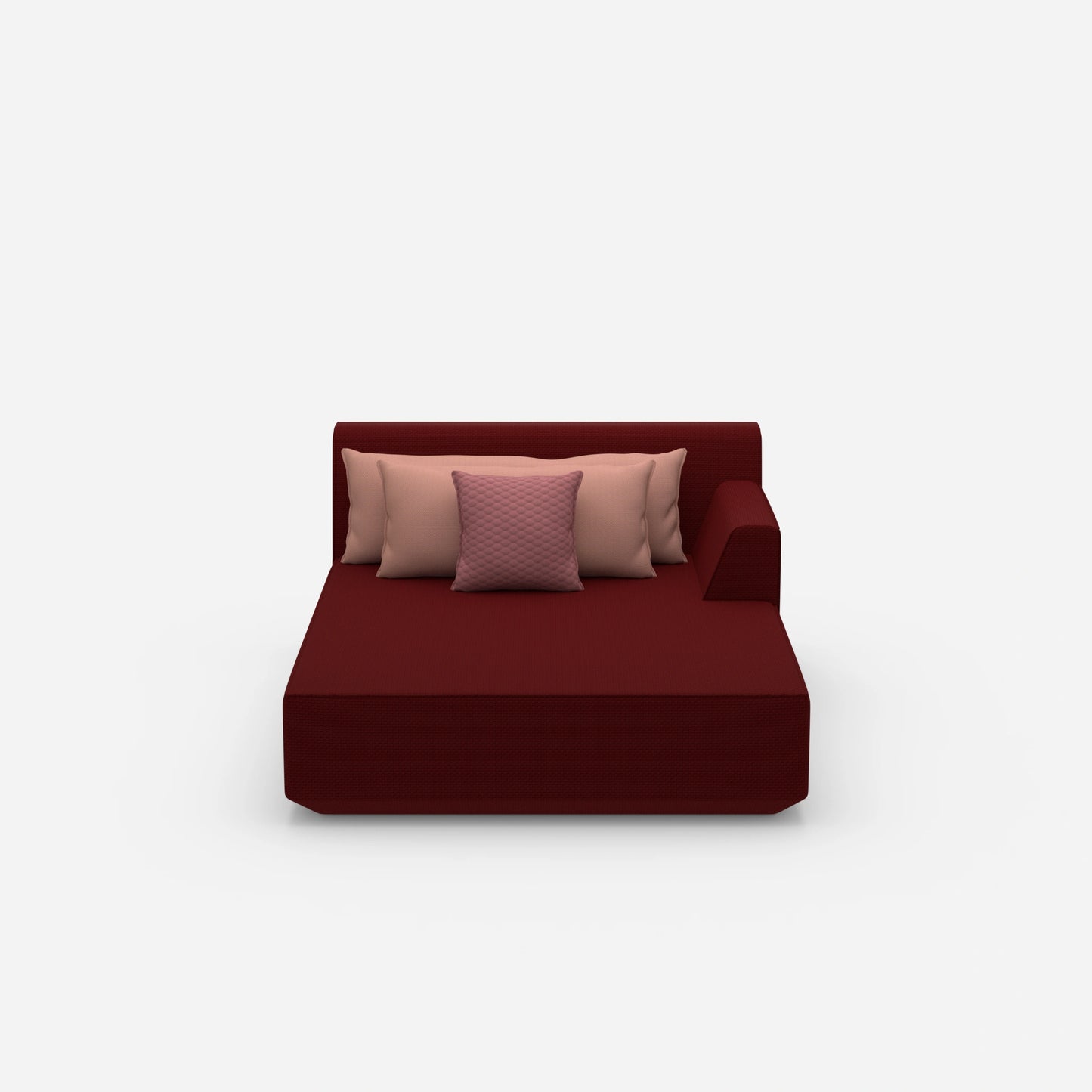 The colour scheme is lively and varied. Shades such as flamingo, bordeaux and magenta give the room a special touch. However, other colour variants are also available to suit individual preferences. The colours lend every room a homely yet structured atmosphere and make the chaise longue a central design element.