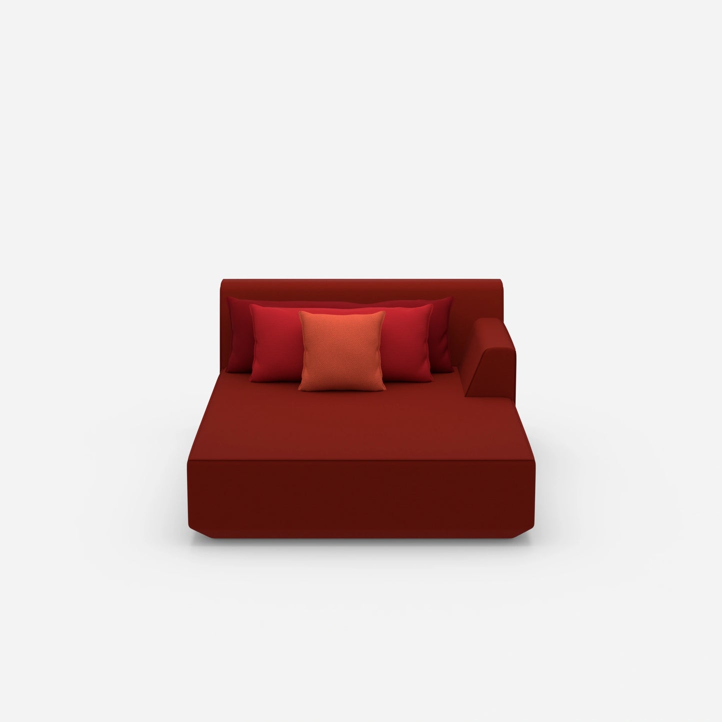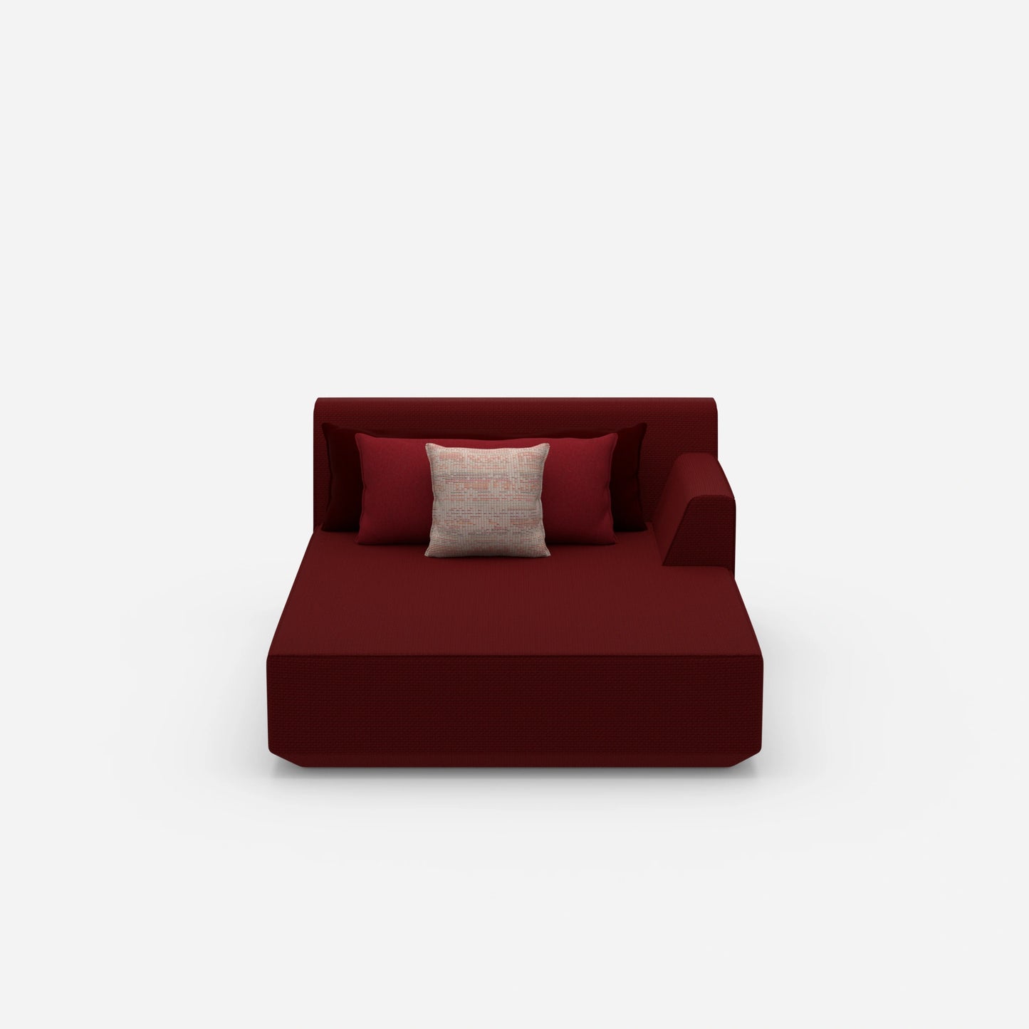 The red chaise longue is a real highlight among seating furniture. With its sophisticated structure, consisting of three cushions and a chaise longue module on the right-hand side, it offers a perfect blend of comfort and style. This combination makes the chaise longue a versatile piece of furniture that fits seamlessly into various living concepts.