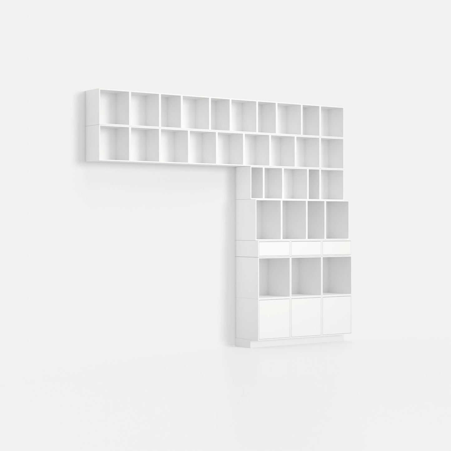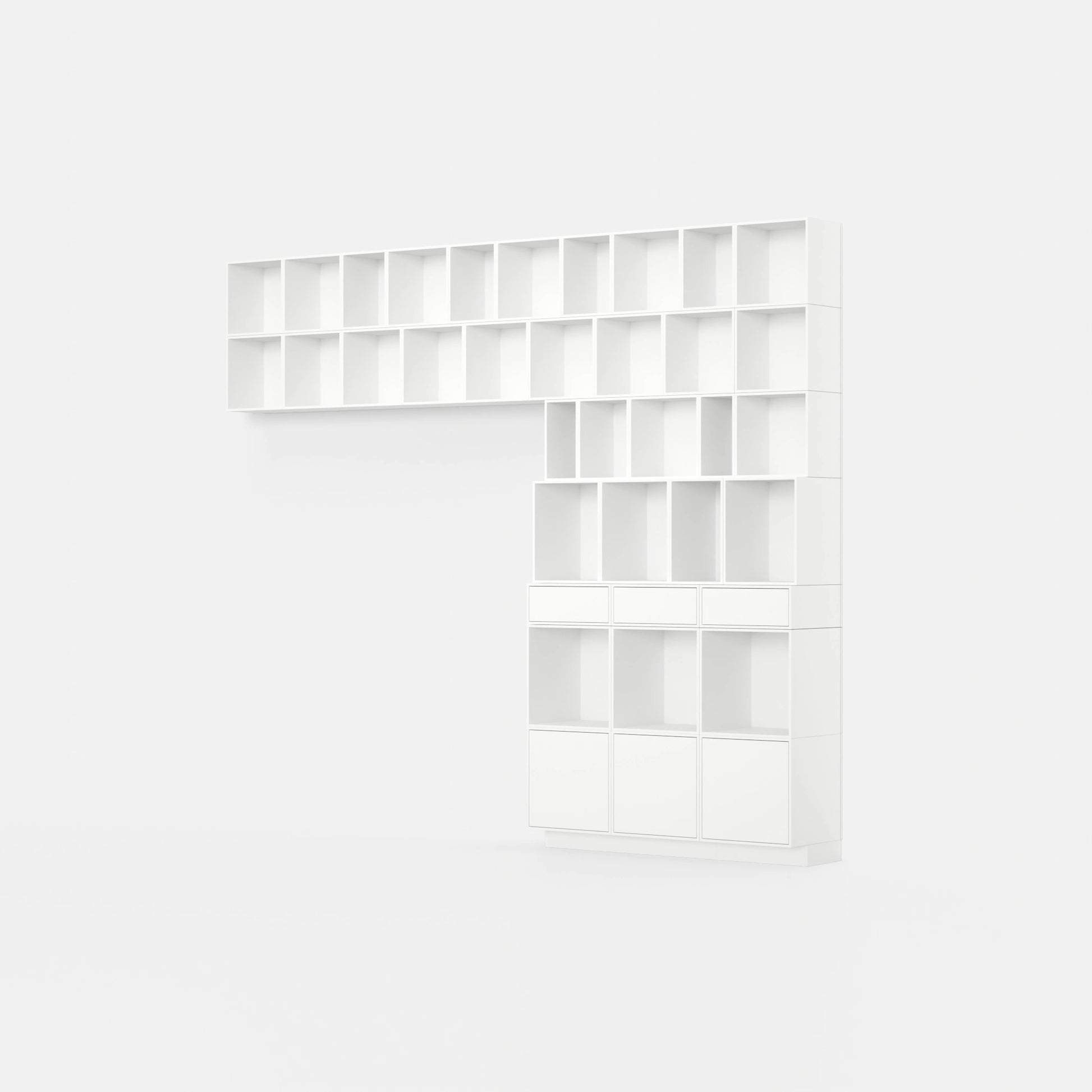 • 34 individual shelving modules in a total of 8 different depths