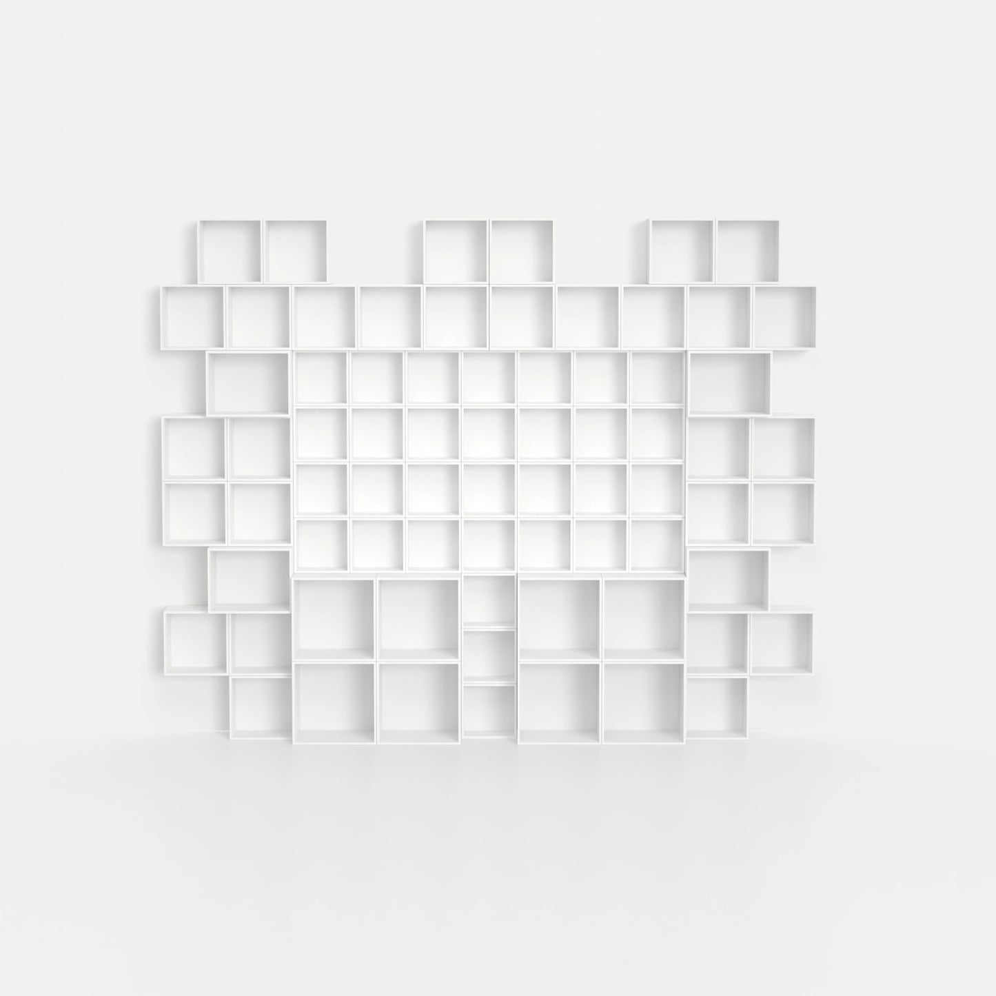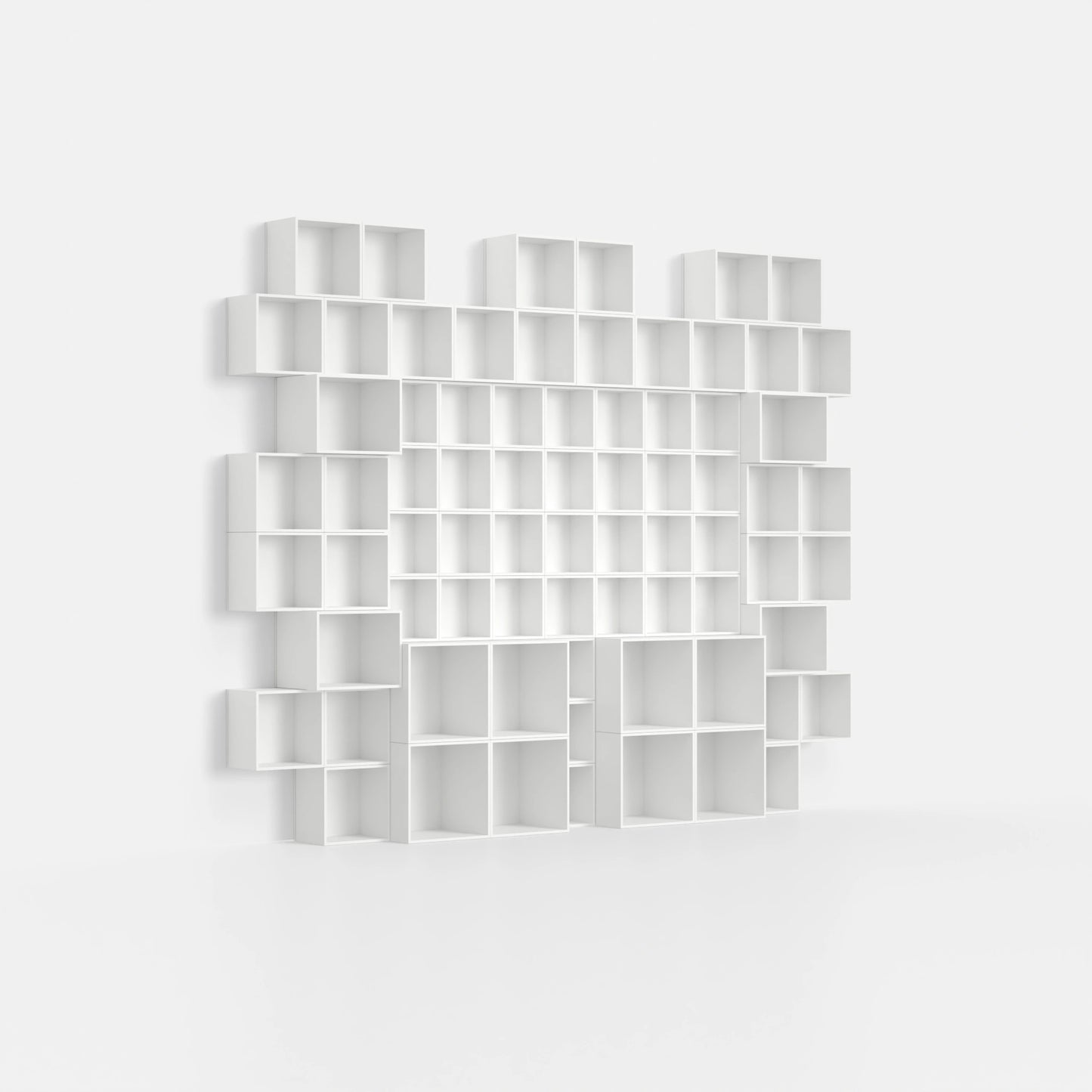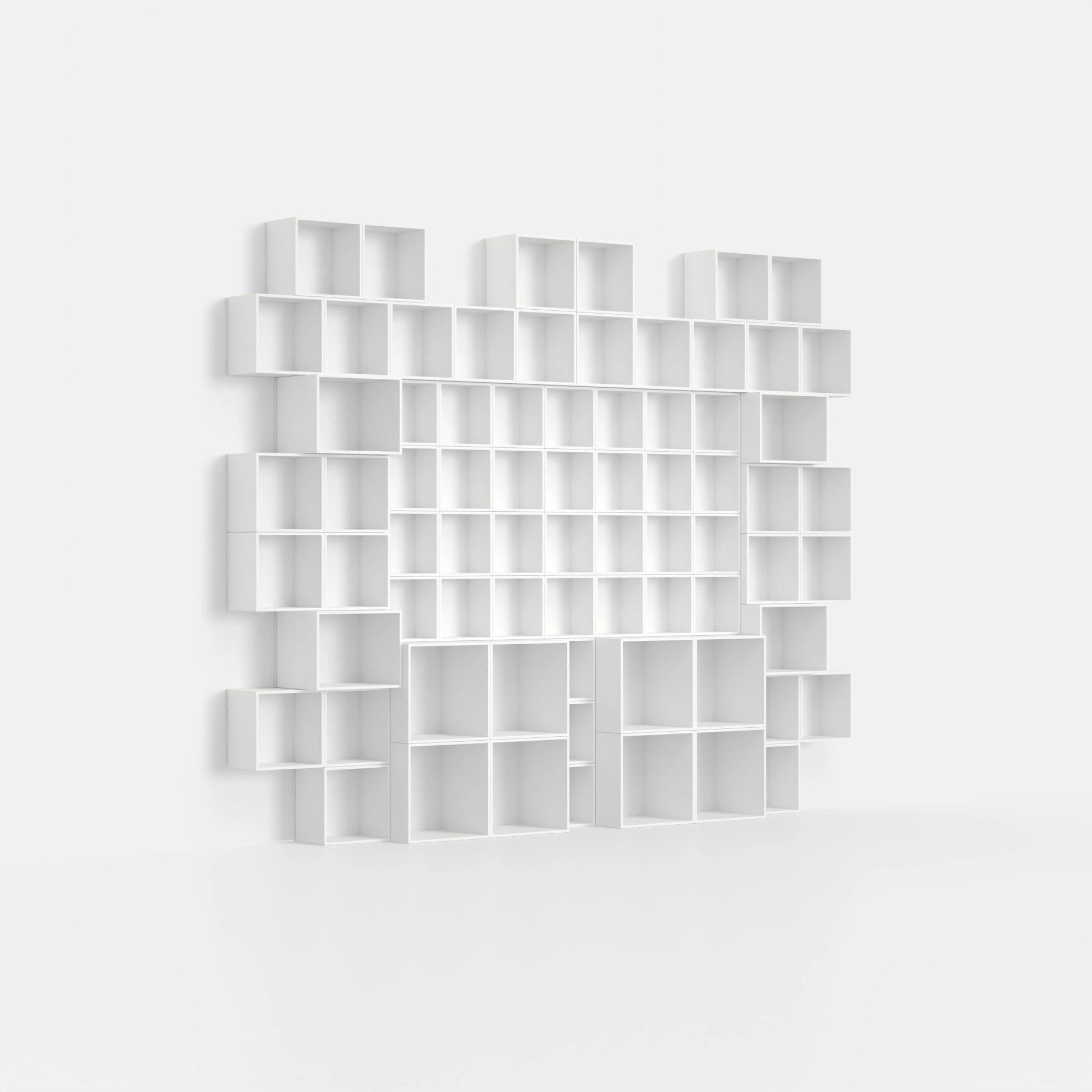 The RK020 Shelving system offers elegant storage space for your home. With a width of 280 cm, a height of 224 cm and a depth of 33 cm, it is ideal for modern and classic rooms. Thanks to 73 modules, it offers unprecedented organization possibilities.