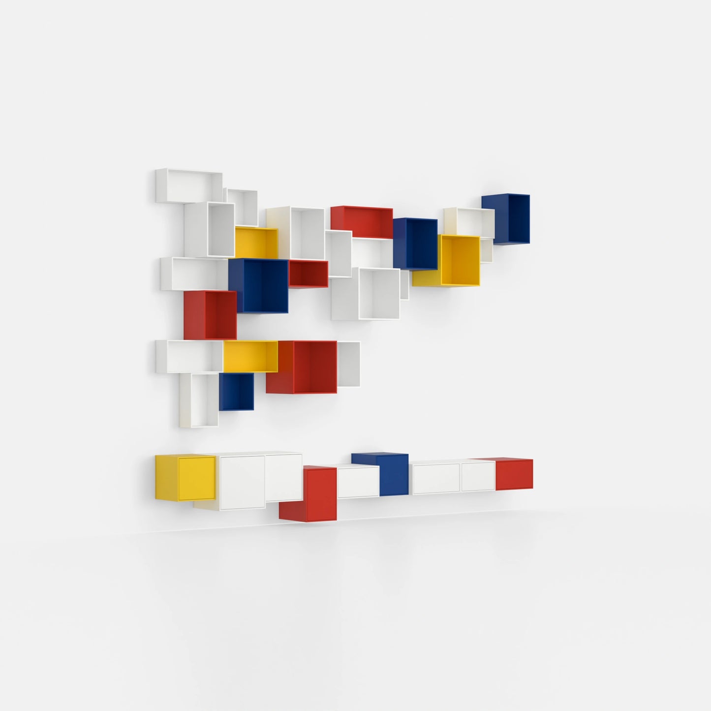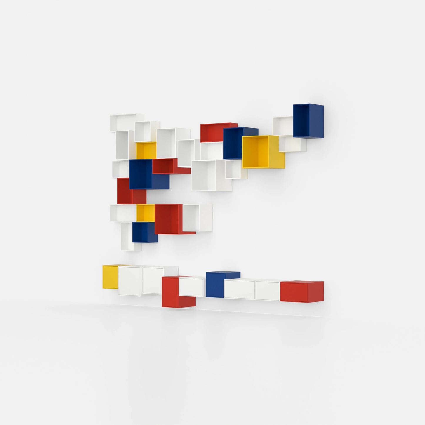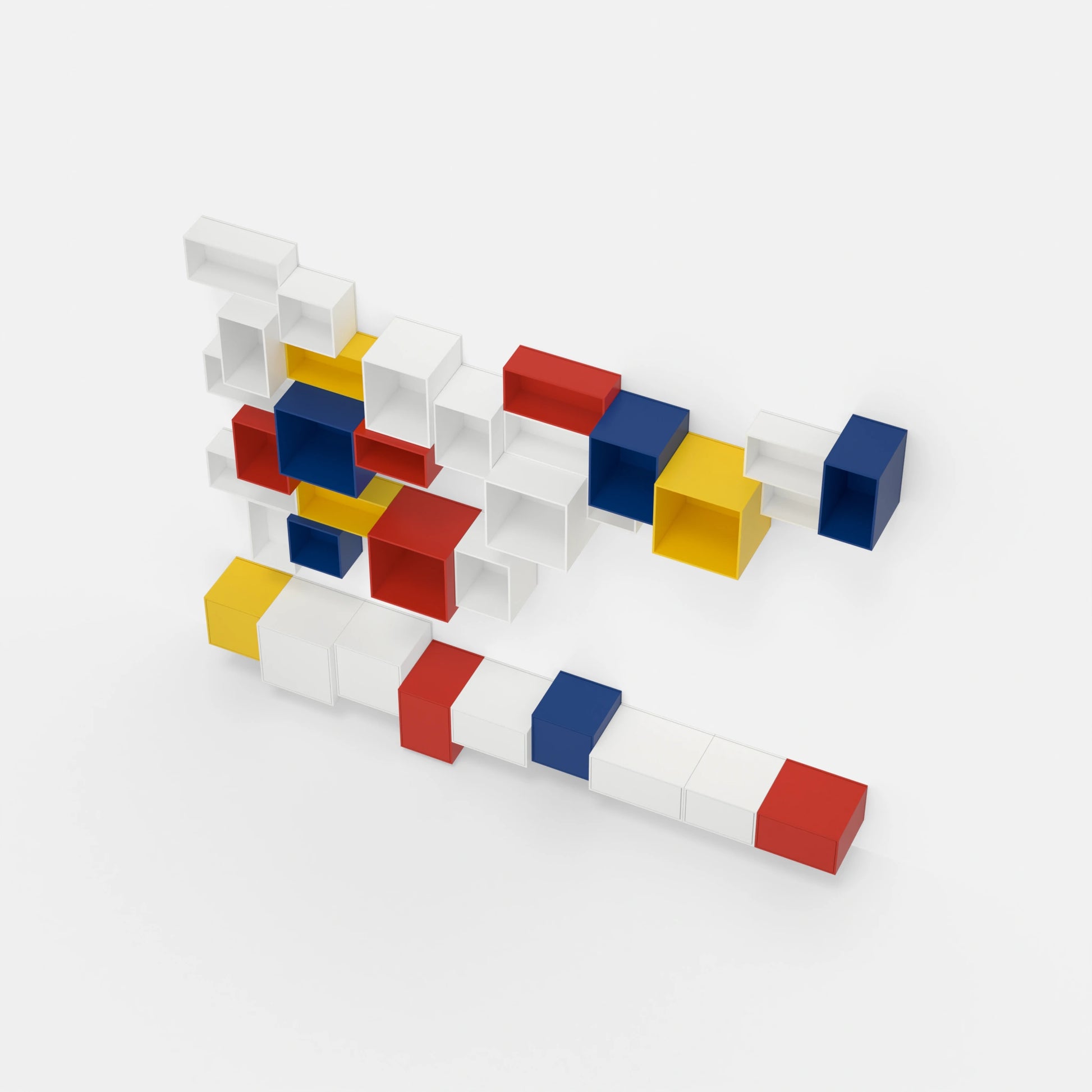 Discover the RK1069 Shelving system - the solution for innovative interior design. With an impressive width of 332 cm, a height of 206 cm and a depth of 37 cm, it offers more than just storage space. The 34 modular units of the RK1069 come in vibrant shades: white, atlantic blue, coral red and canary yellow.