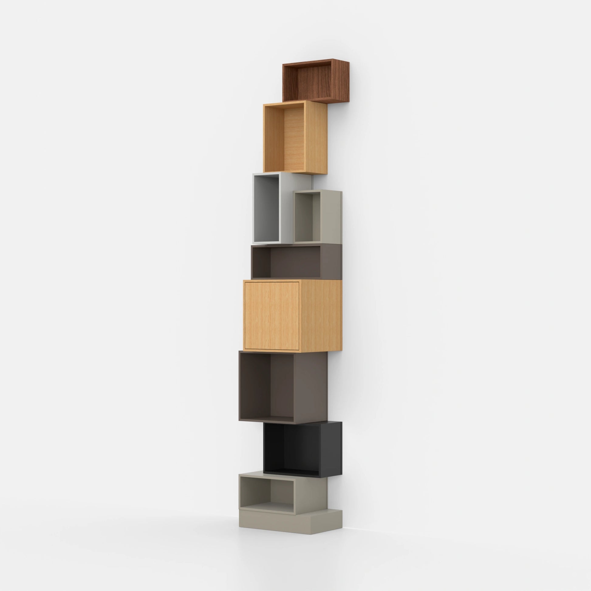 Are you looking for order? The RK141 offers space for books, art and memories. The natural wood colors add warmth to traditional rooms, while gray and black tones create a modern look. Customize the shelf to suit your style. Suitable for use in living areas, offices or galleries, the RK141 demonstrates design expertise and quality. The RK141 Shelving system is your solution for stylish storage.