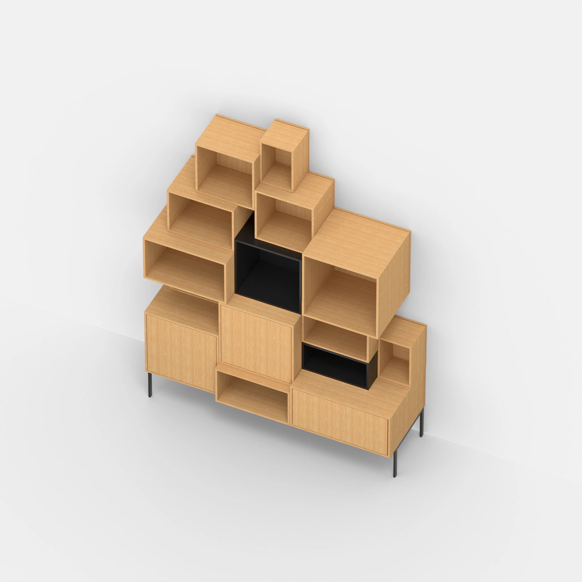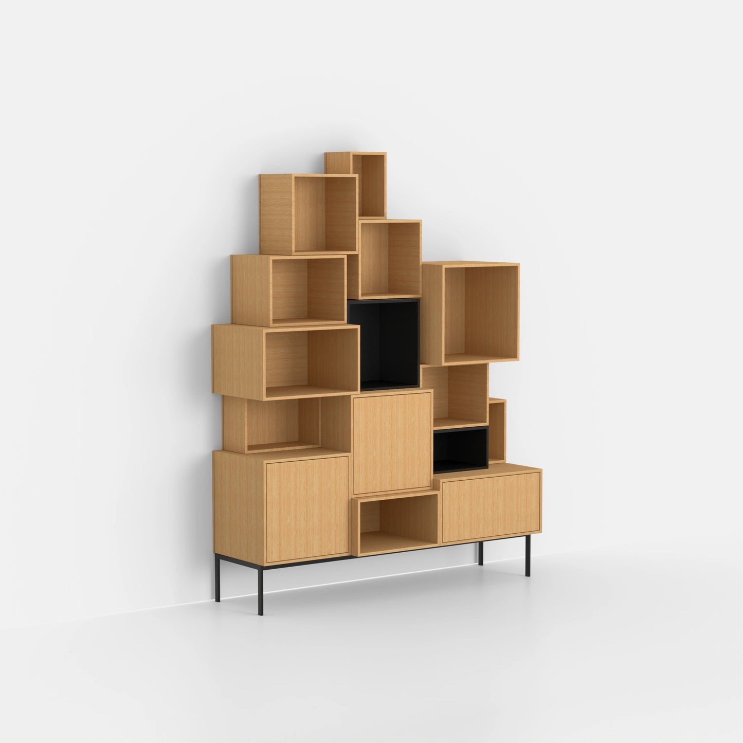 With 16 modules, this all-rounder organises your items in style. Need more organisation? The warm, textured oak complements the elegant black perfectly.