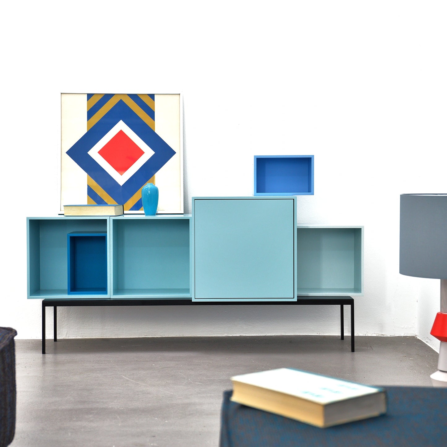 Six integrated modules reflect the functional elegance. black and ice blue provide a stylish base, while lagoon brings a breath of fresh air. It integrates effortlessly into existing furnishing styles and attracts attention.
