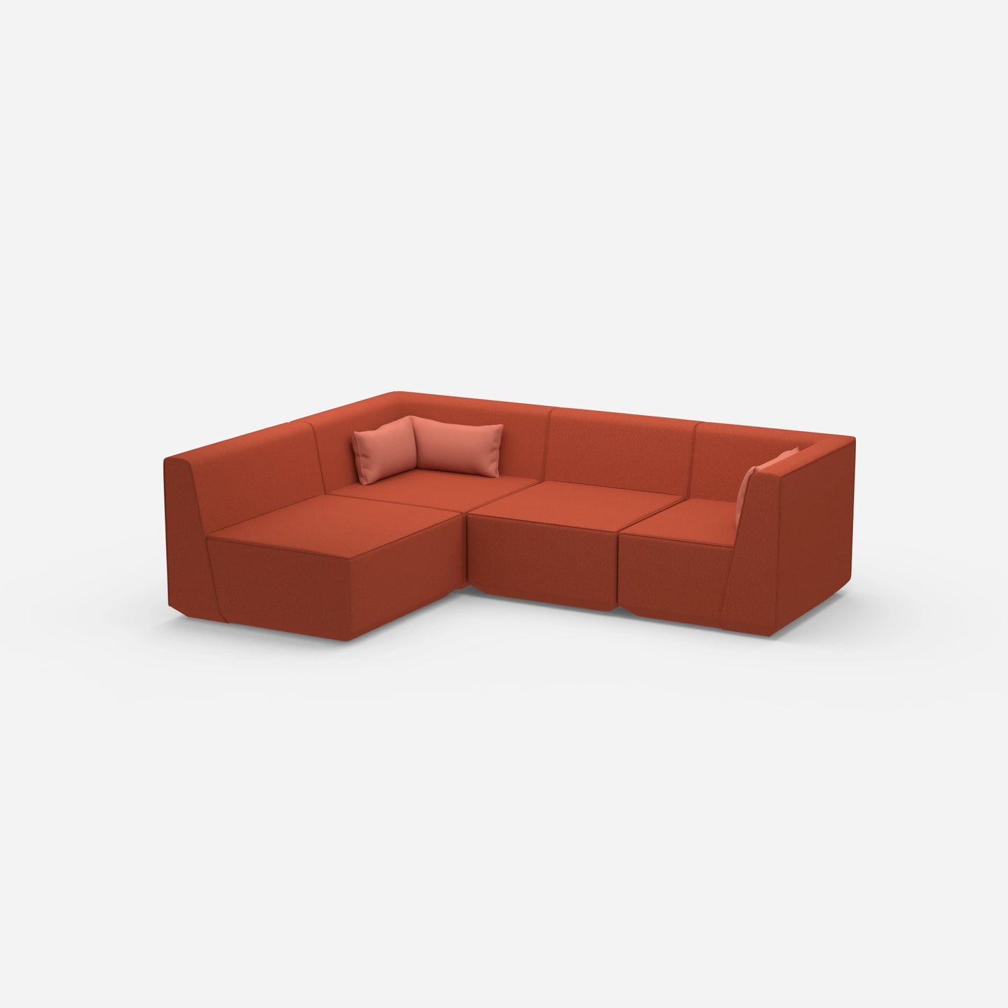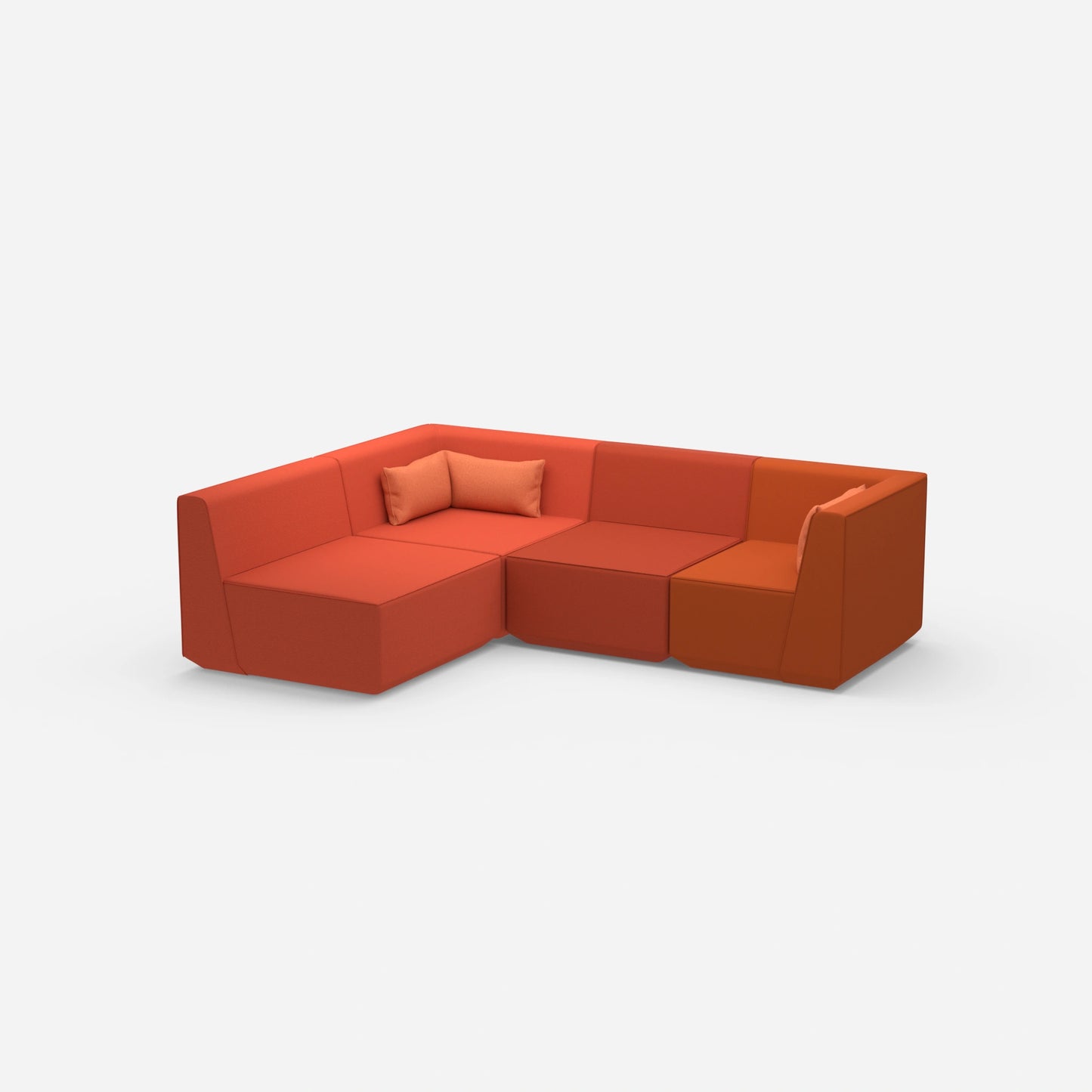 The orange corner sofa brings a breath of fresh air to the world of Corner sofas. With its four modules, it shows flexibility and style. The vibrant colour palette includes shades such as curry, grapefruit and coral. Copper and pumpkin are also represented. These colours radiate warmth and create an inviting atmosphere. Other colour combinations are also available.
