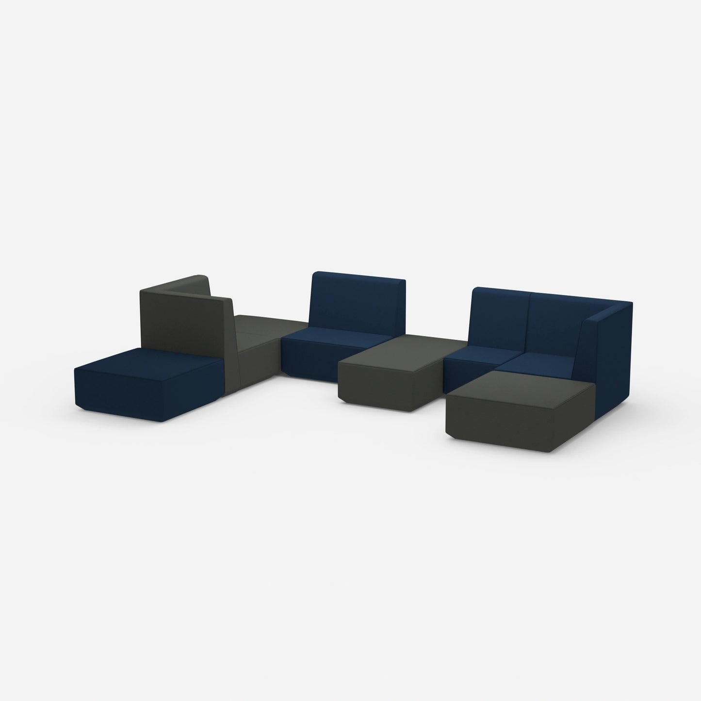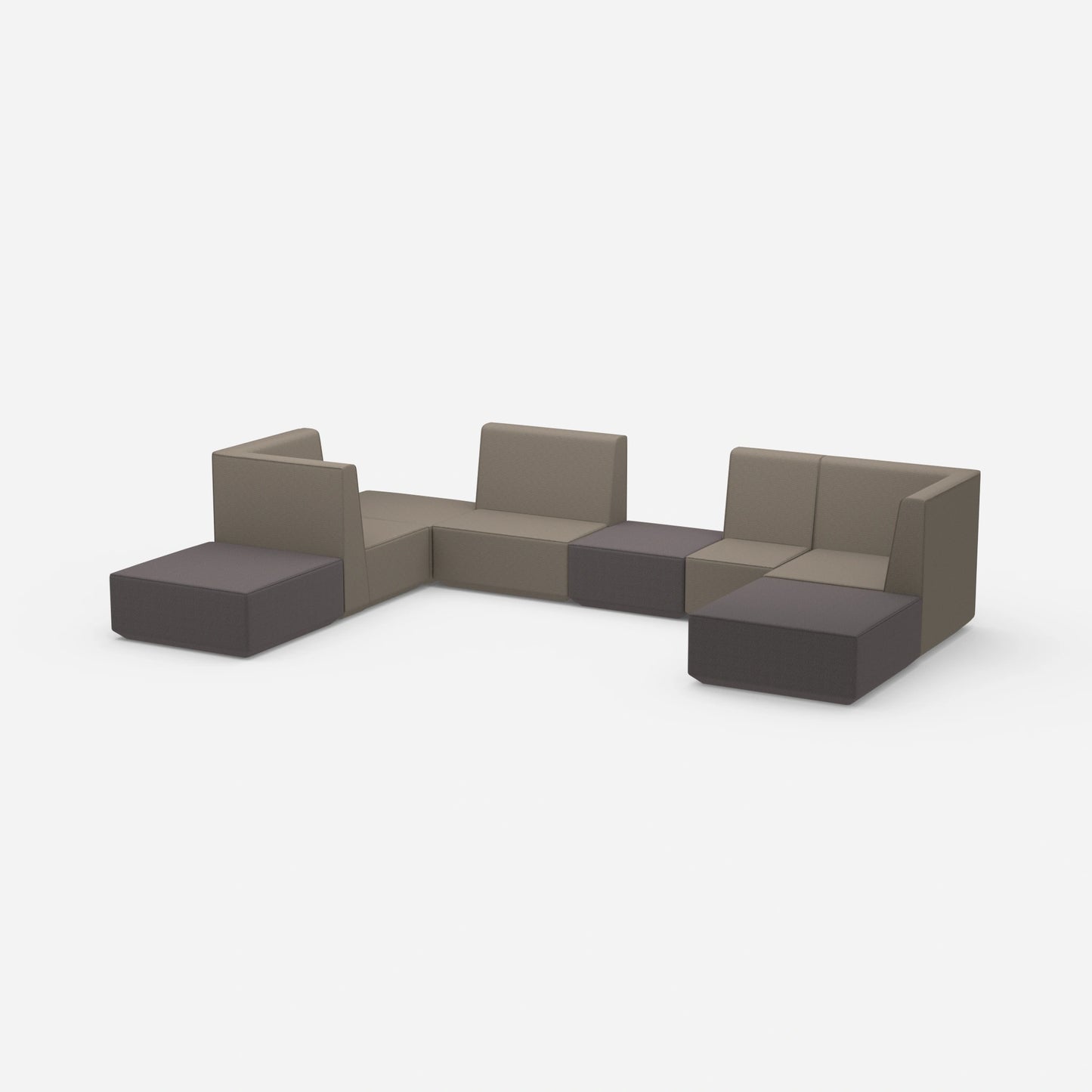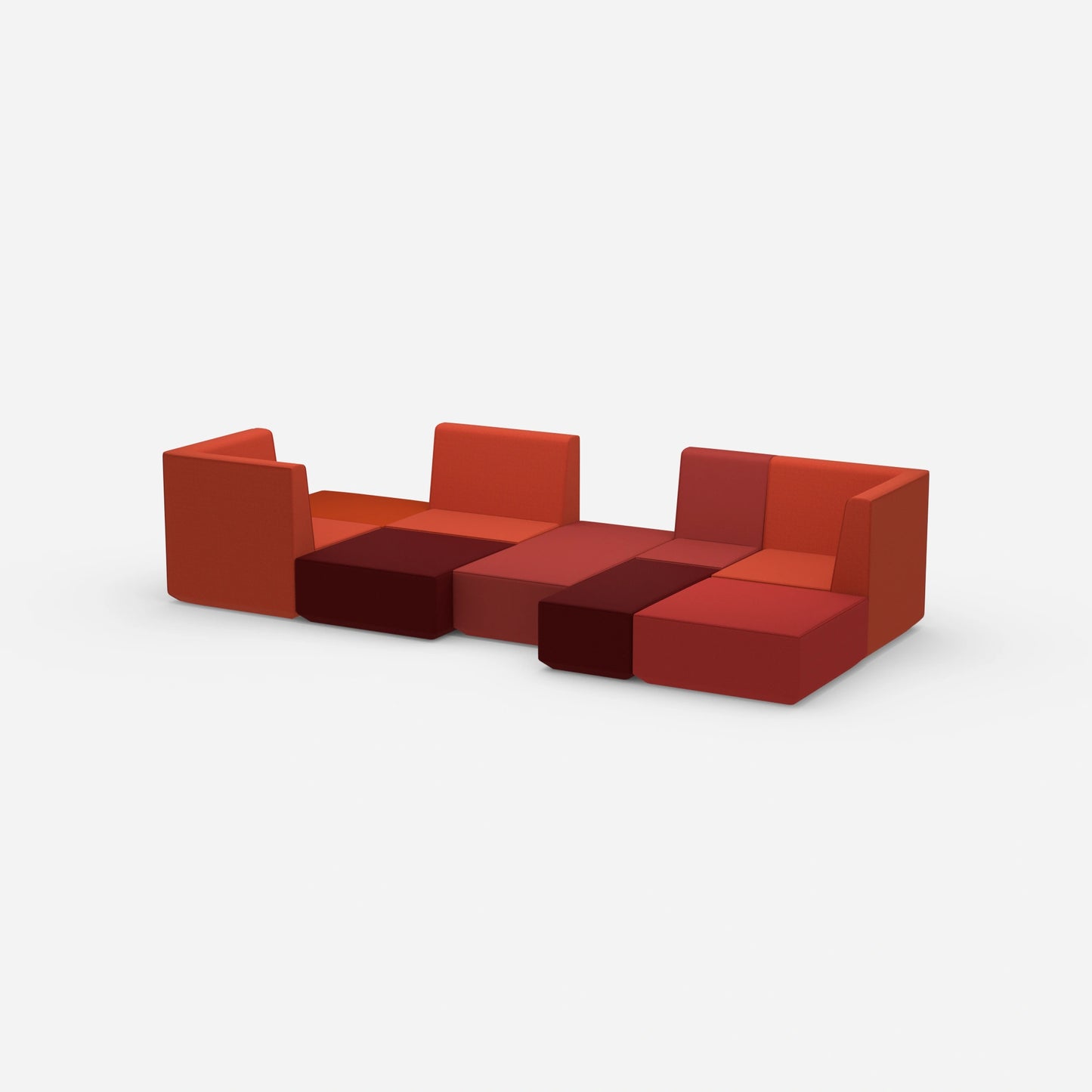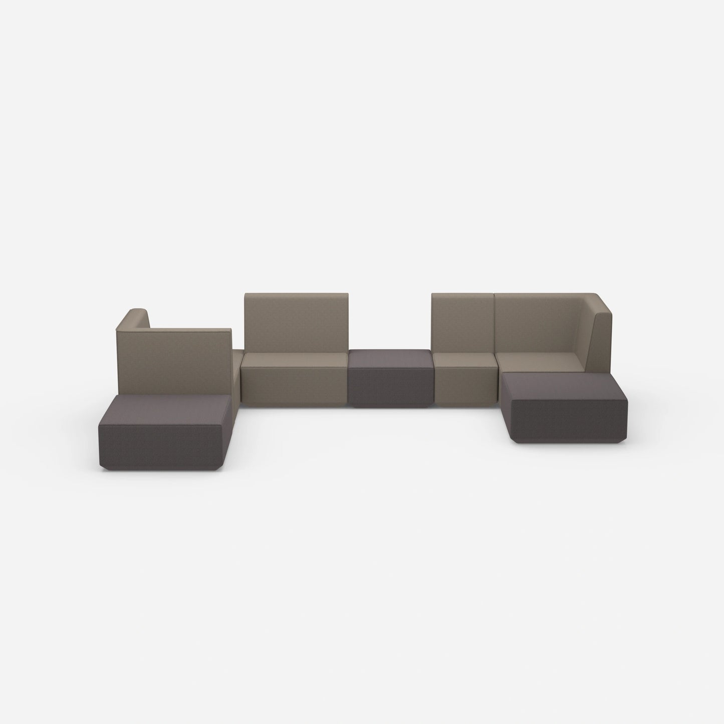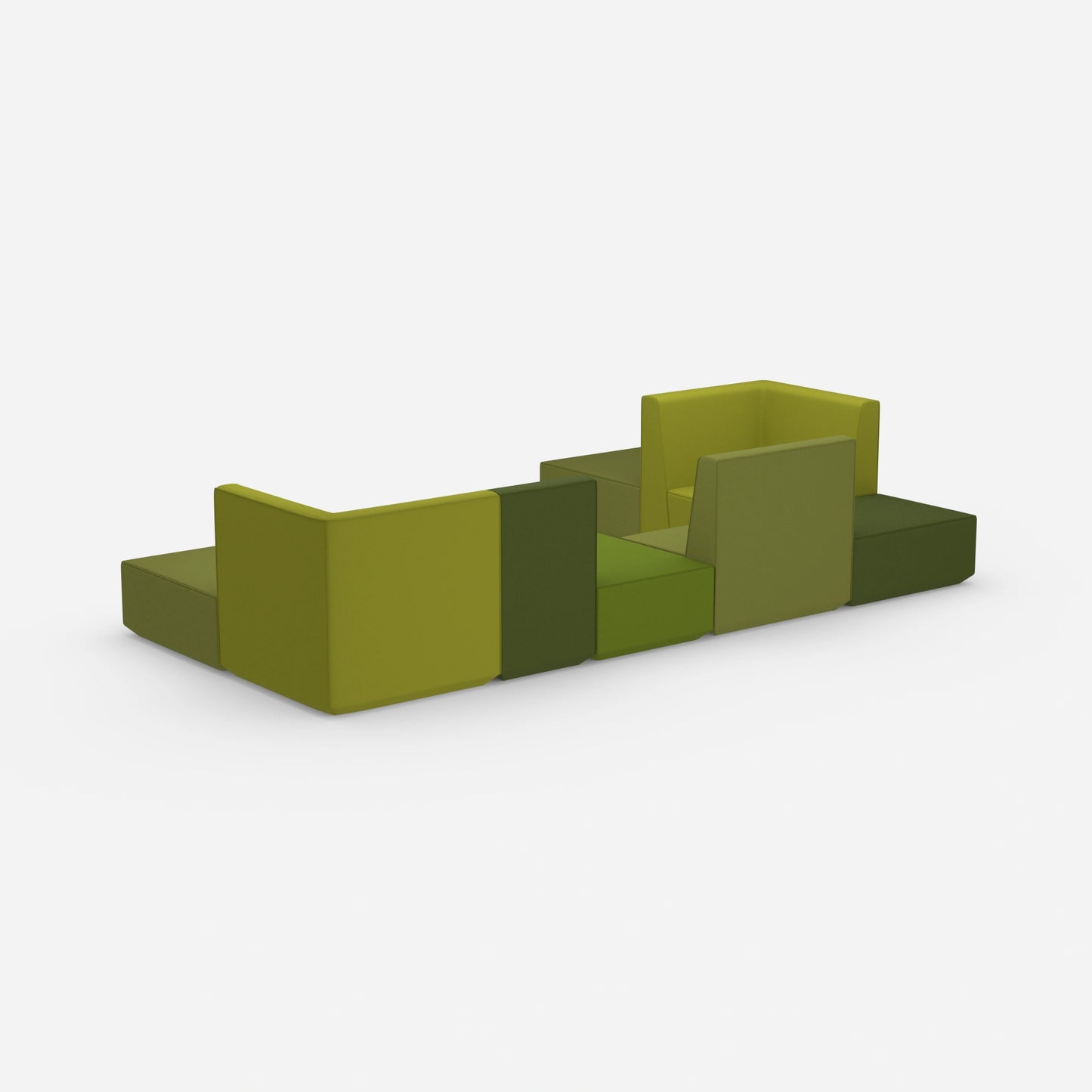Differently configured Cubit sofa modules in a large, open space - shows the variety of possible combinations and colours