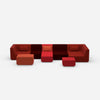 The colour scheme includes shades such as bordeaux, coral and cherry. This palette gives the sofa a lively character. Further colour variants are available to support your individual interior design. The modules are made up of cushions, pouf modules and corner and back modules. This structure makes it possible to arrange the sofa in an open or compact way, depending on your needs and how the room feels.