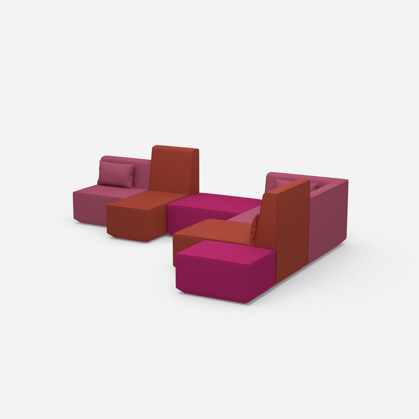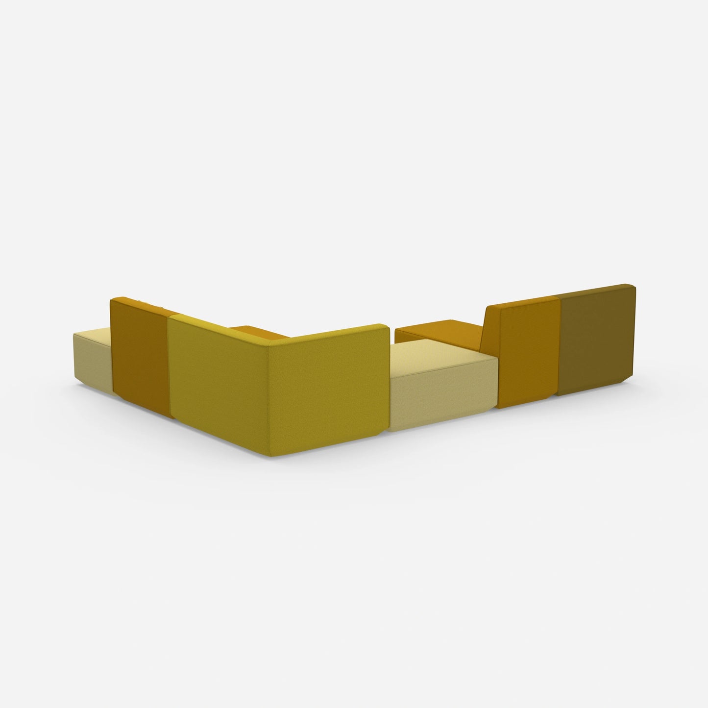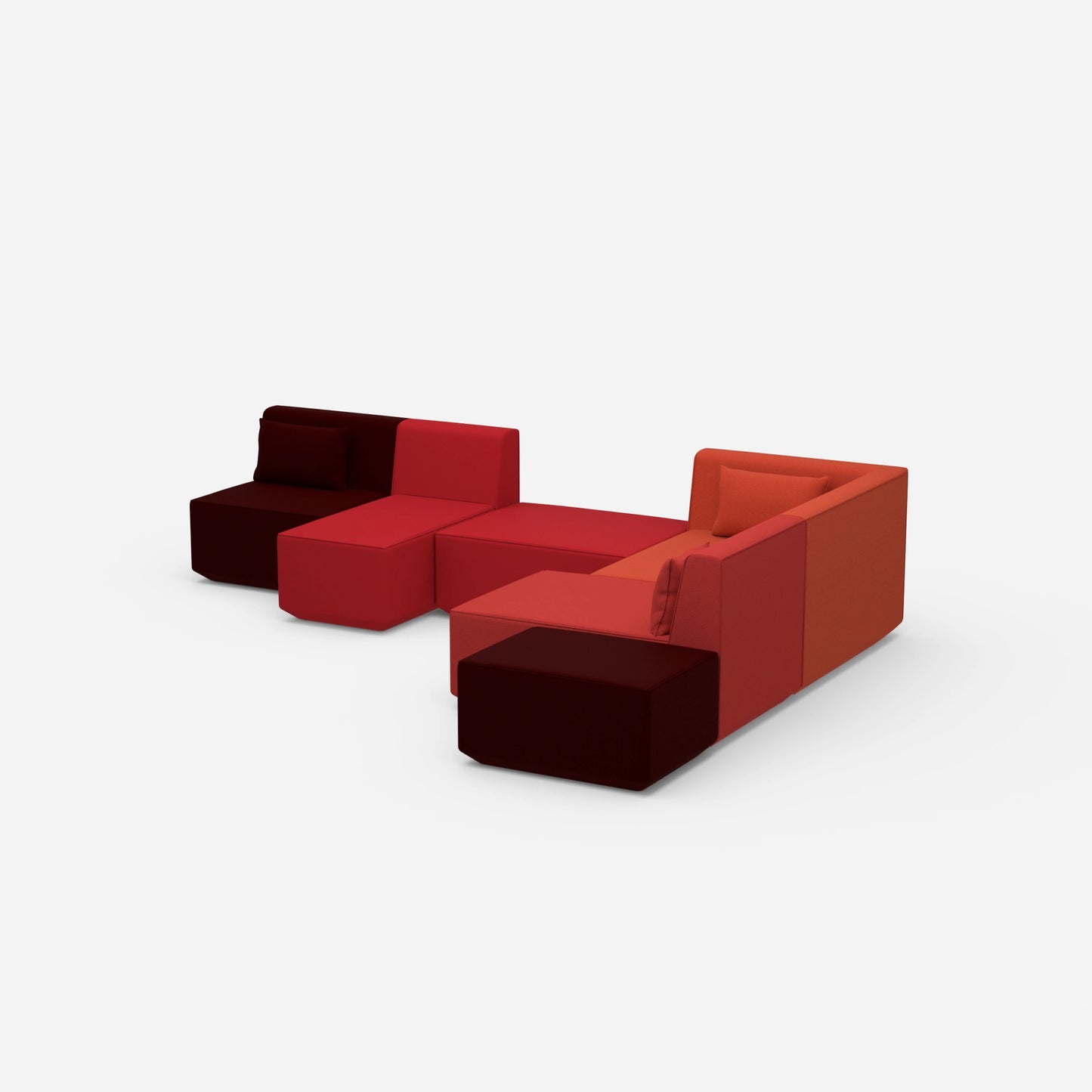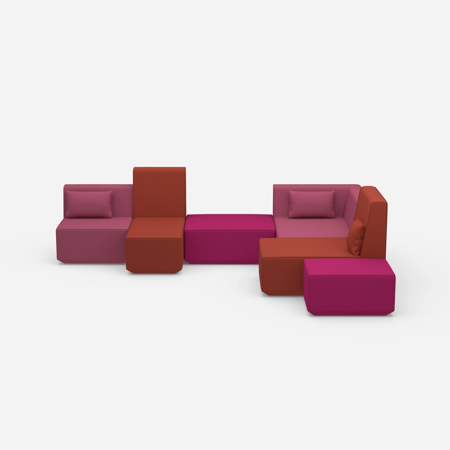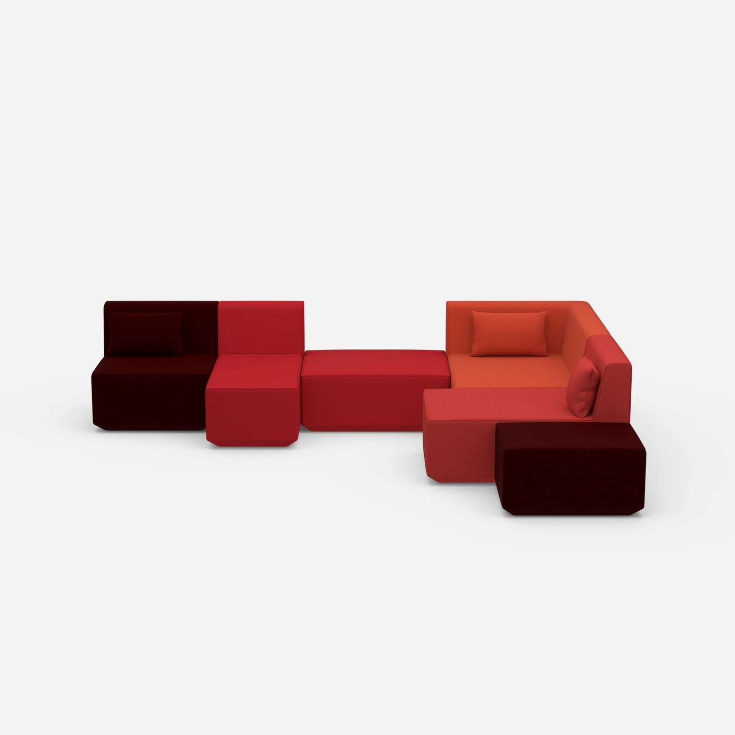 Differently configured Cubit sofa modules in a large, open space - shows the variety of possible combinations and colours