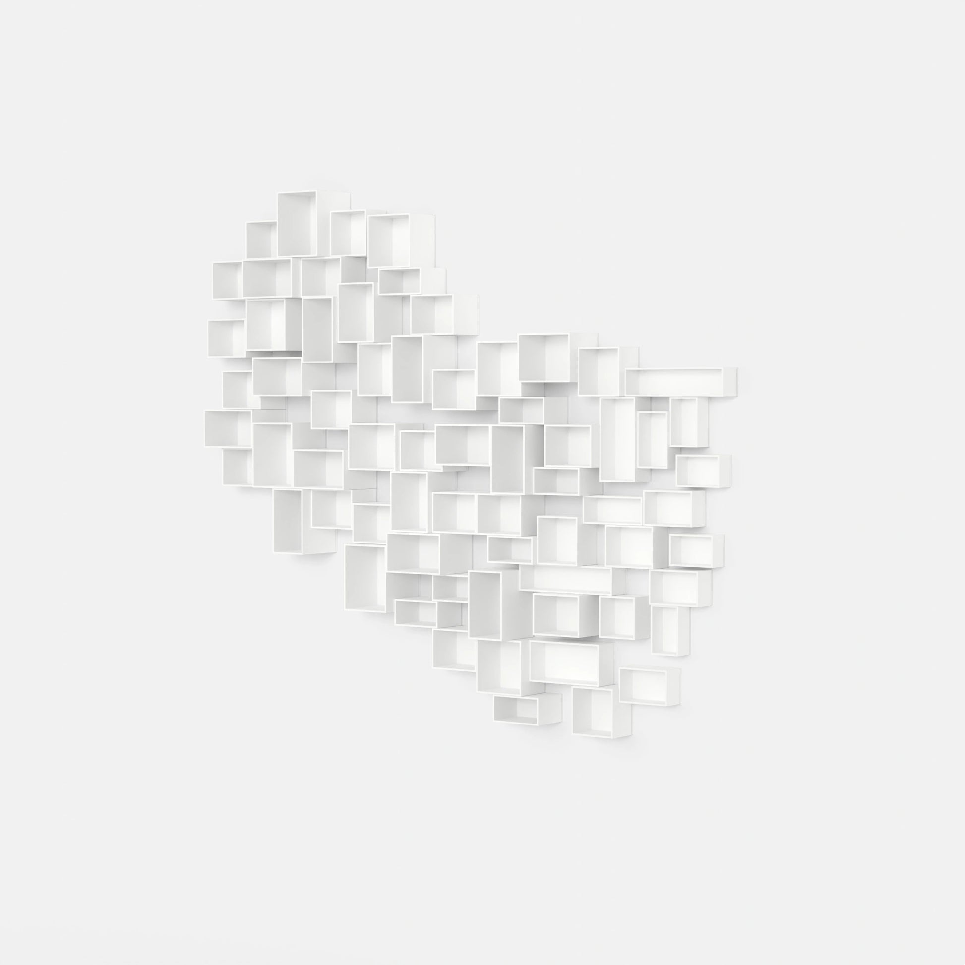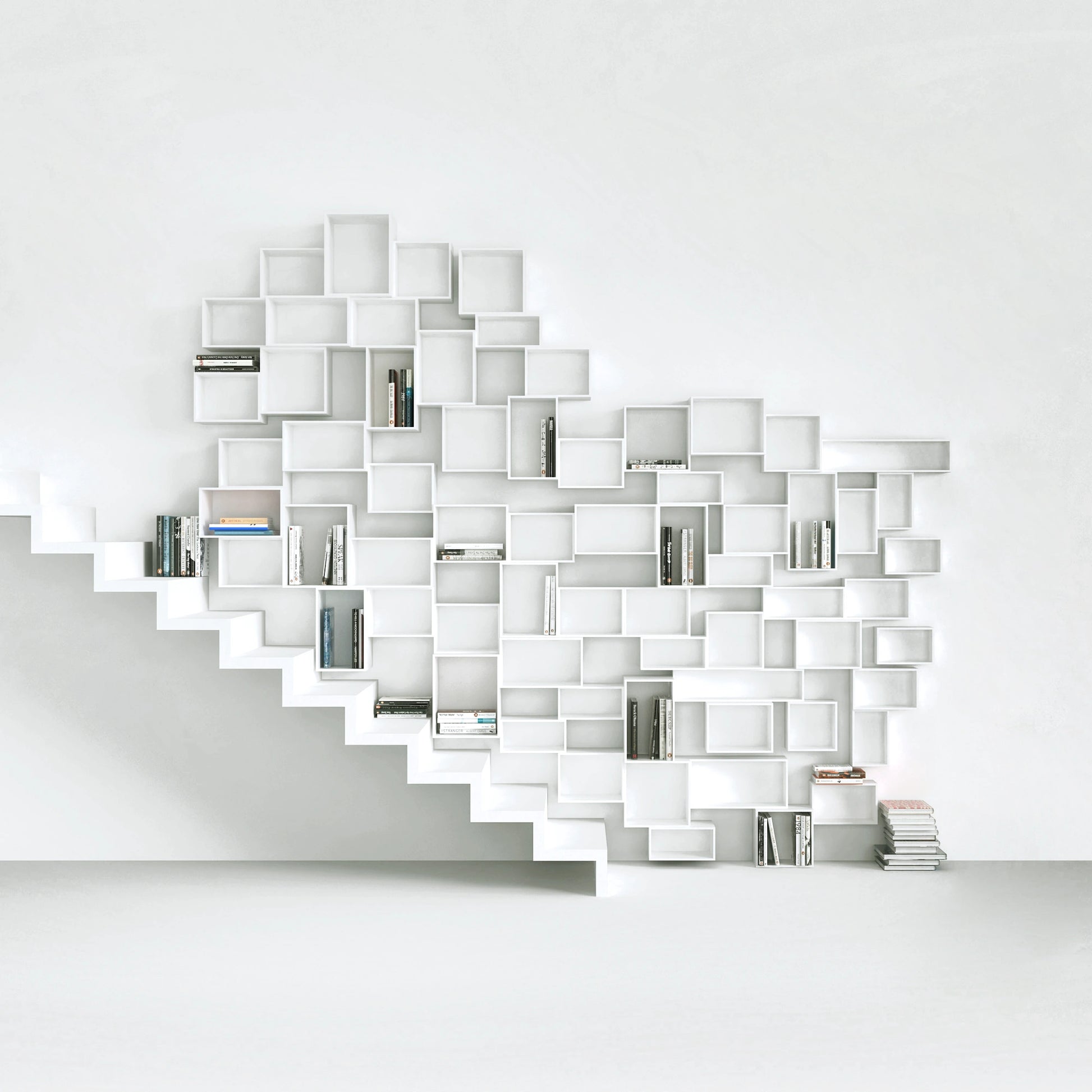 The RK116 Staircase shelving transforms your rooms. At 368 cm wide, 316 cm high and 33 cm deep, it offers plenty of space. 66 modules hold books, decorations and more. Bright white is a perfect match for modern and classic design.