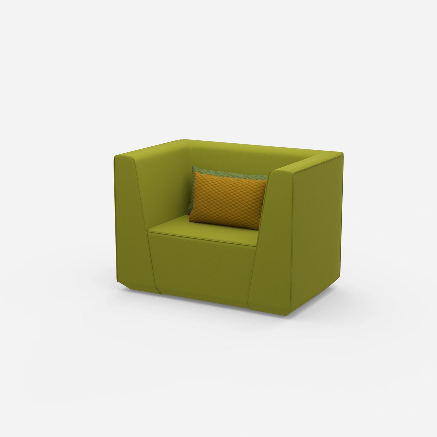The upholstered armchair from the armchair category impresses with its versatility. With one module and two comfortable cushions, it offers an inviting place to sit. The armchair fits seamlessly into various room concepts.