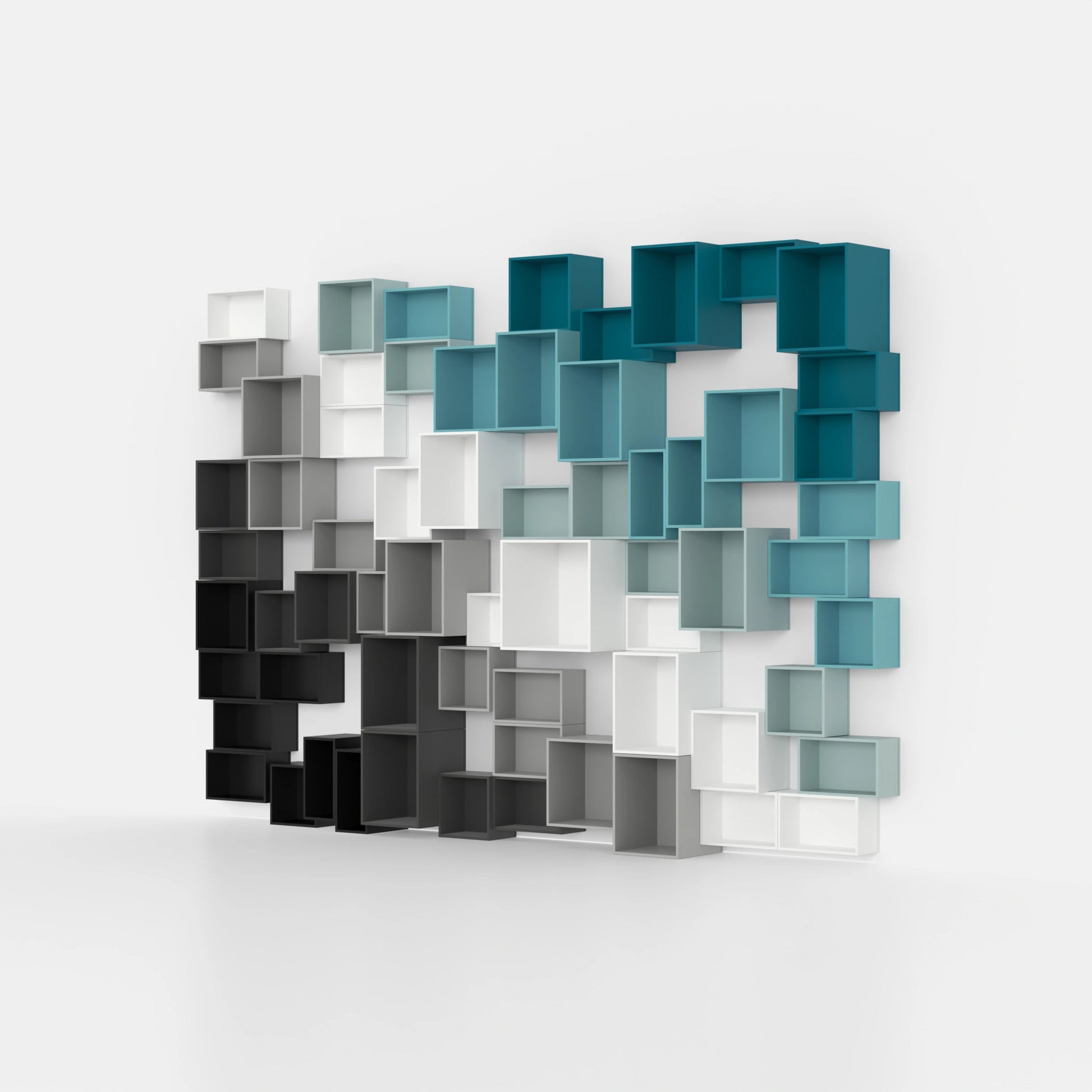 Available in white, black, shades of grey, turquoise and lagoon. This variety of colours enables harmonious integration into any furnishing style. White brings expansiveness, dark and light grey create calm, while dark turquoise and lagoon add fresh accents.