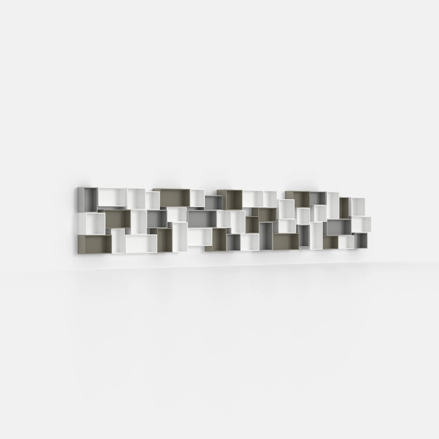 The RK1063 Wall bookshelf is a stylish addition to your interior design. It measures 488 cm in width, 21 cm in depth and 84 cm in height. With 47 modern modules, it offers plenty of storage space. The colors white, fango grey light and light grey integrate effortlessly into different living styles.