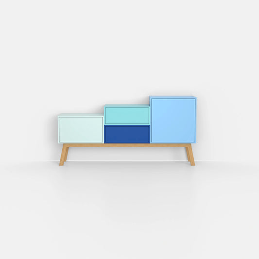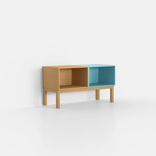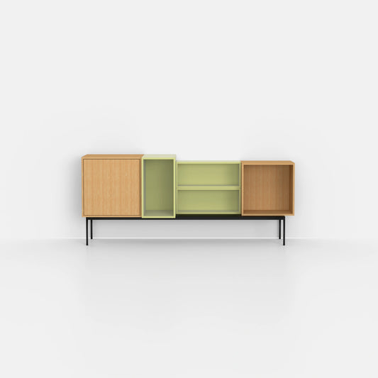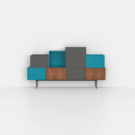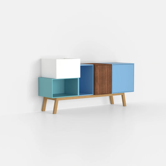 Avec le configurateur en ligne Cubit®, vous personnalisez votre buffet contemporain. Choisissez les couleurs, les matériaux et les fonctions comme les tiroirs ou les portes.