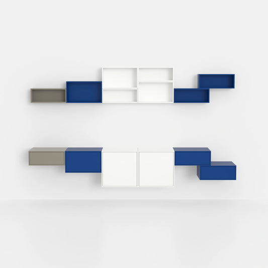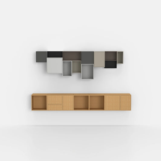 Les buffets Cubit® peuvent être suspendus, posés sur un socle ou directement au sol. Cette flexibilité permet une adaptation personnalisée à chaque espace de vie.