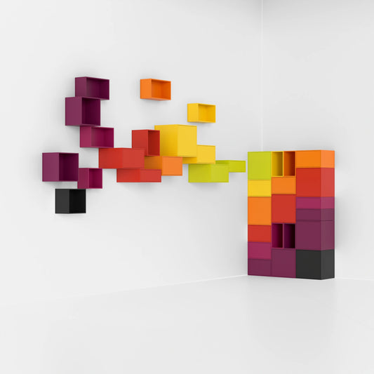 Les étagères suspendues Cubit® sont disponibles en plusieurs couleurs et matériaux ! Elles sont modulaires :