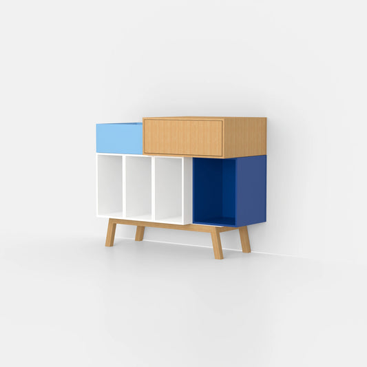 L'étagère à disques Cubit allie design minimaliste et fonctionnalité. Grâce aux compartiments ouverts, vos disques préférés restent visibles et toujours à portée de main. En alternative, il est possible d'intégrer des modules on-top pour accéder en un tour de main à vos morceaux préférés.