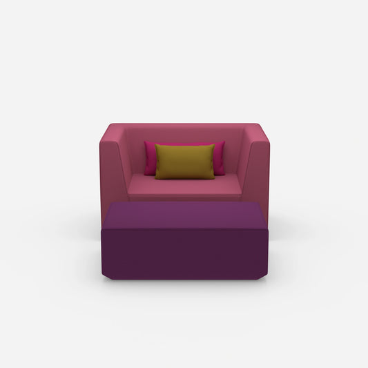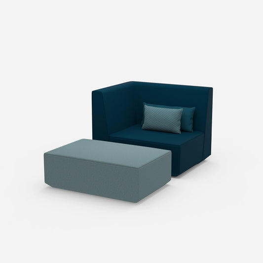 La combinaison avec un pouf ou un accoudoir assorti crée un coin cosy confortable. Idéal pour des concepts d'espace créatifs.
