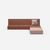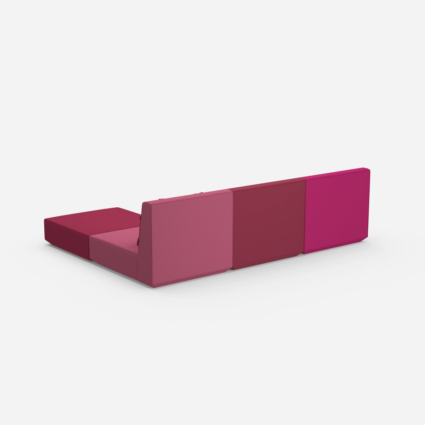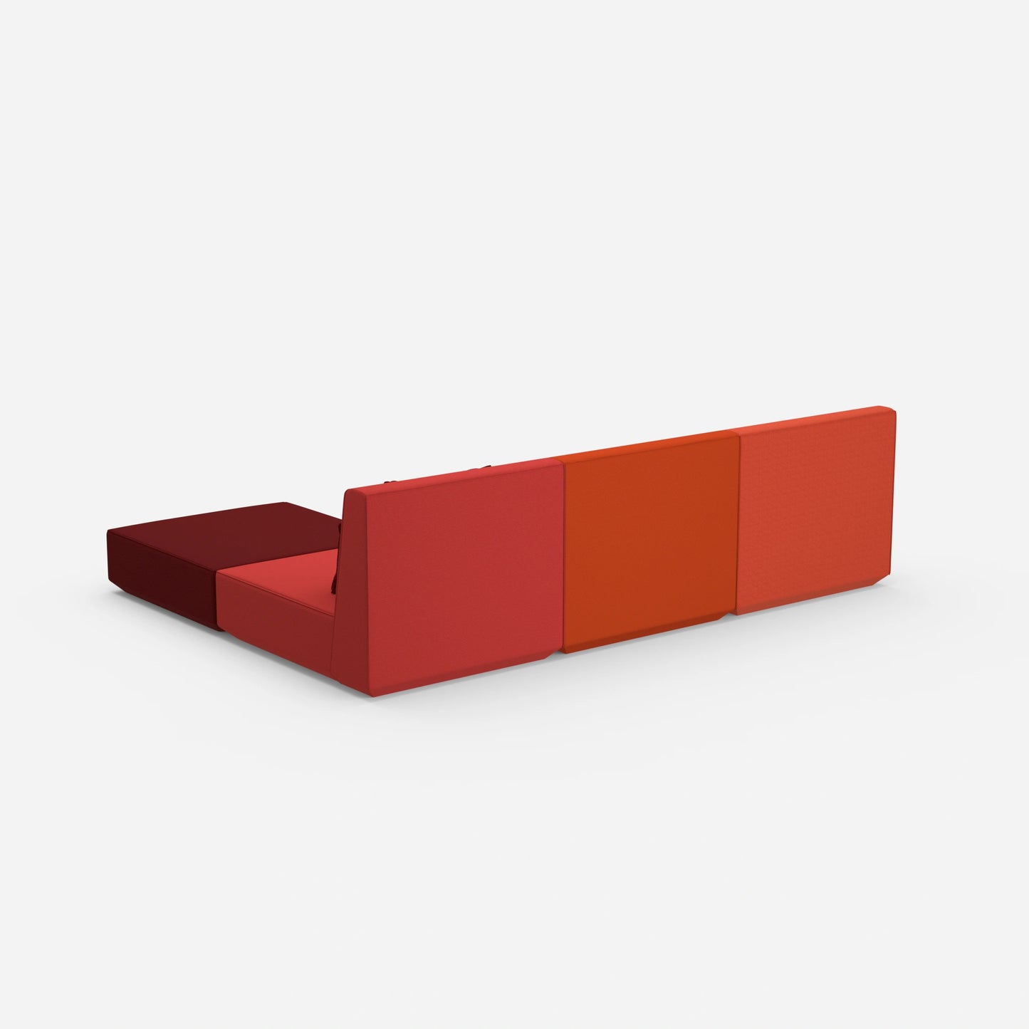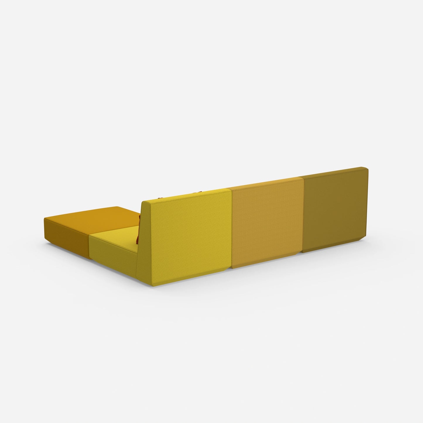 Le canapé d'angle à haut dossier est un Canapé d'angle polyvalent. Quatre modules forment ce meuble. Trois modules de dossier et un module pouf, complétés par deux coussins, forment un ensemble flexible. Cette structure offre à la fois ouverture et compacité.