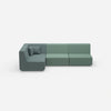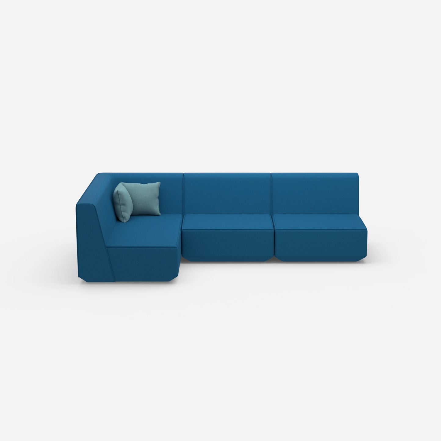 Le "Canapé d'angle bleu" est un canapé d'angle composé de trois modules. Il se compose d'un coussin double, d'un module d'angle à gauche et de deux modules de dossier. Cette structure modulaire offre de la flexibilité. Tu peux les disposer de manière ouverte ou compacte. Le canapé mesure 66 cm de large, 240 cm de profondeur et 140 cm de hauteur.
