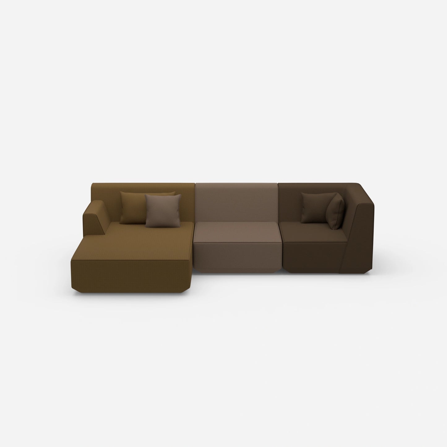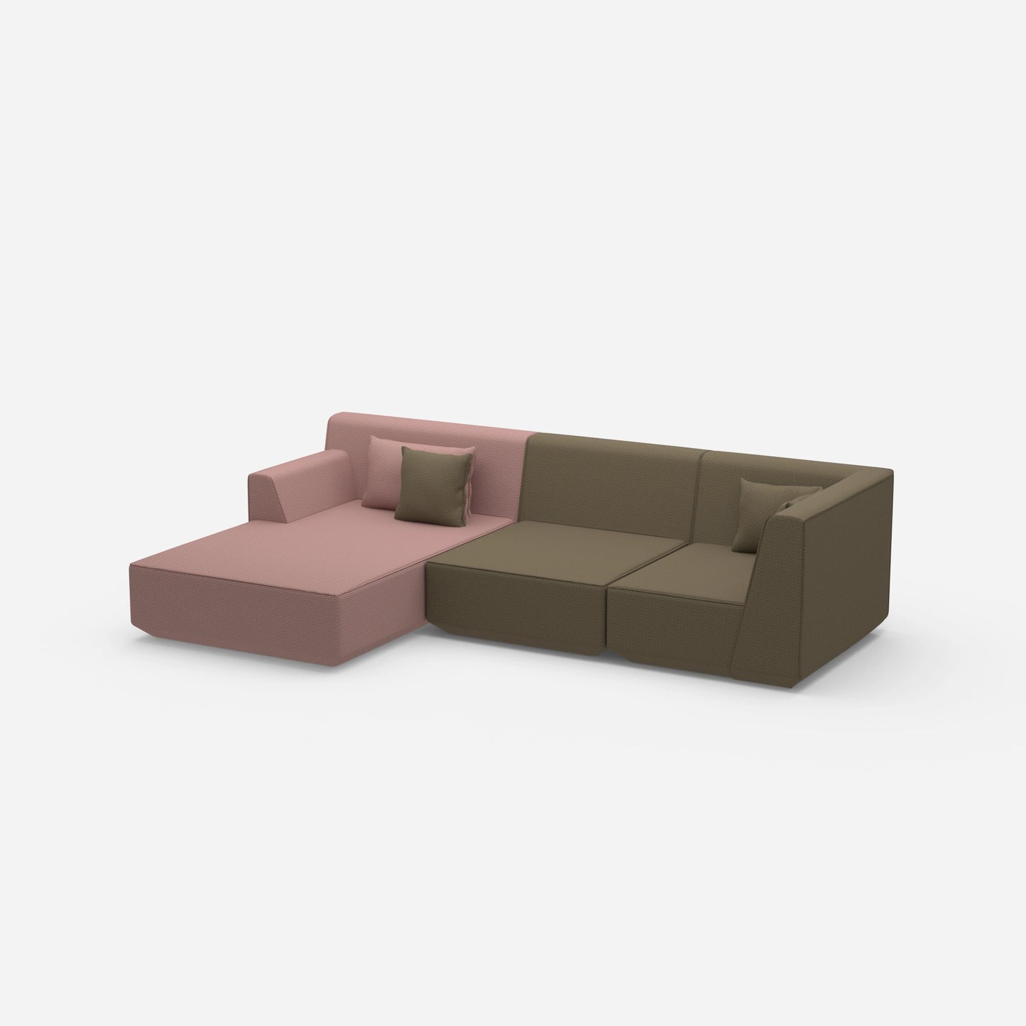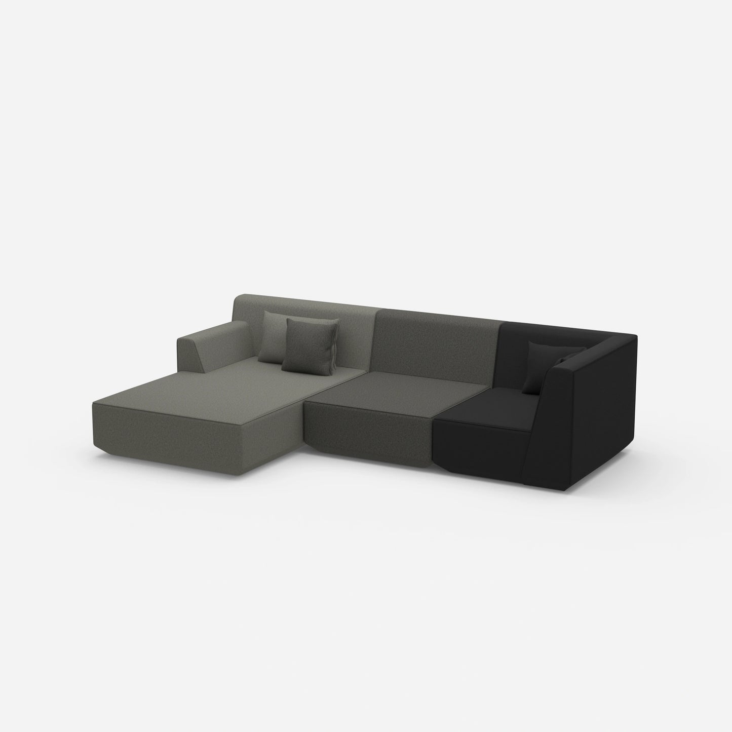 Le confortable canapé d'angle transforme votre salon en une oasis de détente. Avec ses trois modules, il offre des possibilités d'aménagement flexibles. À gauche, le module récamier invite à la détente, tandis que le module de dossier et le module d'angle droit assurent la stabilité. Deux coussins et un coussin double garantissent un confort supplémentaire.