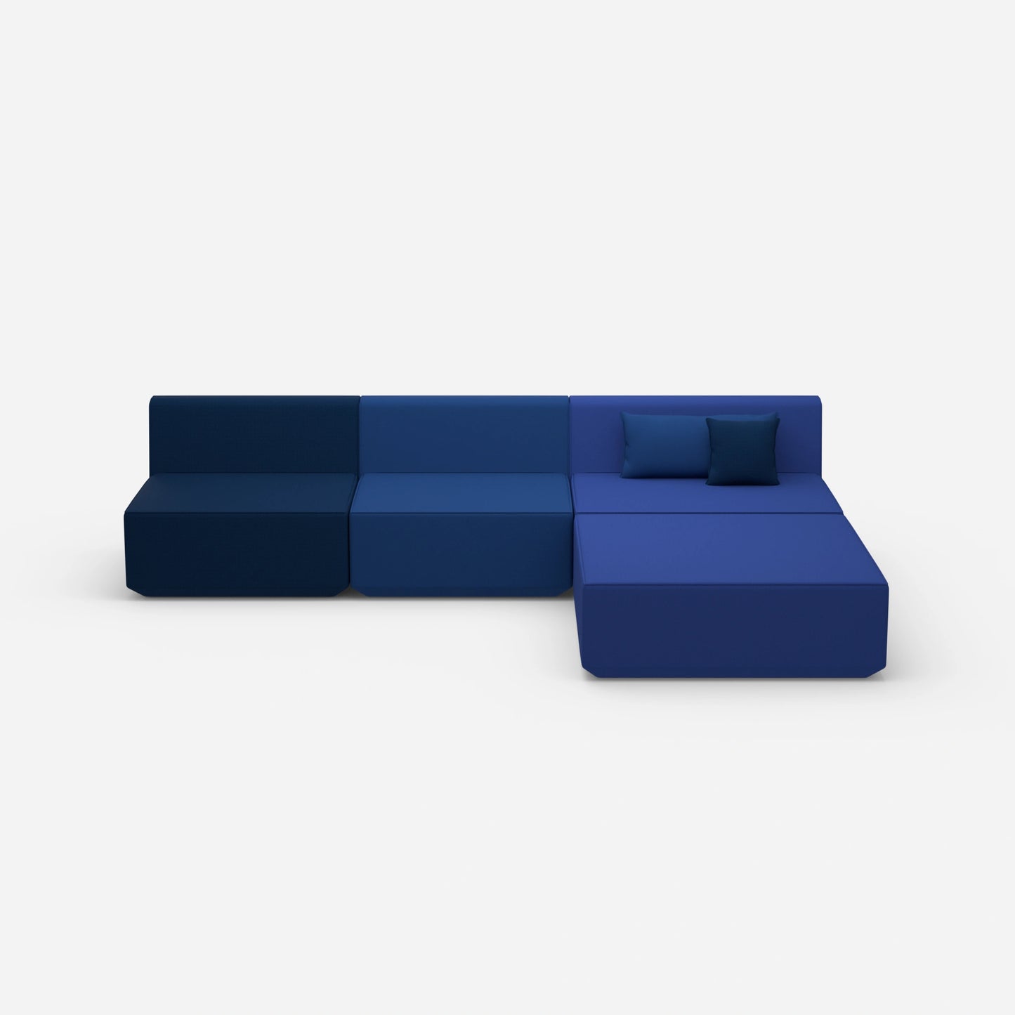 Le Canapé d'angle modulable Canapé d'angle bleu est une pièce maîtresse parmi les canapés modulables. Il se compose de quatre modules : trois modules de dossier, deux coussins et un module pouf. Cette structure offre une grande flexibilité. Créez un salon ouvert ou un groupe de sièges compact.