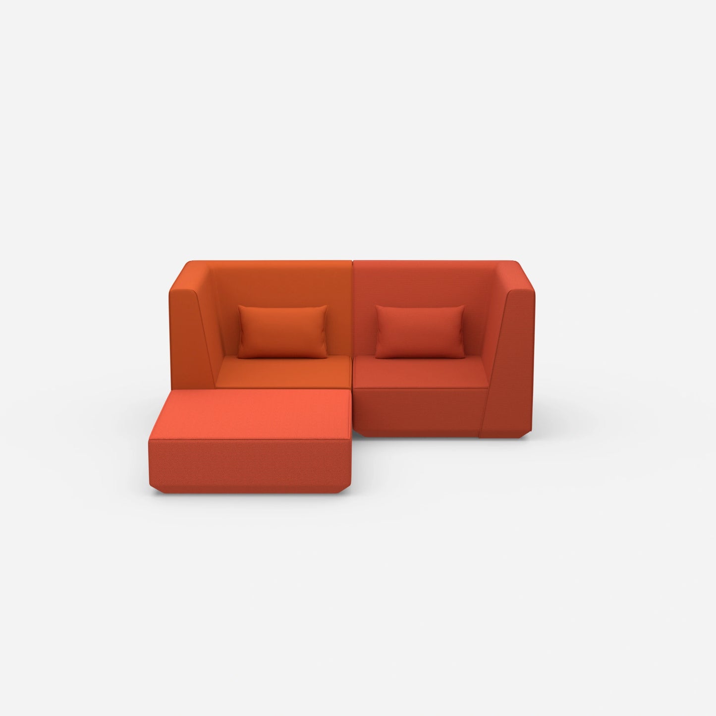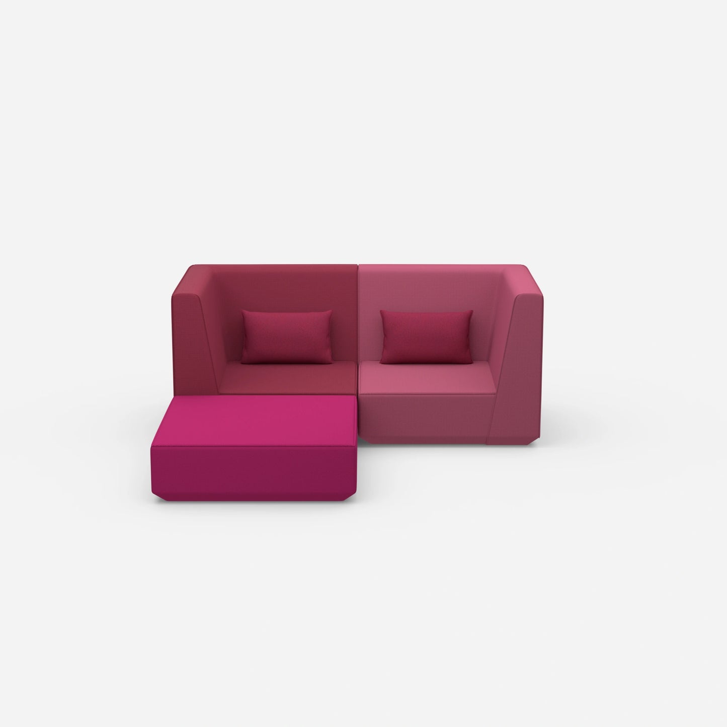 Différents modules de canapés Cubit configurés dans un grand espace ouvert - montre la diversité des combinaisons et des couleurs possibles