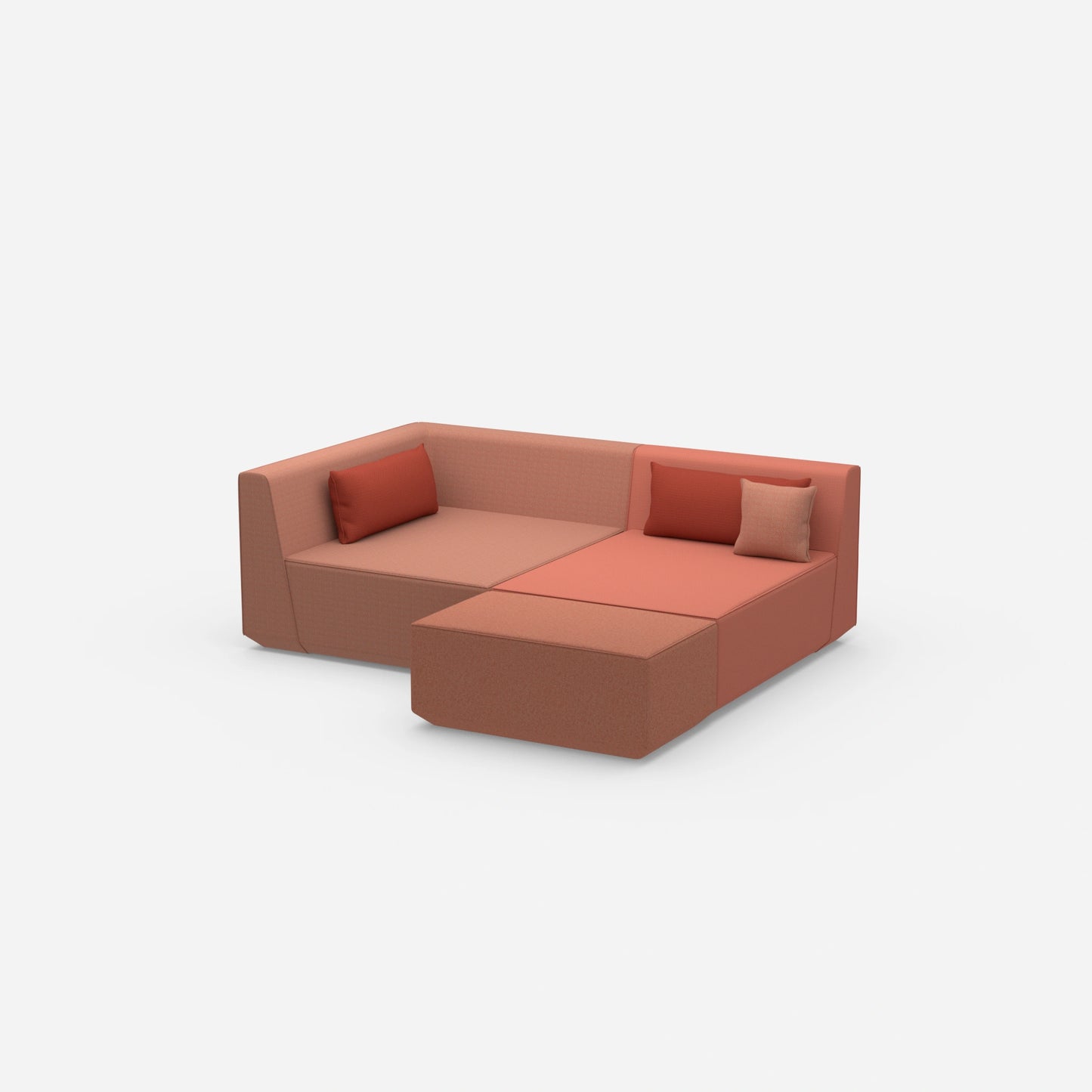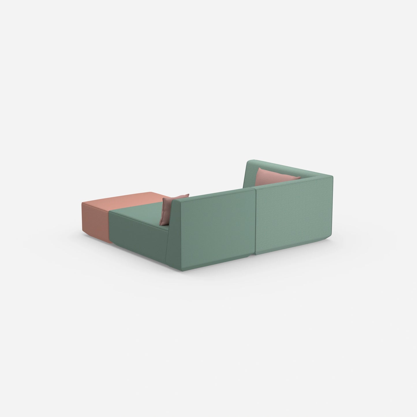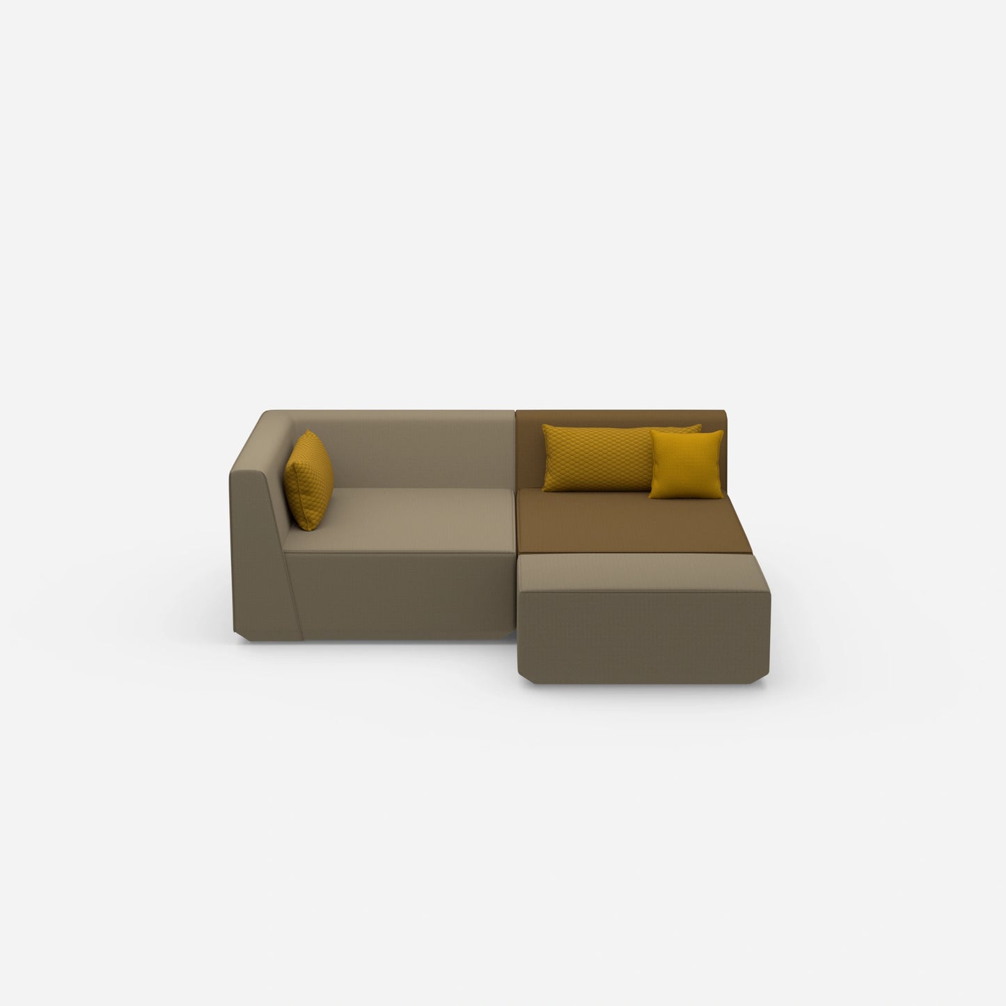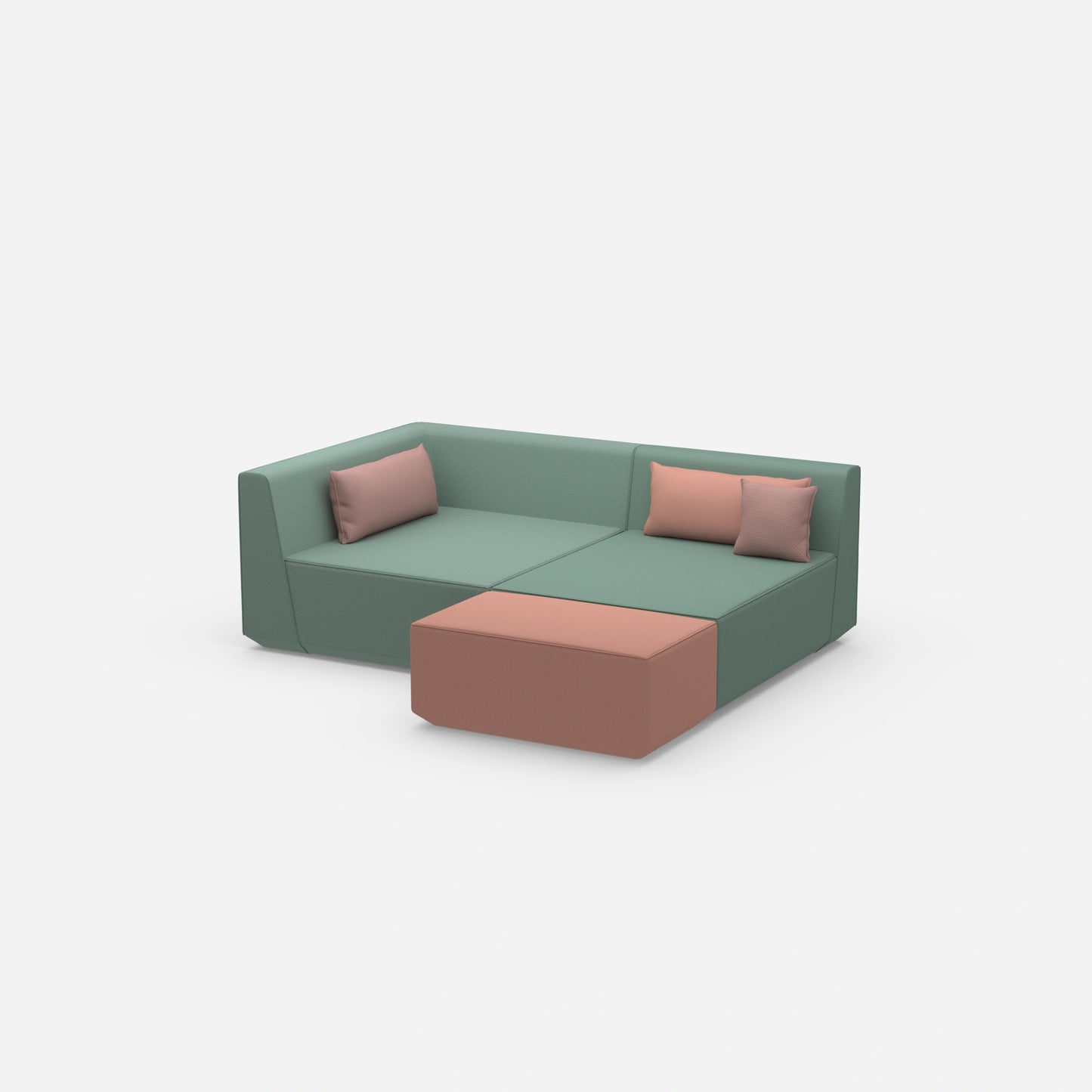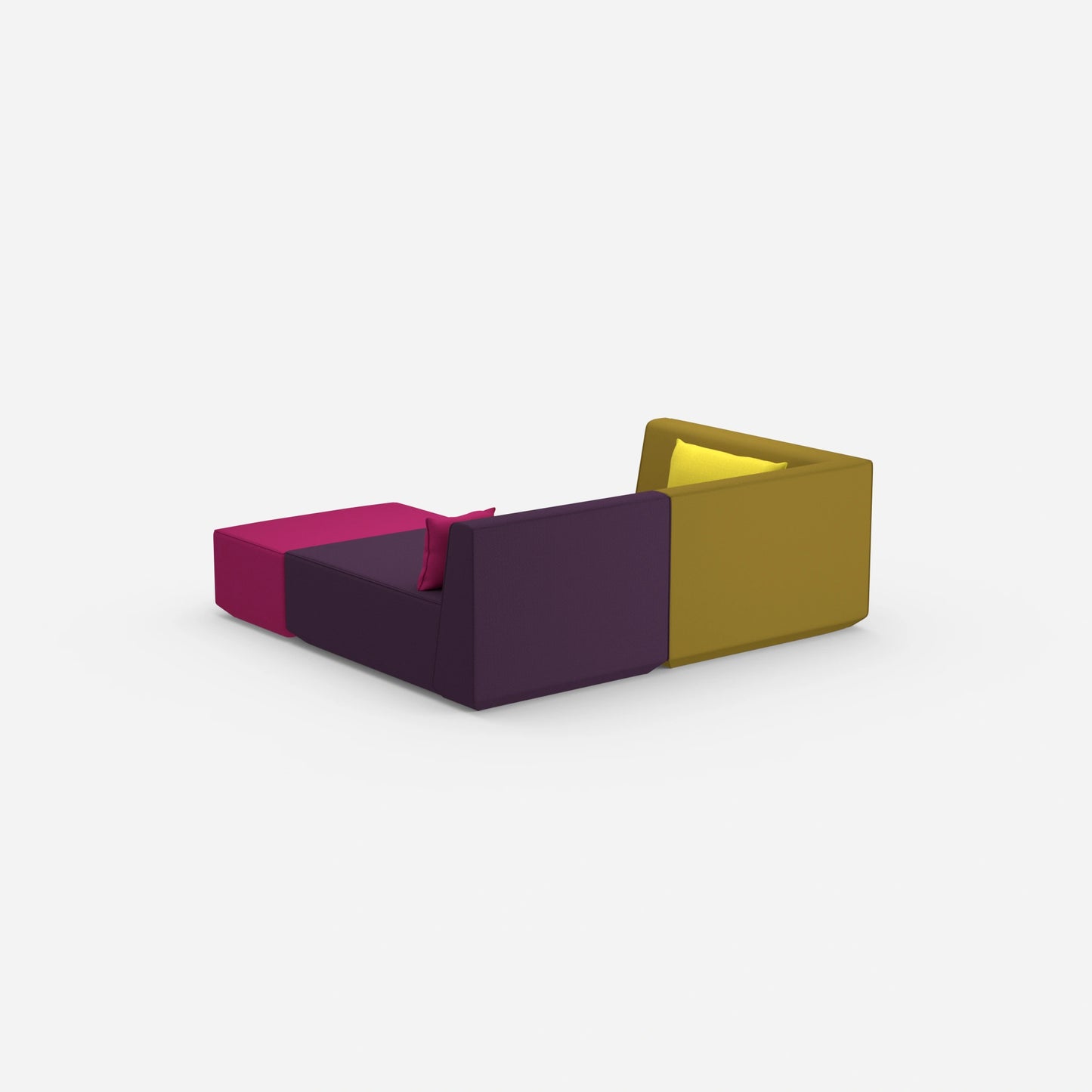 Différents modules de canapés Cubit configurés dans un grand espace ouvert - montre la diversité des combinaisons et des couleurs possibles