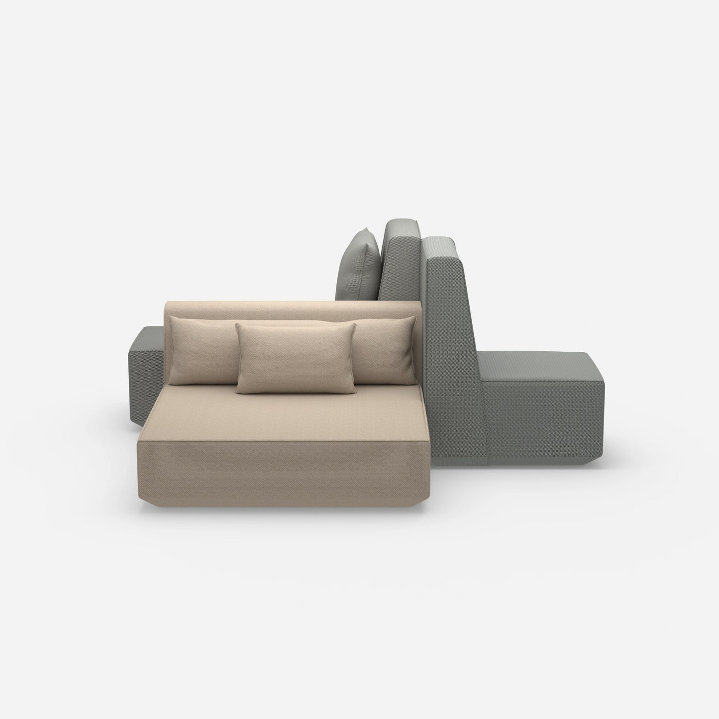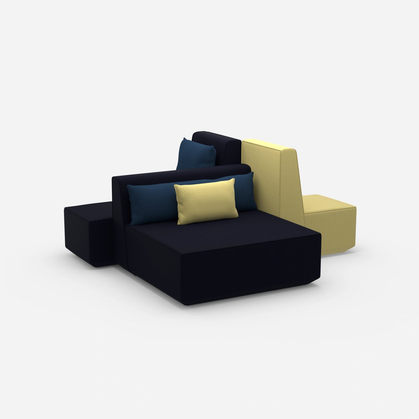 L'îlot de canapés Co-working est le point de mire des Canapés panoramique modernes. Il se compose de trois modules polyvalents avec des coussins et des dossiers. Ces éléments s'adaptent de manière flexible et offrent d'innombrables possibilités de combinaison.