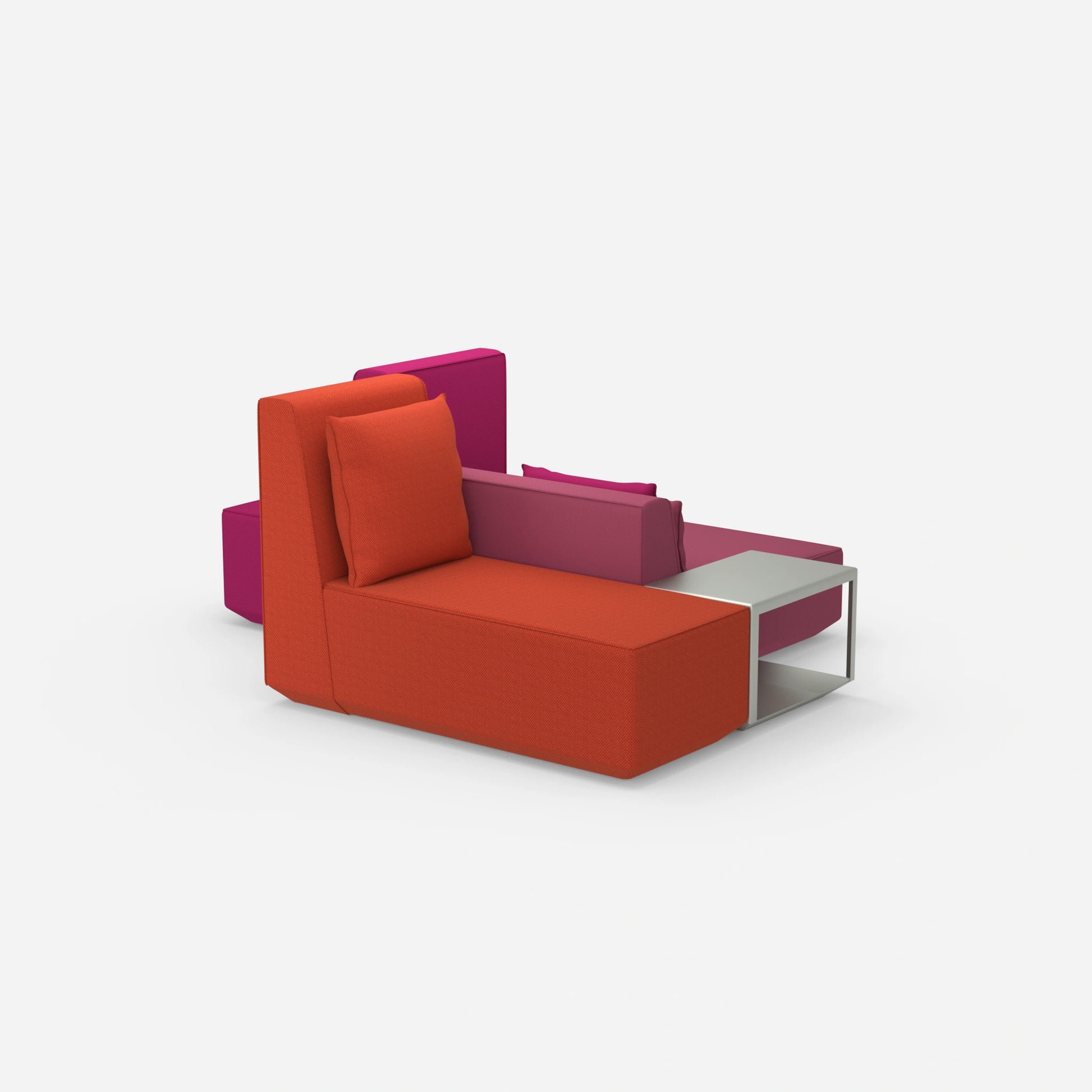 La palette de couleurs de l'îlot de canapés est impressionnante. Gravier, corail, citrouille et litchi ne sont que quelques-unes des teintes disponibles. D'autres couleurs comme le magenta ou le bleu marine sont également disponibles. Le canapé devient ainsi l'élément central de l'aménagement ou permet d'égayer agréablement la pièce.